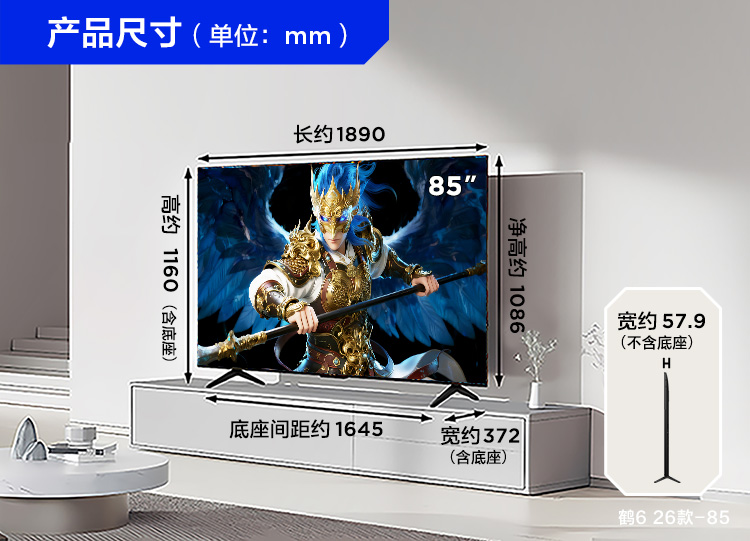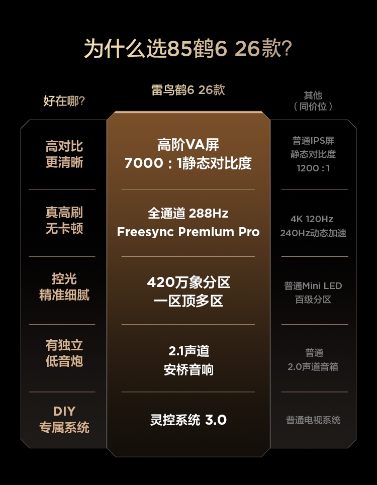 【FFALCON雷鸟】鹤6 26款 85英寸 万象分区QD-MiniLED 1300nits 高阶HVA安桥音响288Hz高刷85英寸 平板电视 85R69A