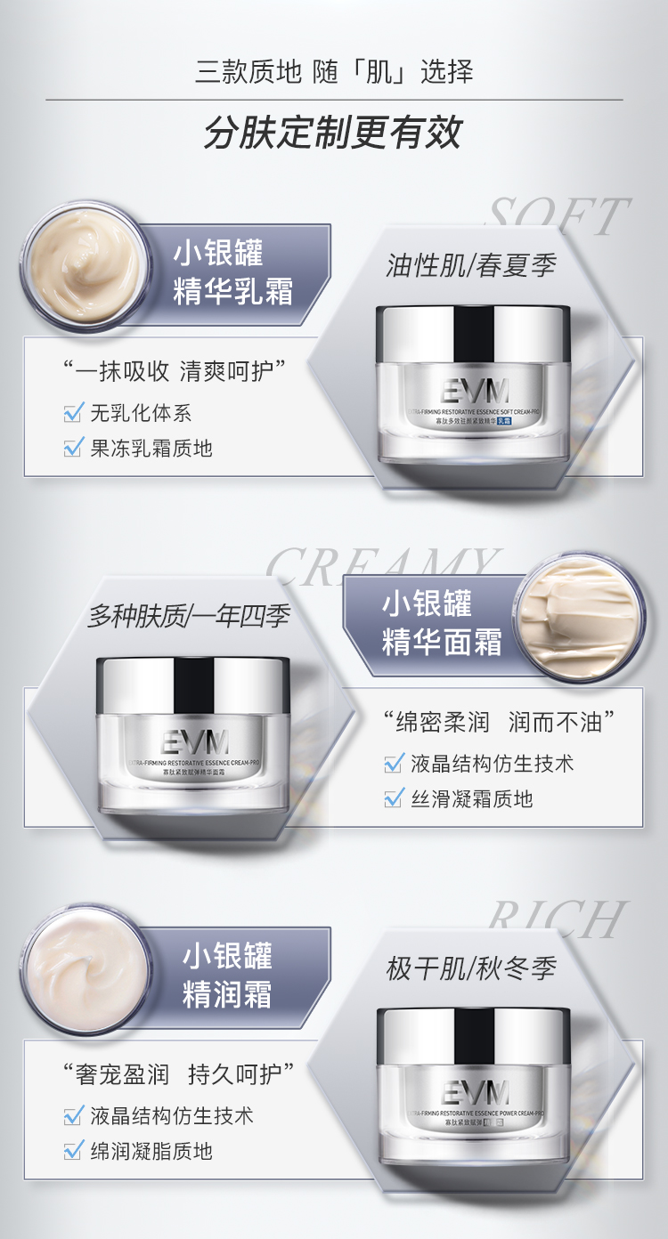 EVM寡肽乳霜乳液抗皱紧致弹润修护屏障清爽补水保湿滋润小银罐面霜