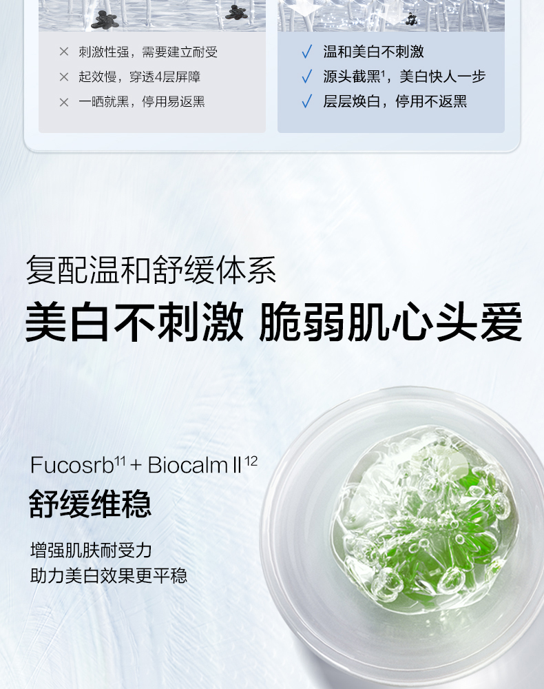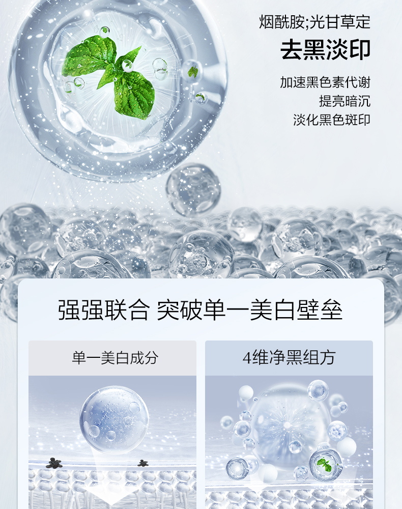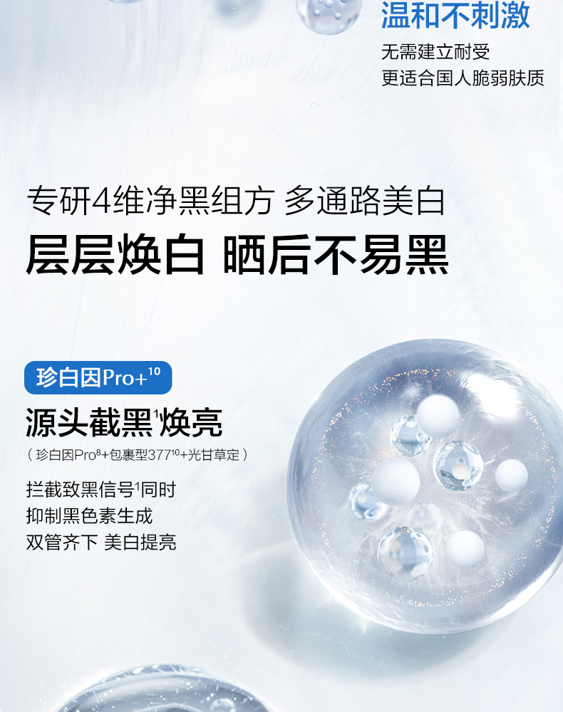 都是靠谱的美白成分,使用起来清爽舒服,容易被吸收。想让美白效果更给力,建议搭配面膜一起使用。