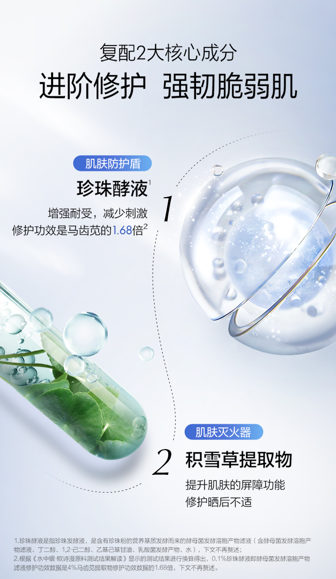 另外,它还加入了植萃舒缓成分,让你的皮肤屏障更强韧。敏感肌一定要试试,它主打温和褪红、稳固屏障、舒缓泛红。