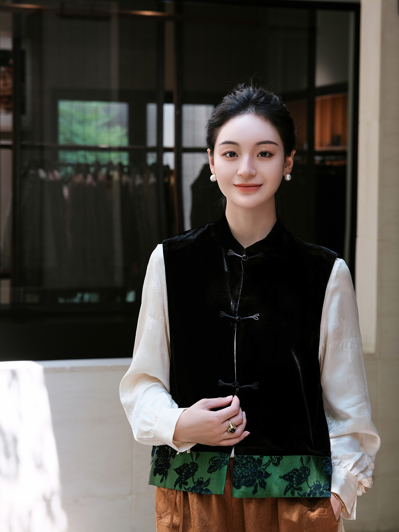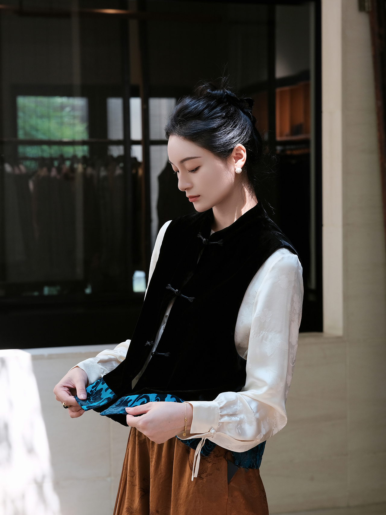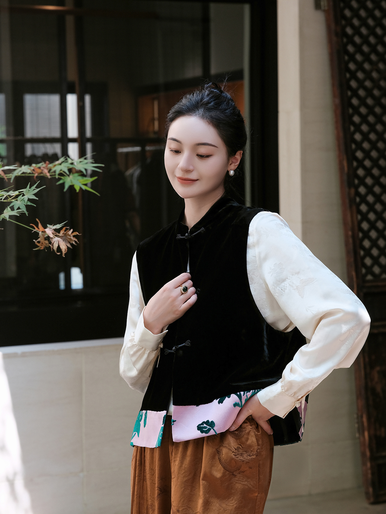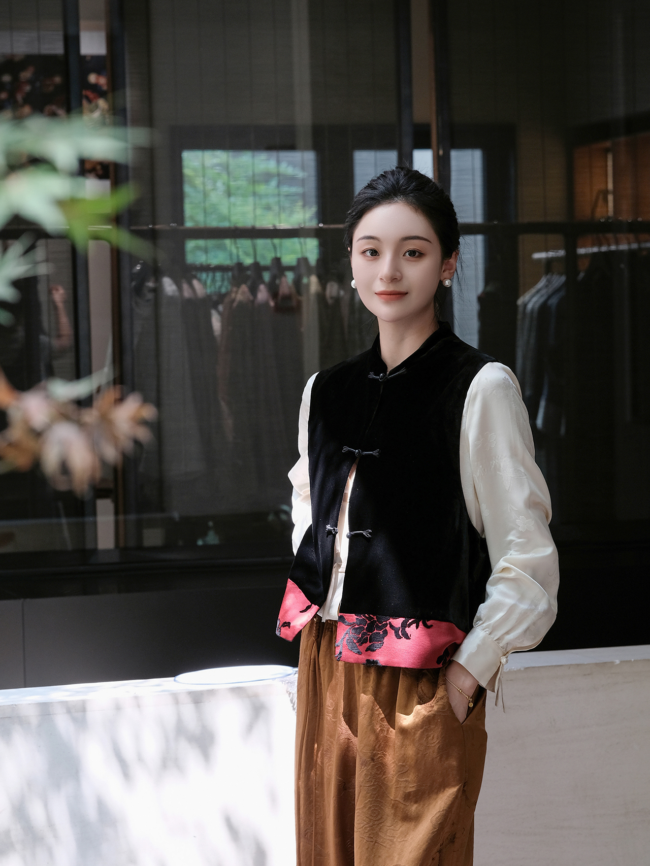 盛唐牡丹|限量款|黑色丝绒马甲拼色漳绒(售完不补)