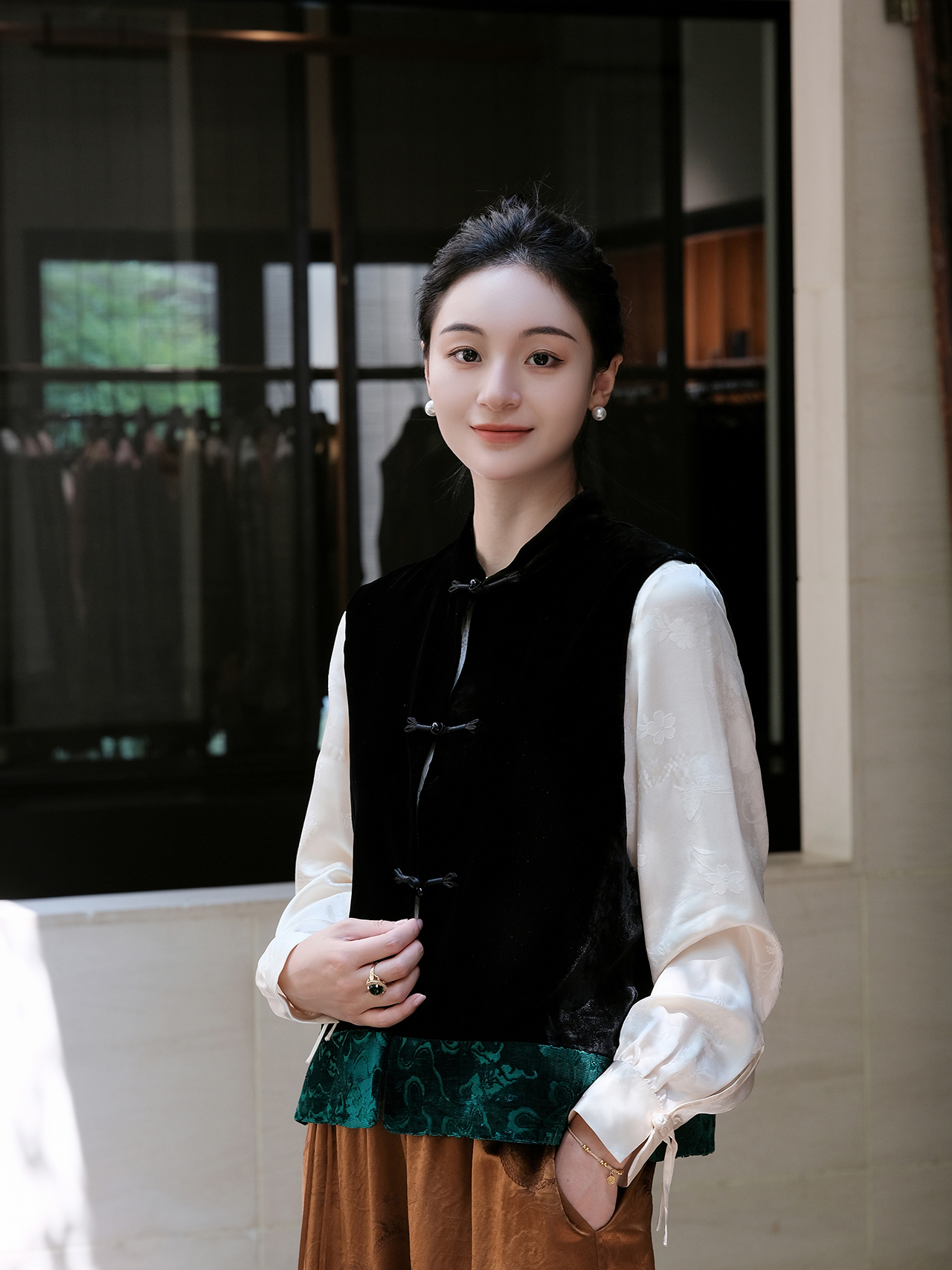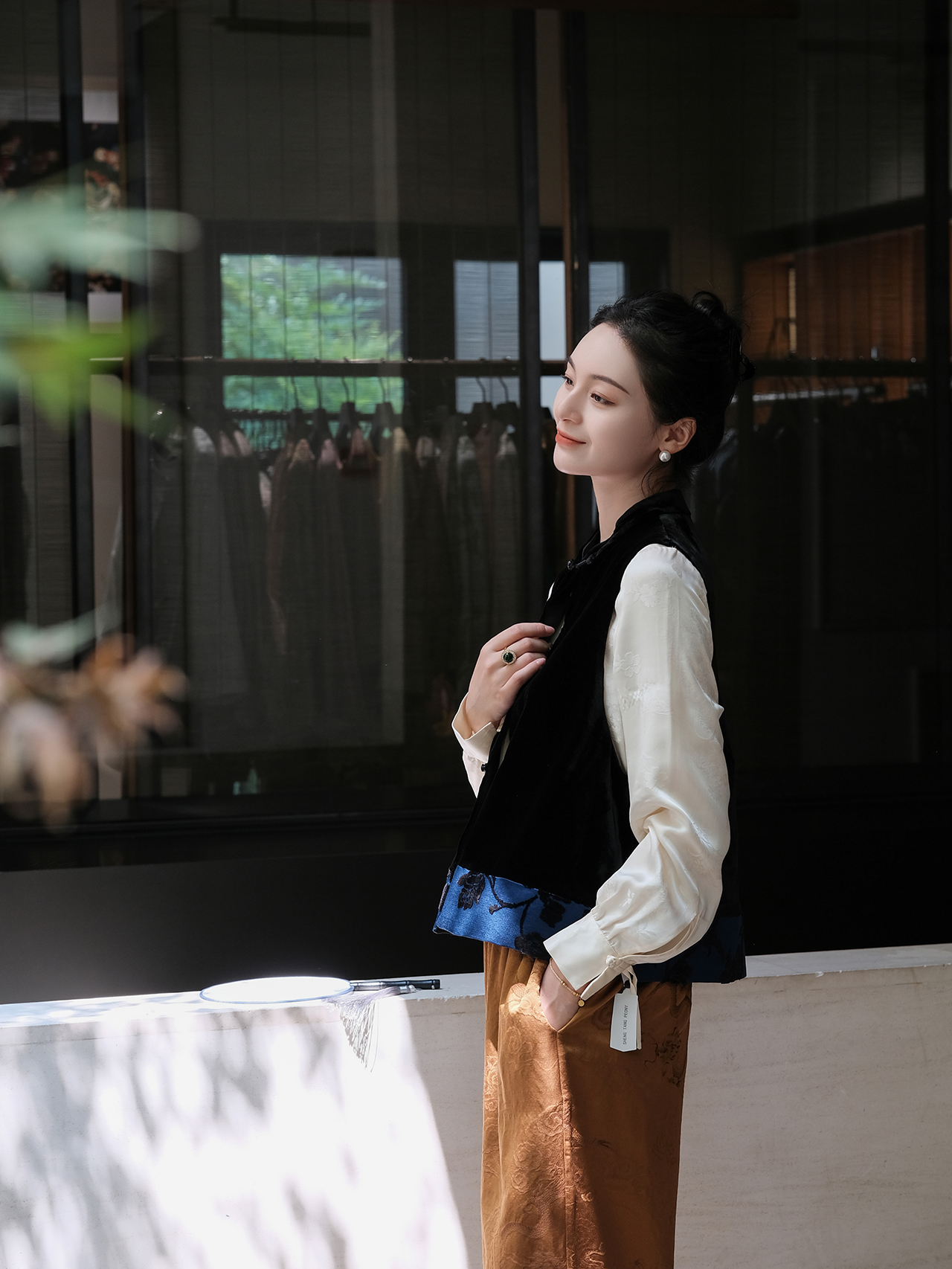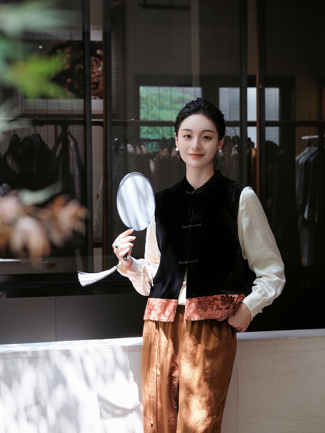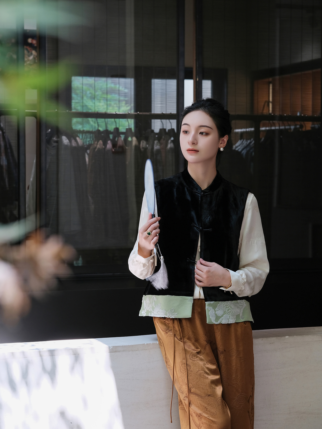 盛唐牡丹|限量款|黑色丝绒马甲拼色漳绒(售完不补)