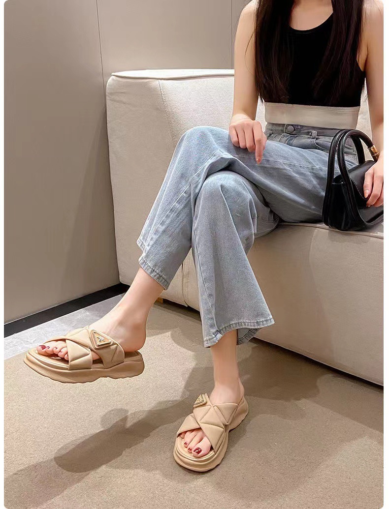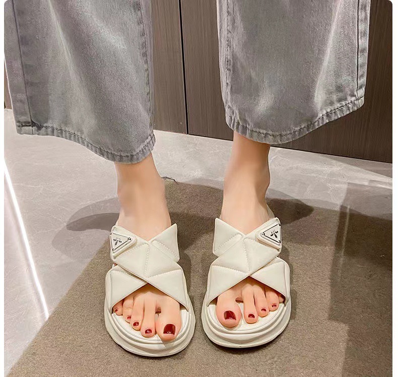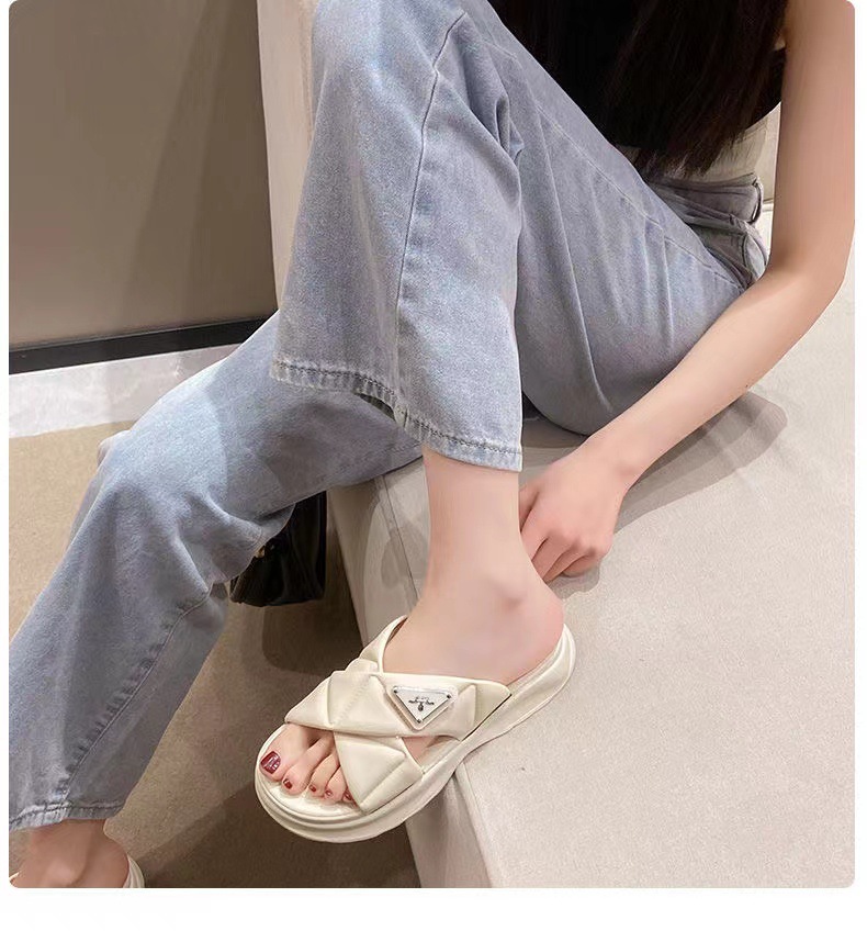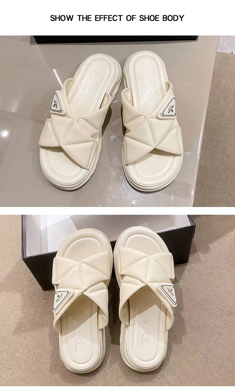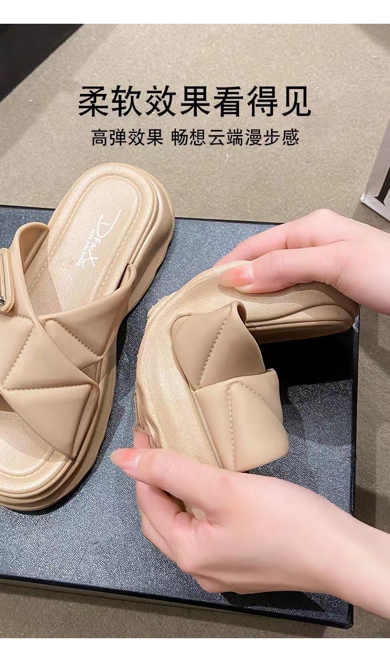 【像踩在面包上!网红夏季凉拖鞋】简约利落,颜值高,舒适柔软,女拖鞋厚底软底外穿韩版一字凉拖鞋交叉带沙滩拖粉丝专属