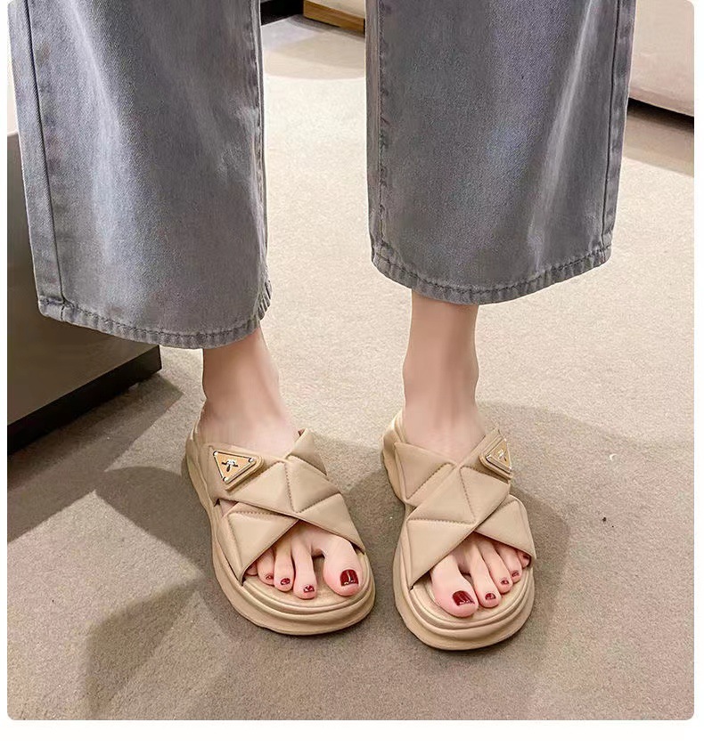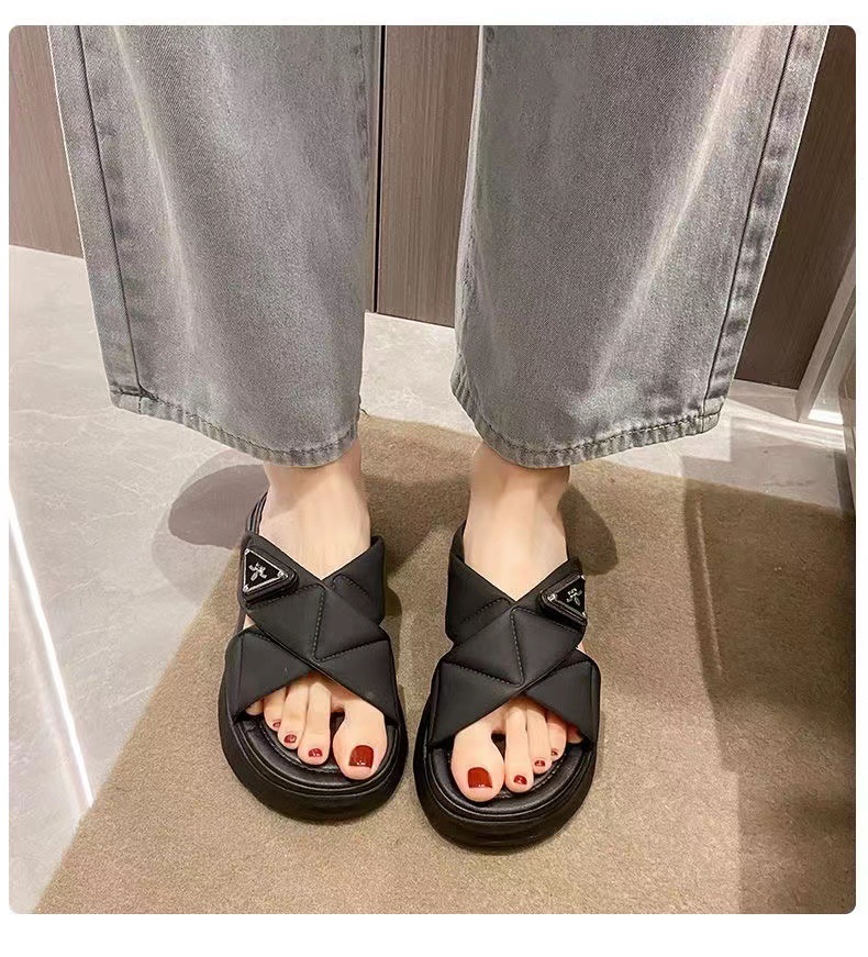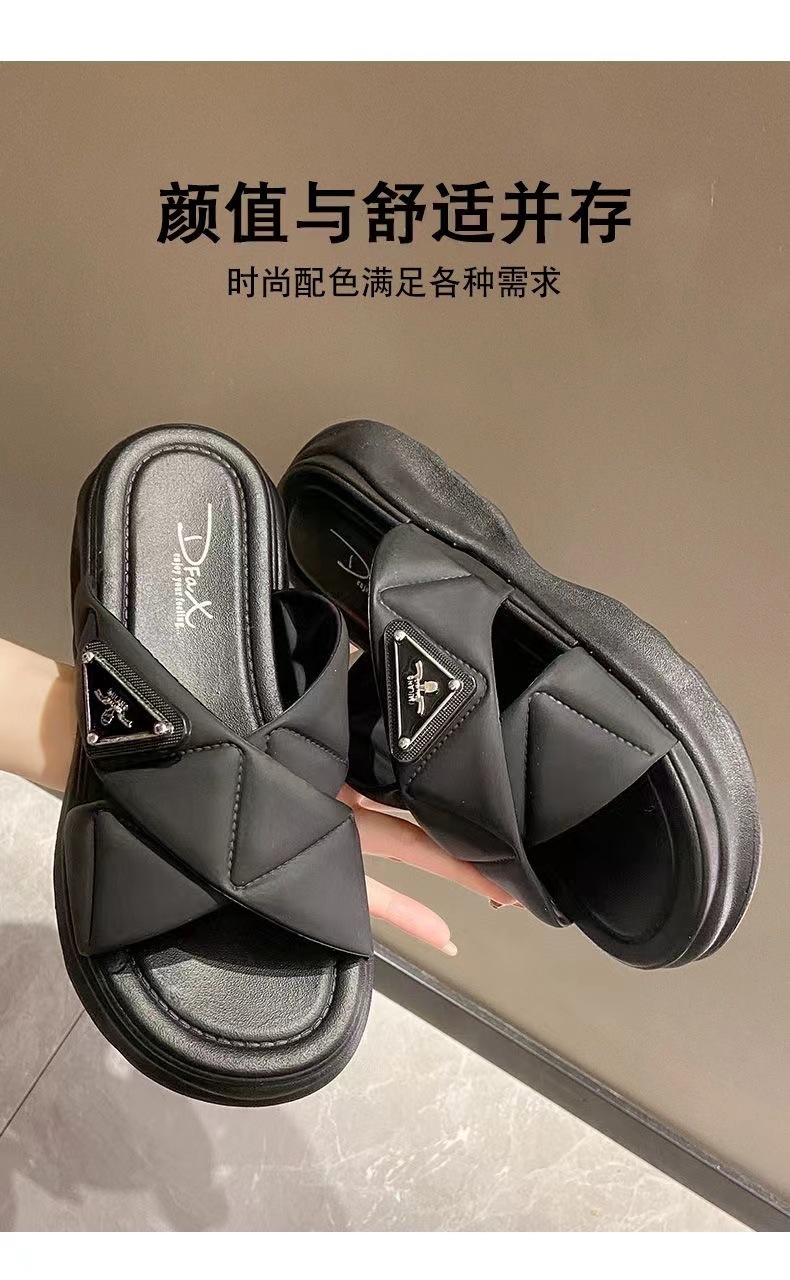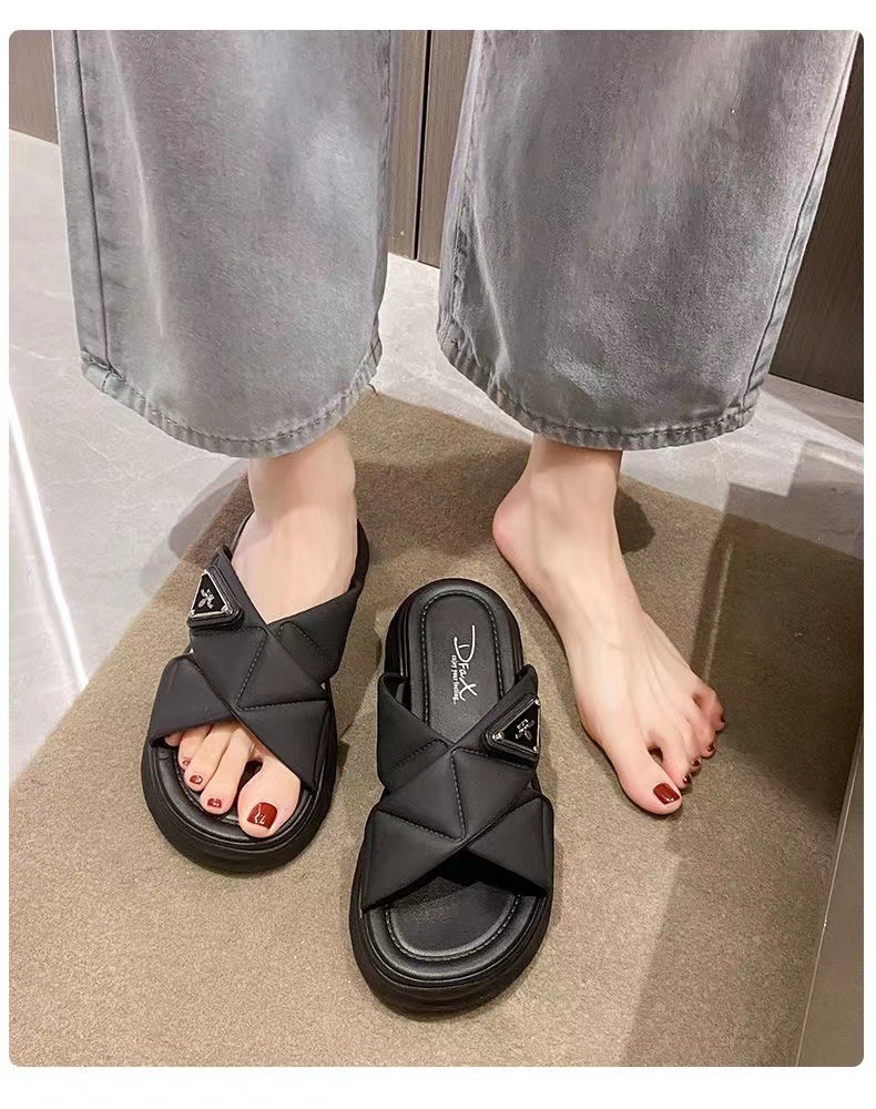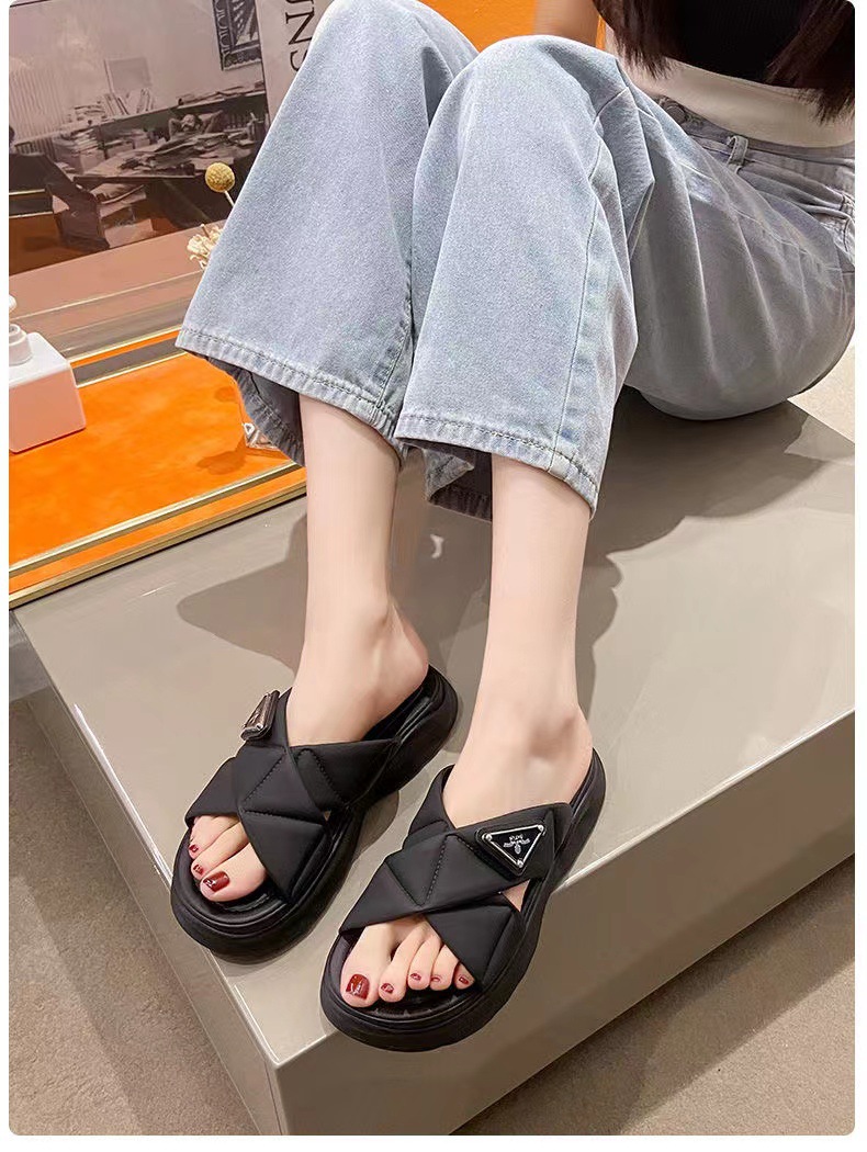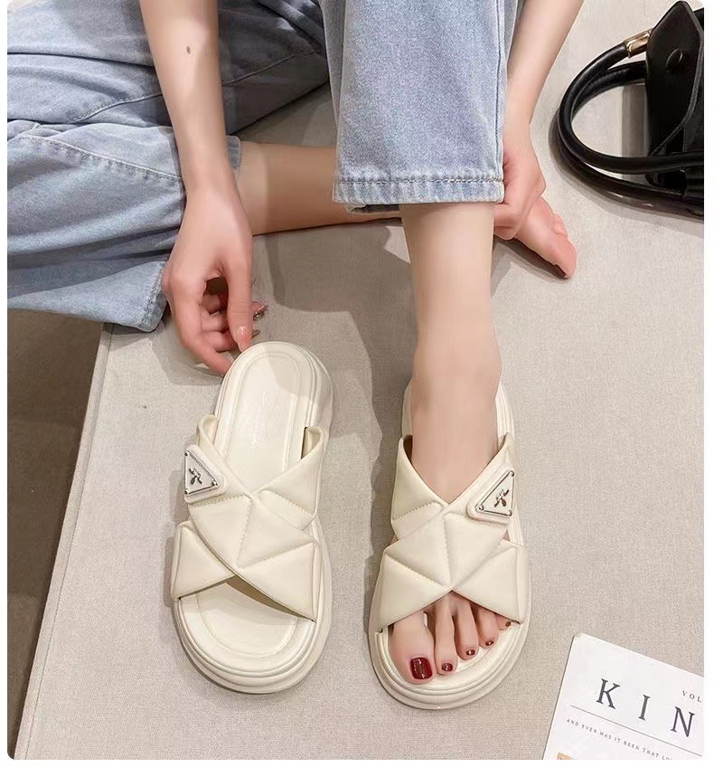 【像踩在面包上!网红夏季凉拖鞋】简约利落,颜值高,舒适柔软,女拖鞋厚底软底外穿韩版一字凉拖鞋交叉带沙滩拖粉丝专属
