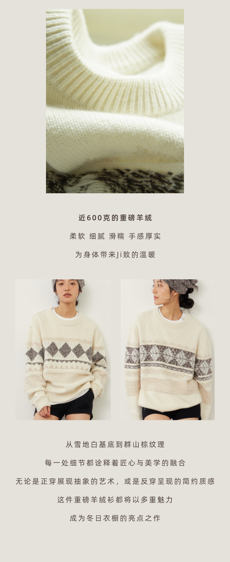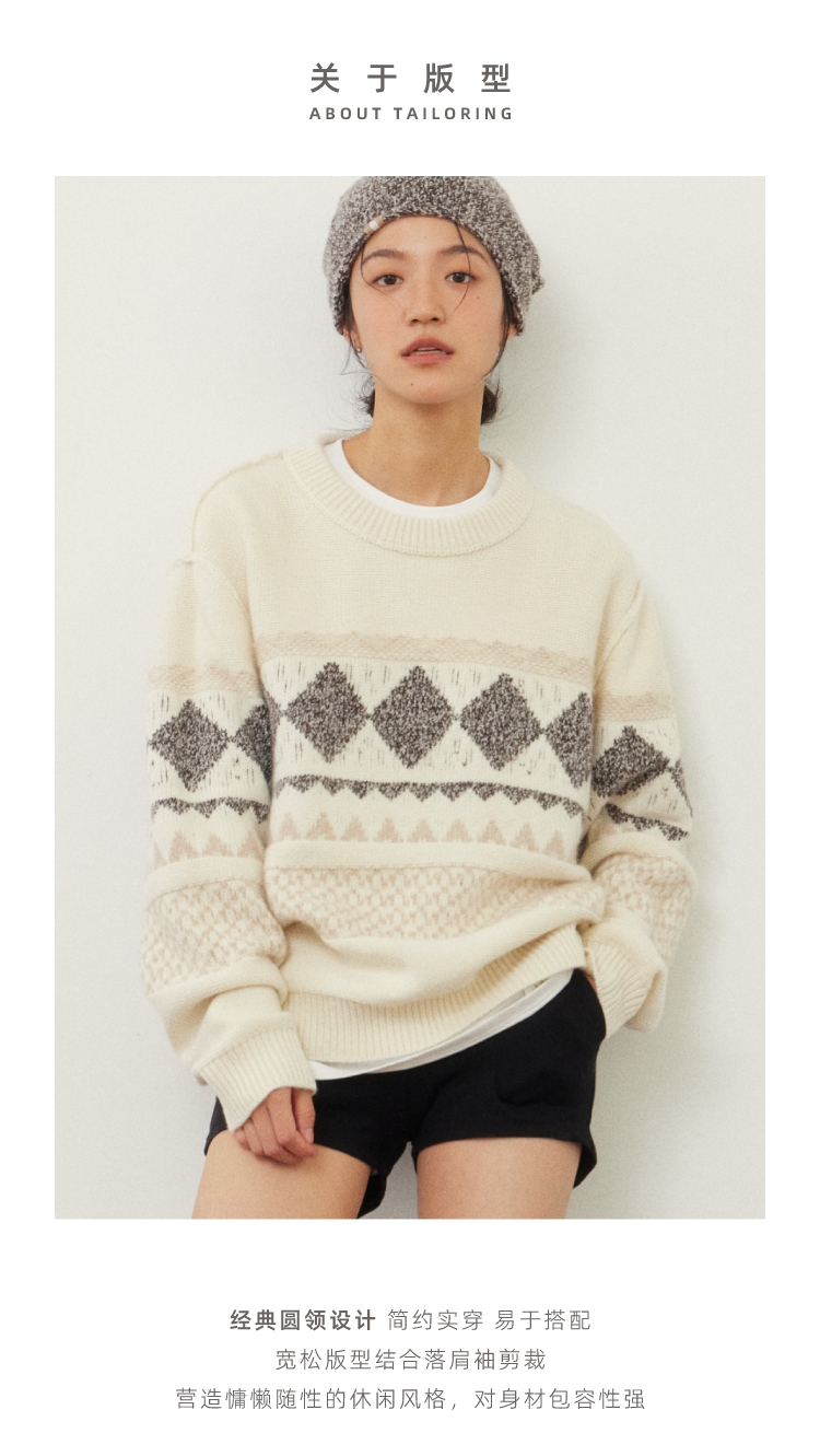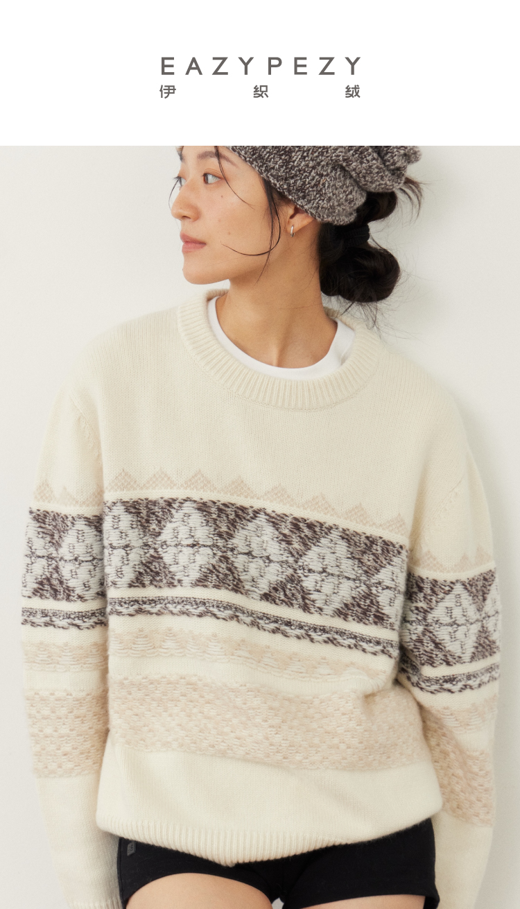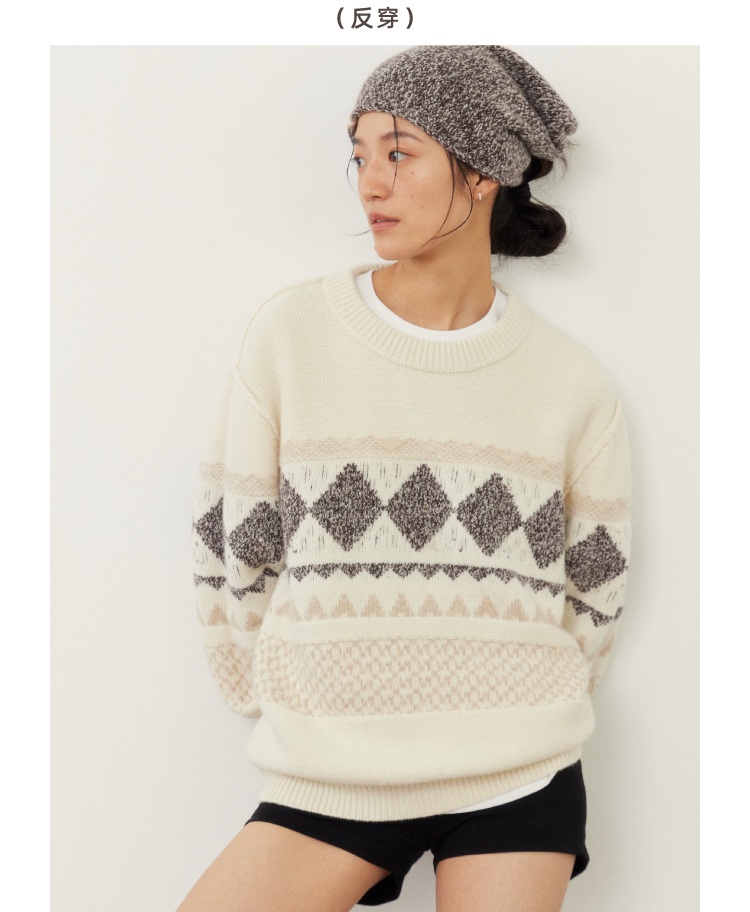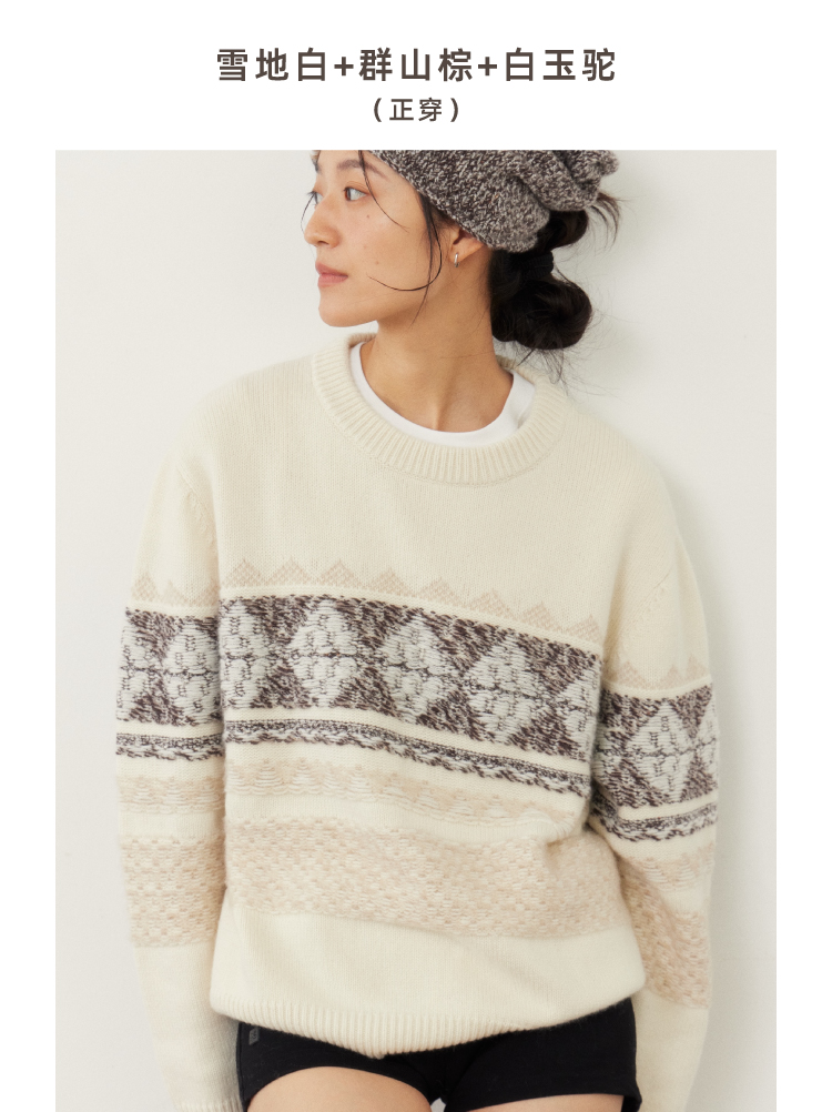 雪山提花正反两穿羊绒套头衫