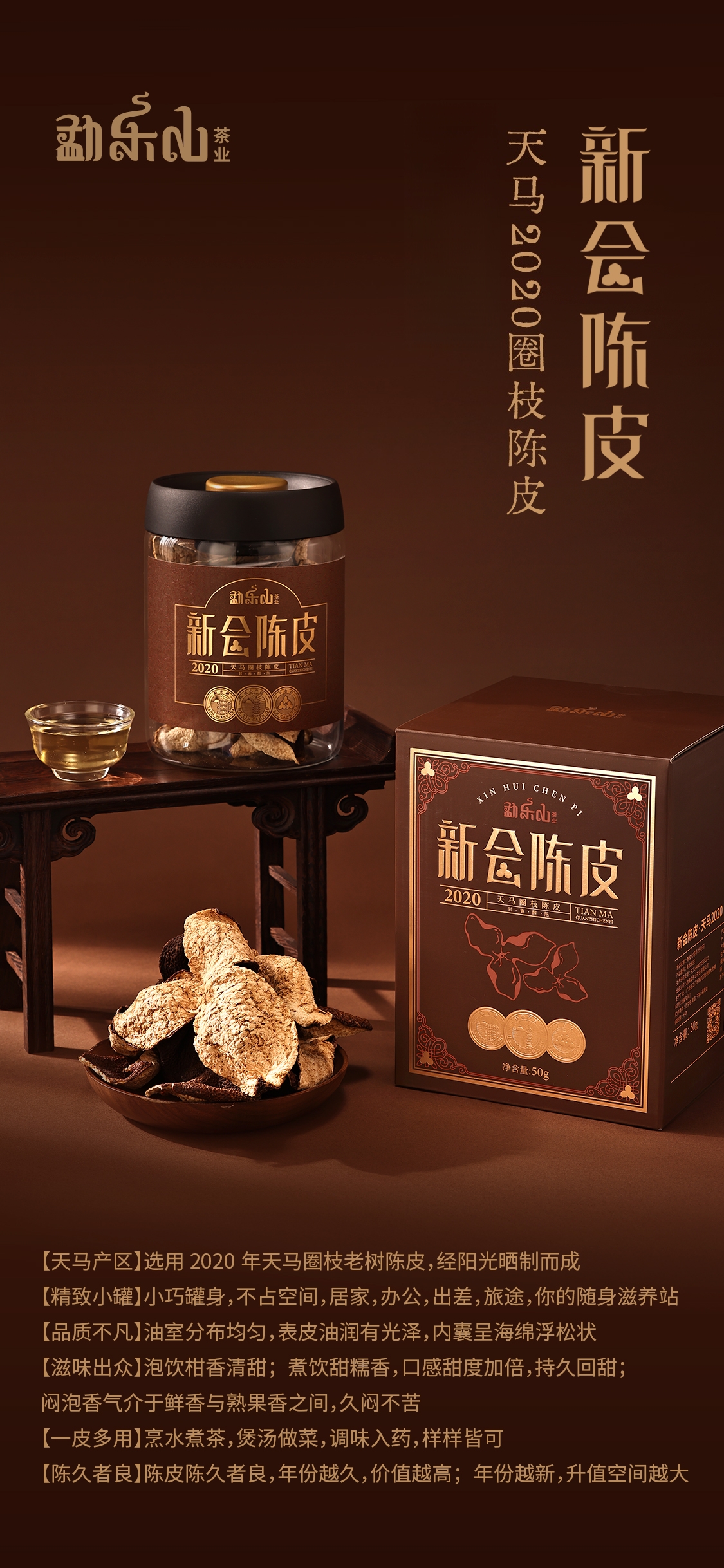 2025干仓陈皮(天马2020圈枝陈皮)玻璃罐装50g