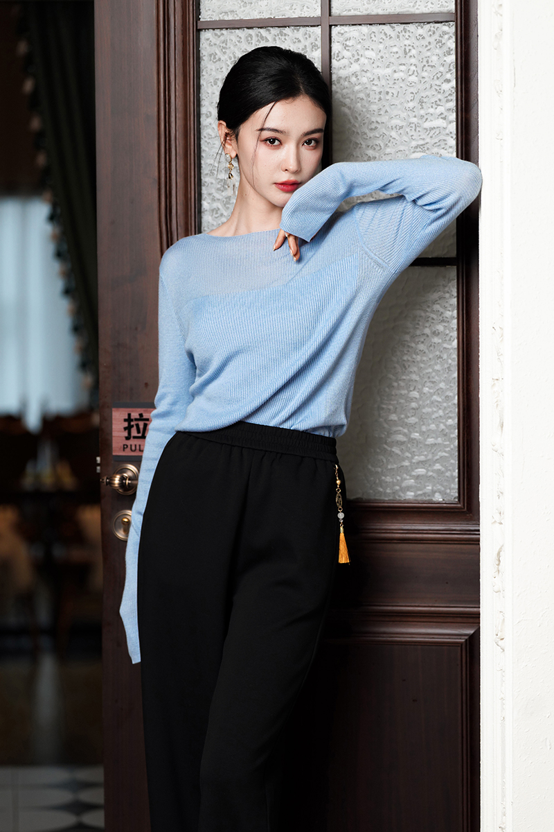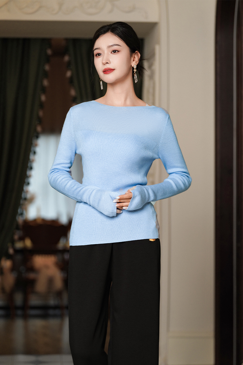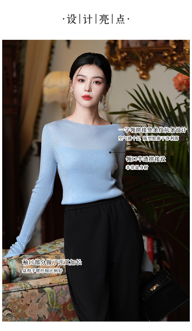 ⭐半透小一字领拼接,修饰肩颈线条又不会过于暴露,适合日常穿,空气感十足~