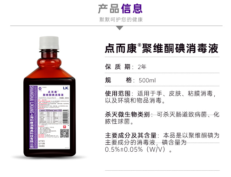 点而康 聚维酮碘消毒液 500ml 去异味杀菌消毒