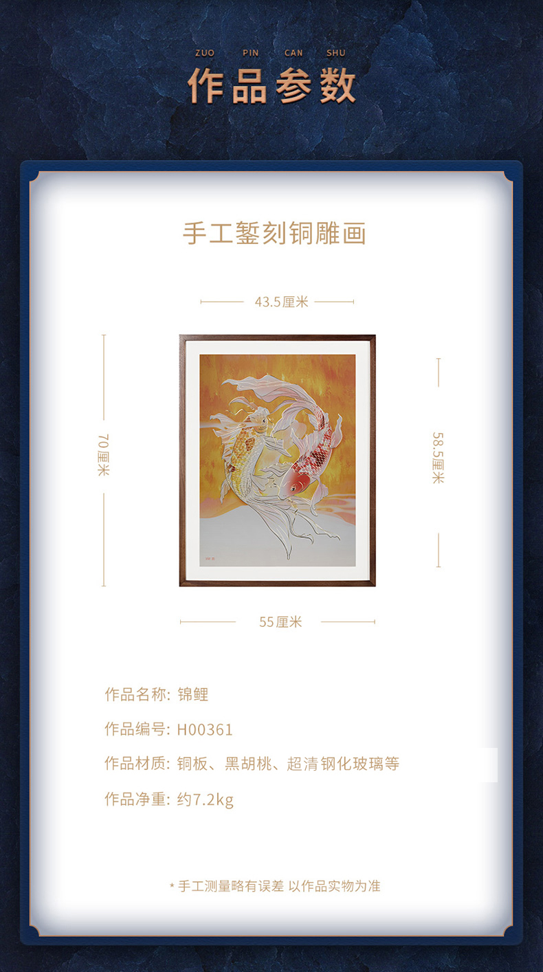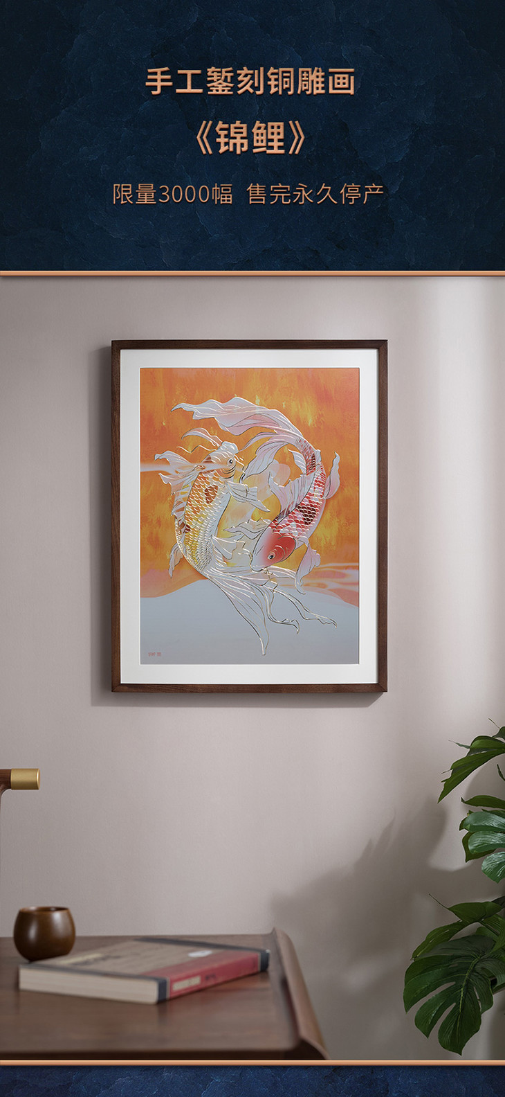 铜师傅 手工錾刻 铜雕画《锦鲤》