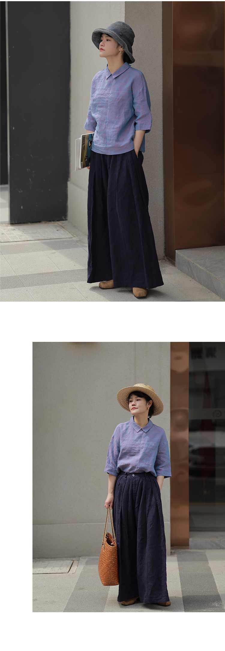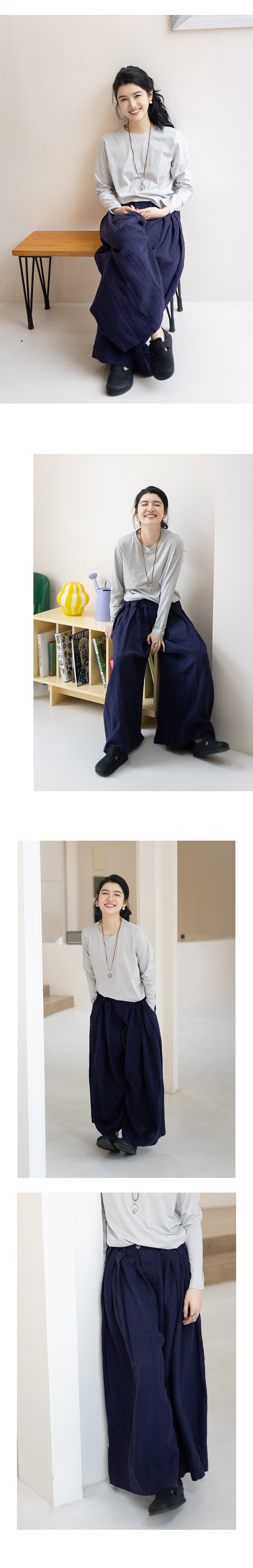 绽放502朵/武士裤宽松亚麻阔腿休闲裤