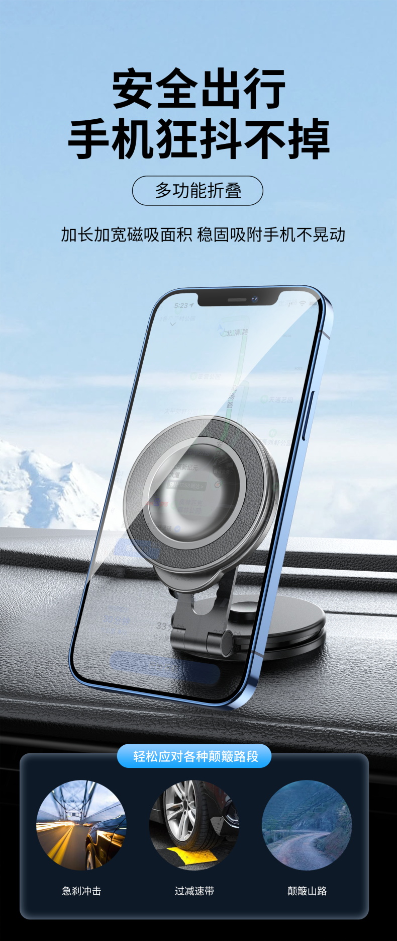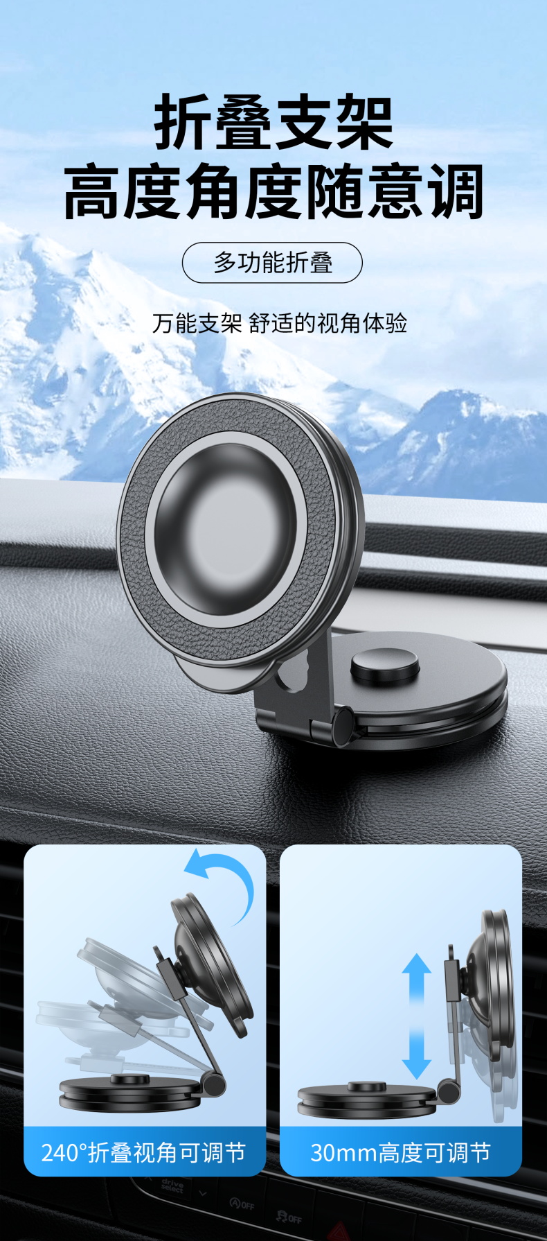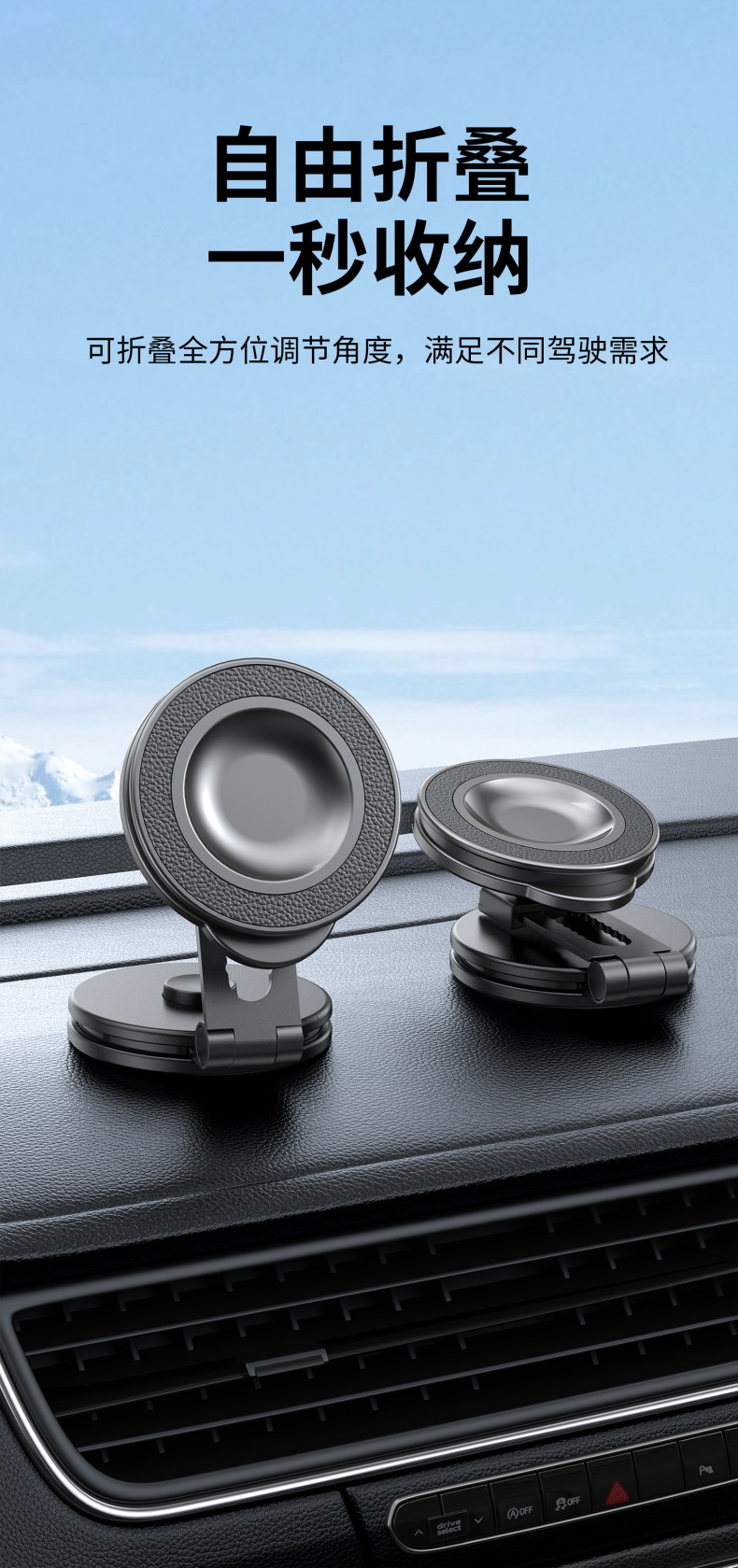 车载磁吸手机支架 百变折叠吸盘式汽车仪表台固定导航