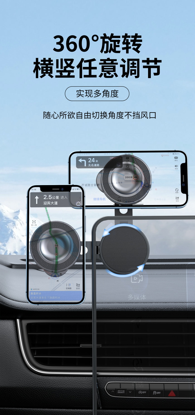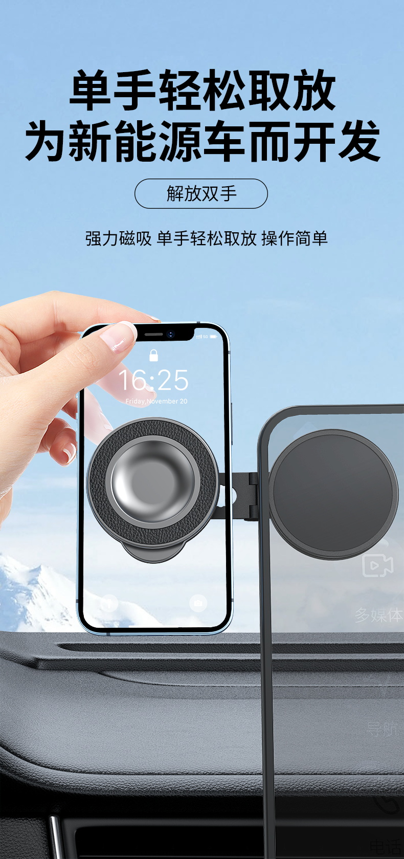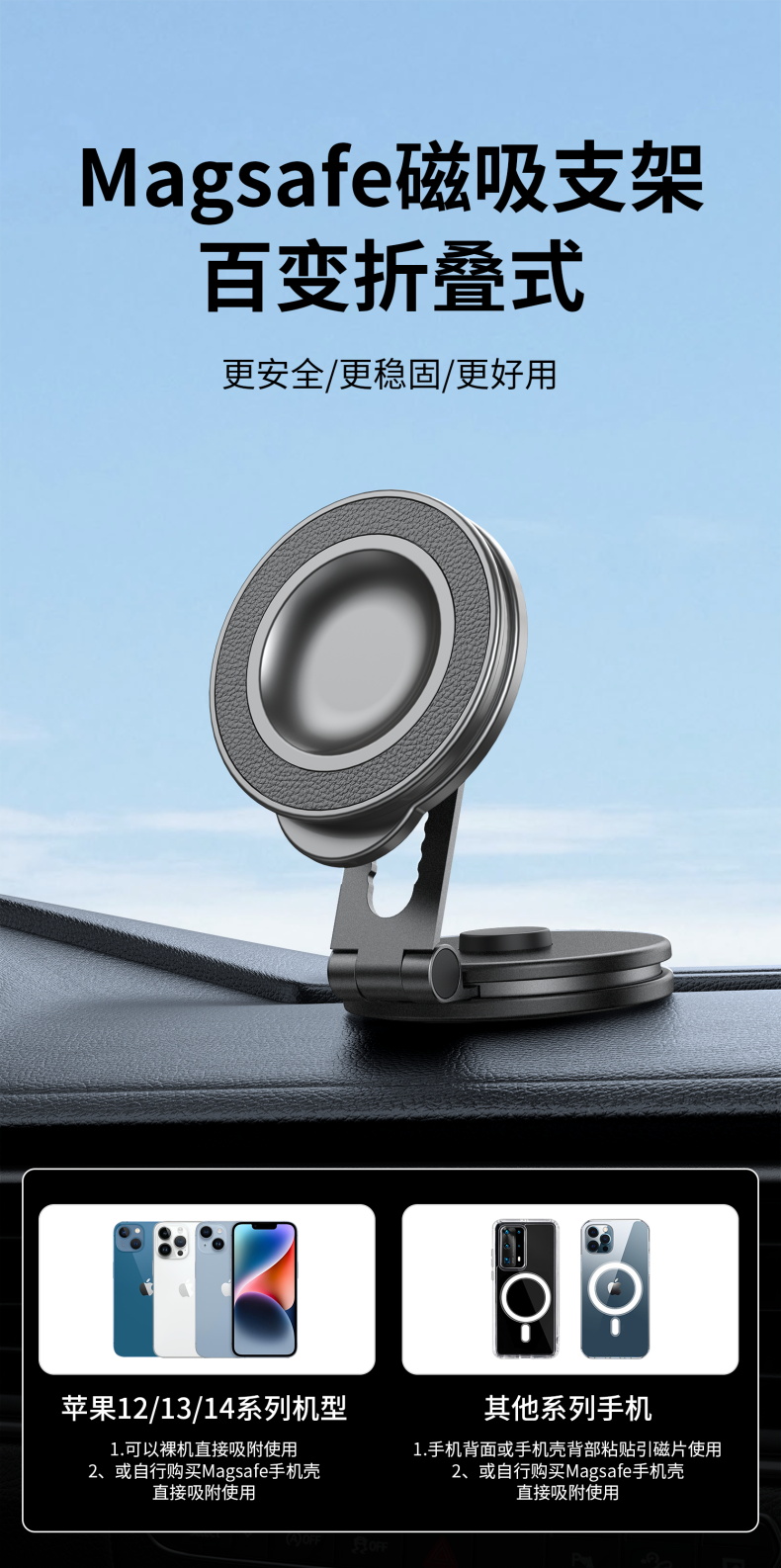 车载磁吸手机支架 百变折叠吸盘式汽车仪表台固定导航
