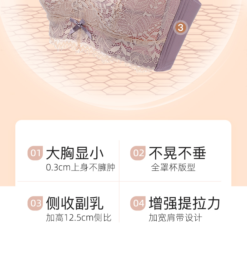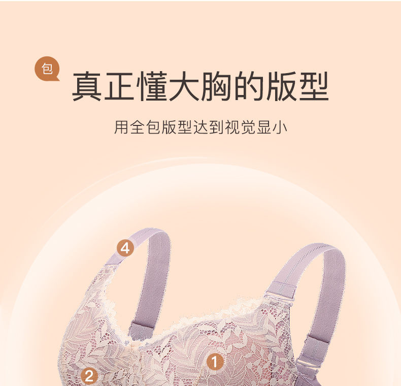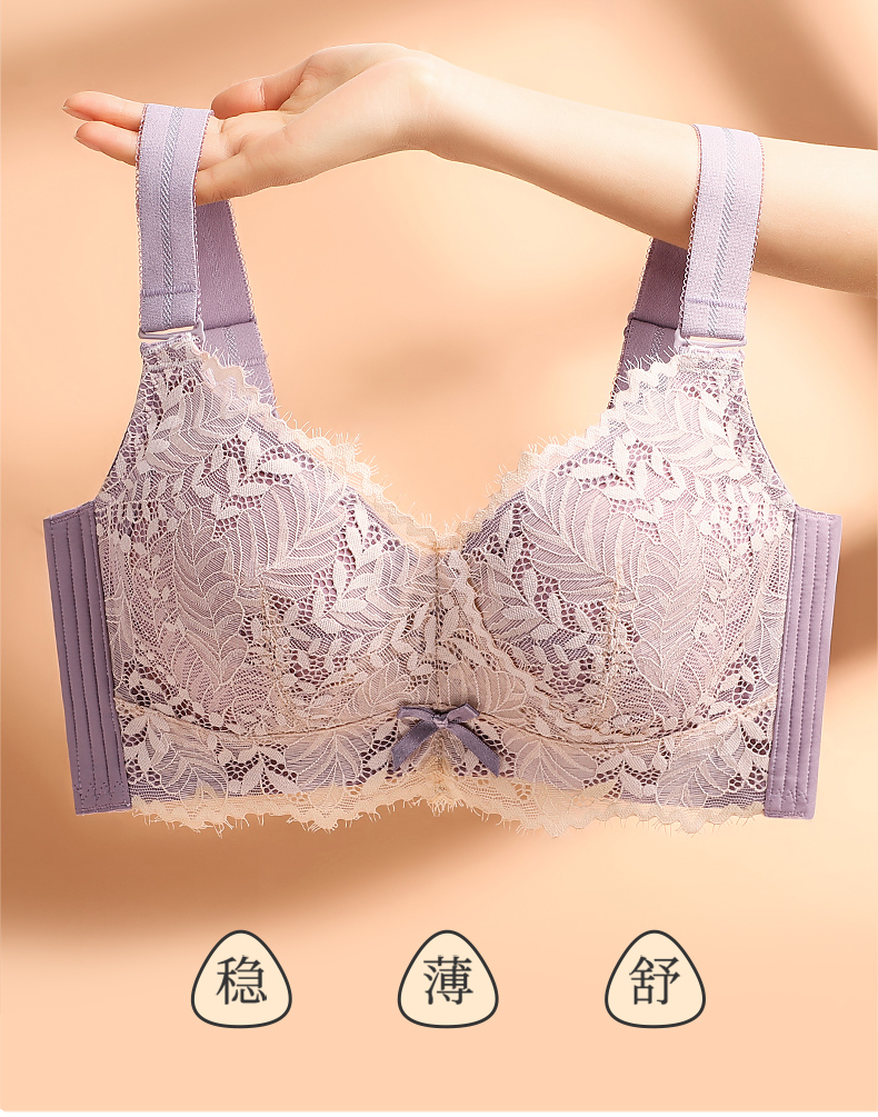梦芭蒂薄款内衣女大胸显小无钢圈防下垂调整型大码文胸罩嫣然如诗