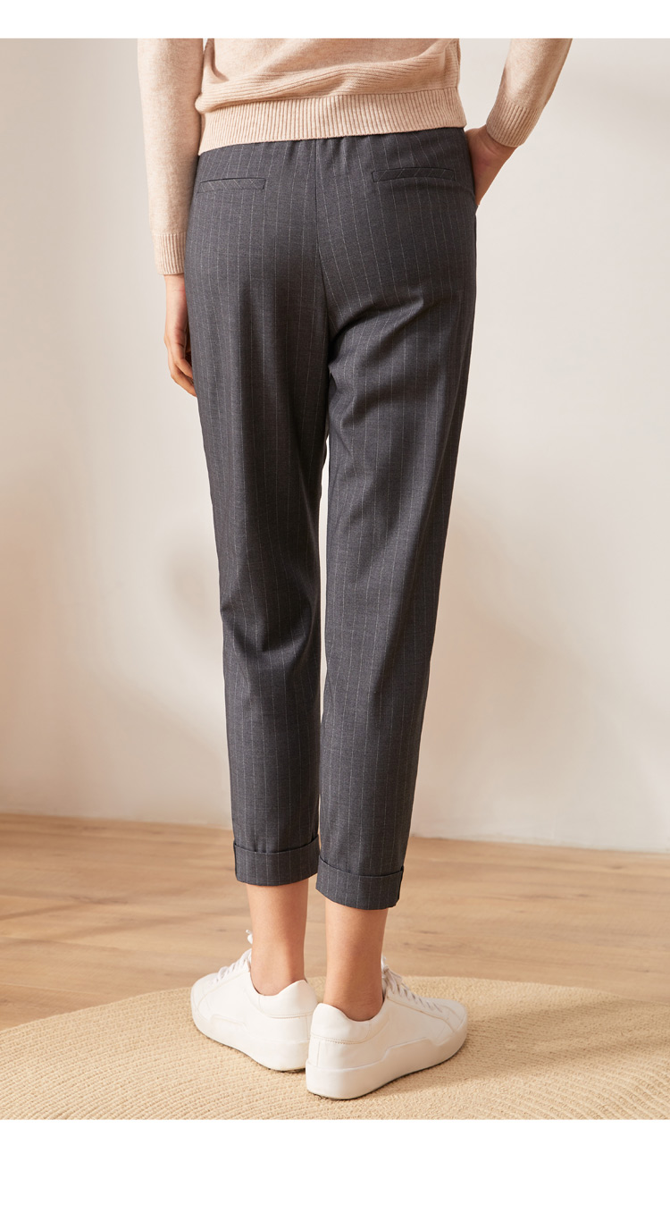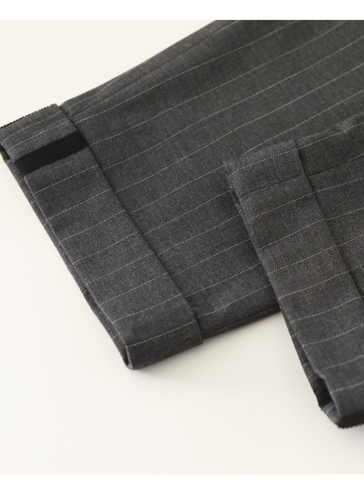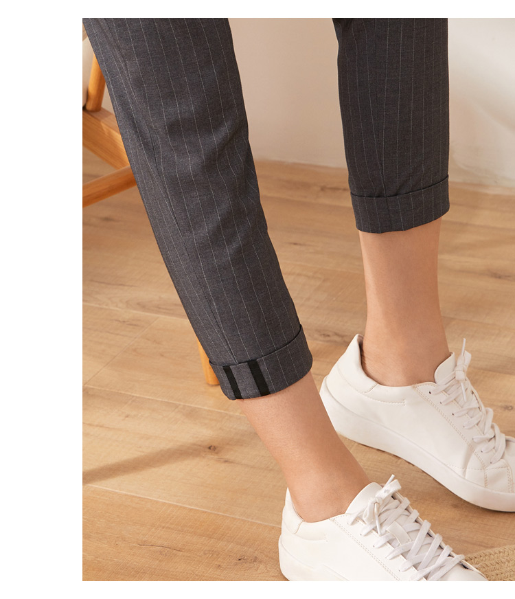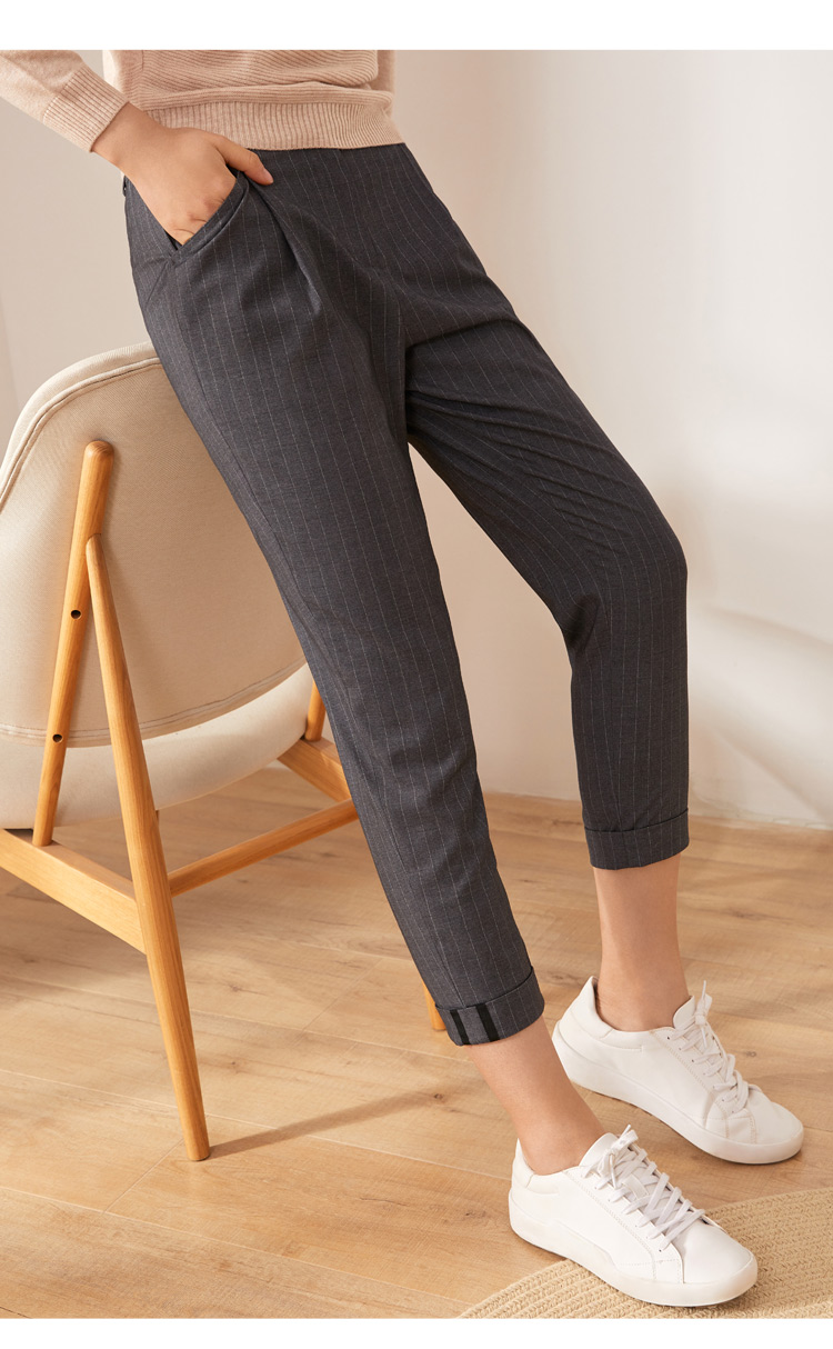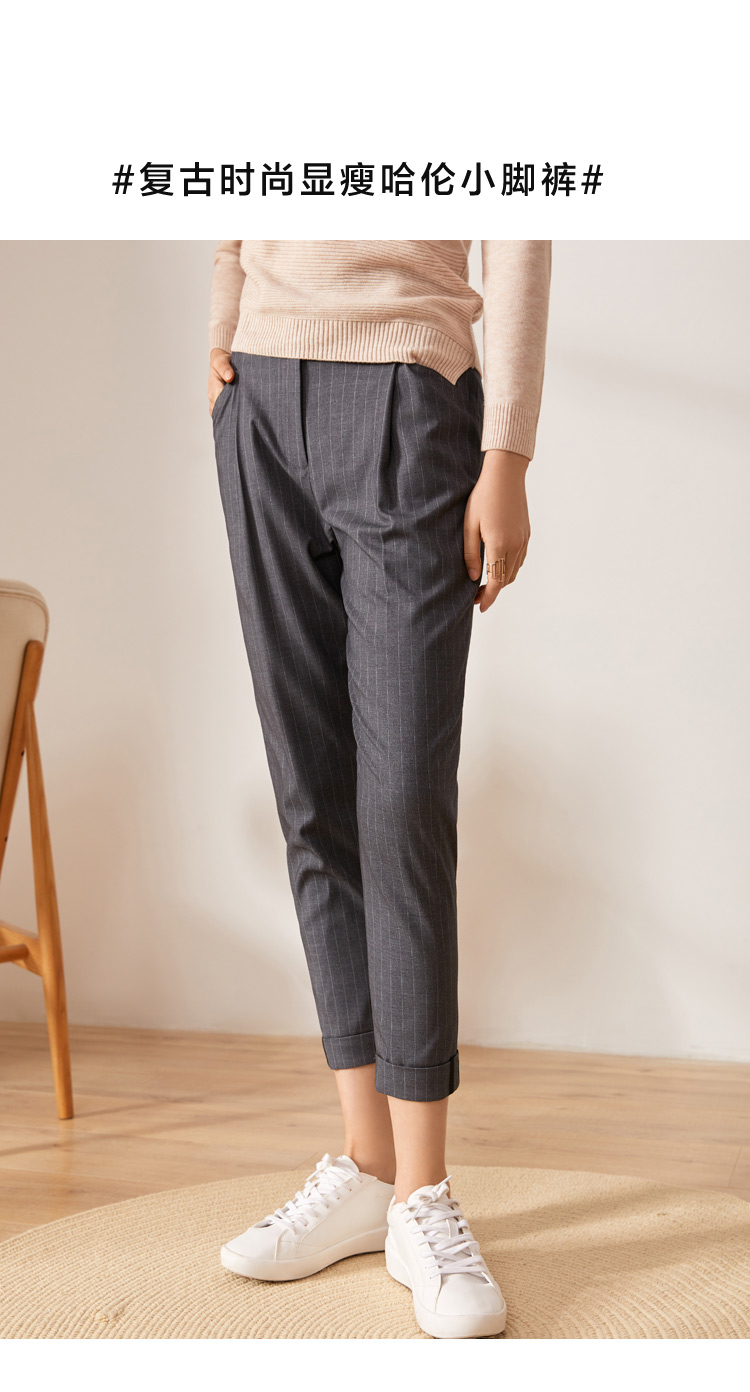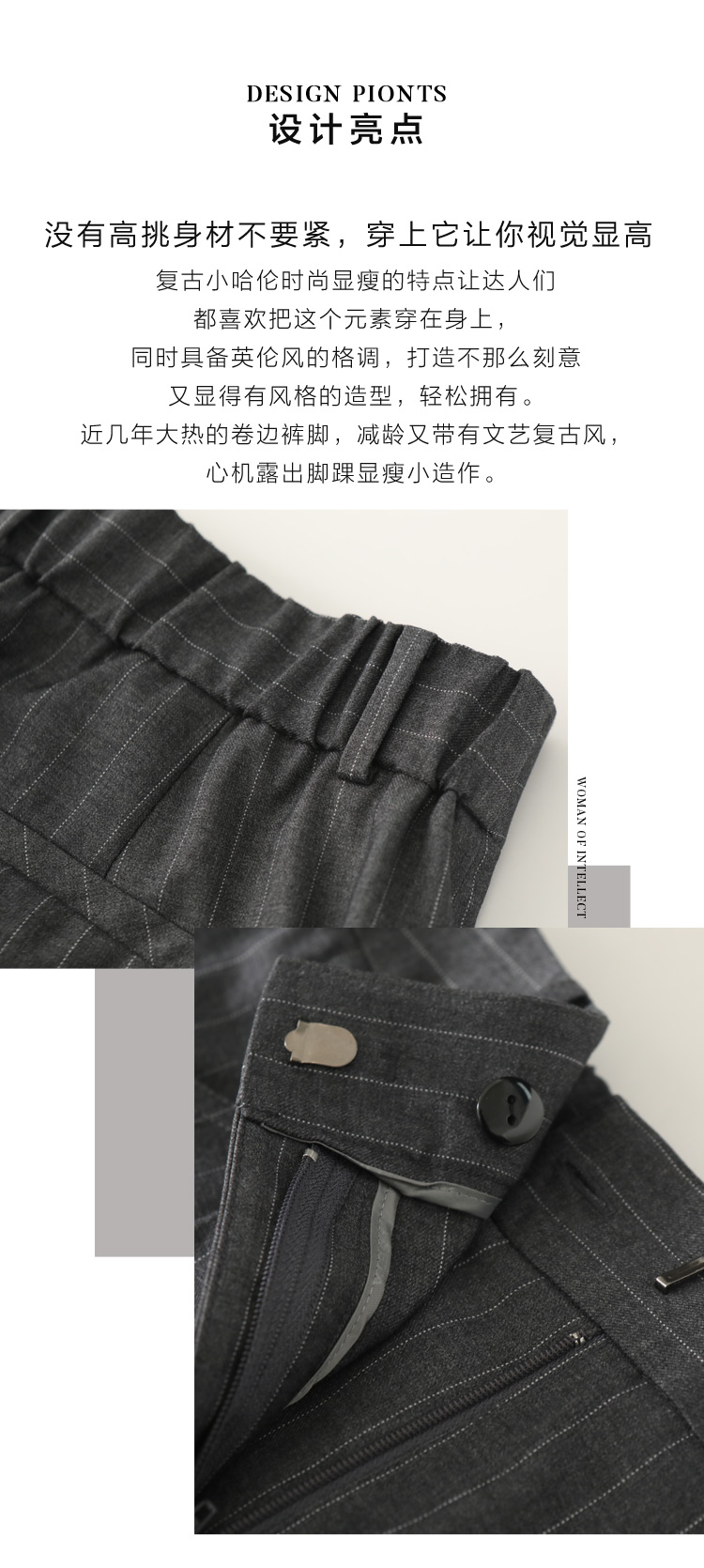 玳莎新款高腰九分哈伦休闲宽松小脚裤条纹直筒西装裤 BA36306