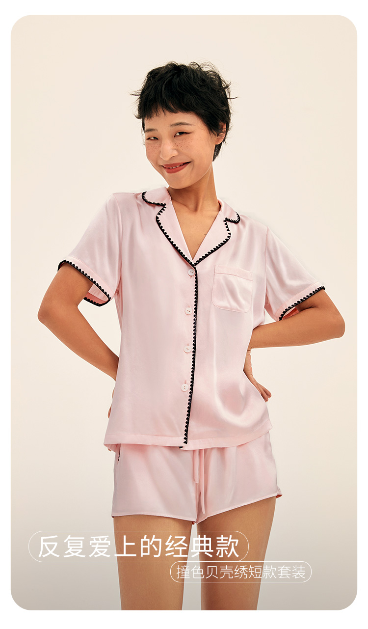 SANGLUO丝滑睡衣套装短袖短裤基础情侣桑蚕丝外穿家居服