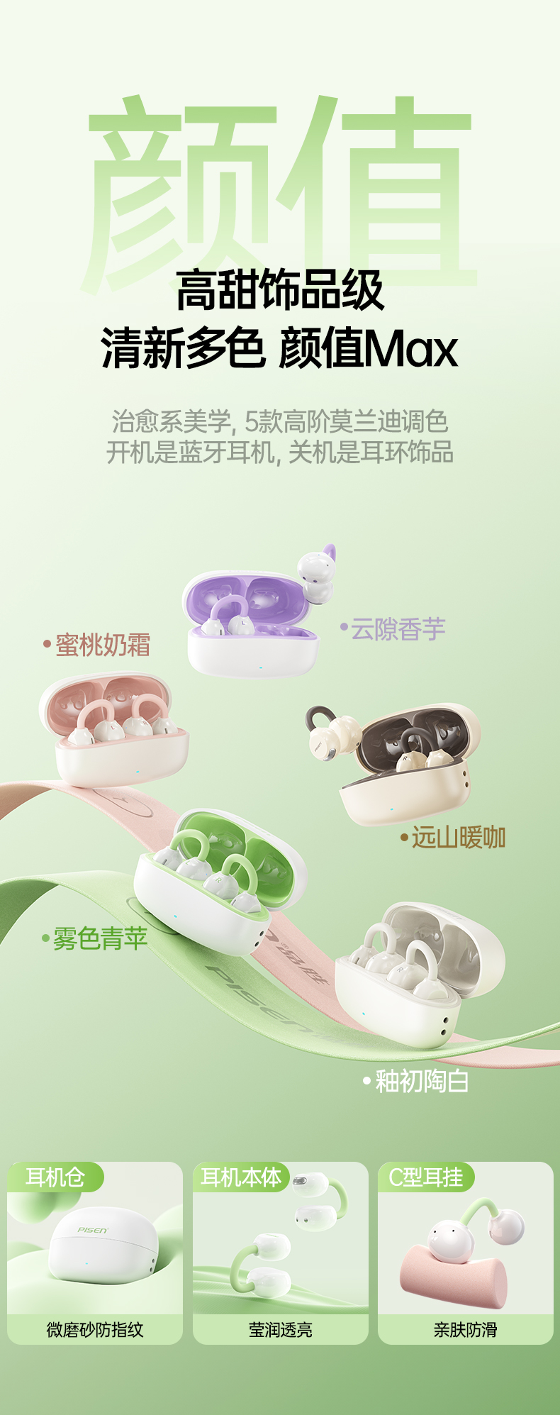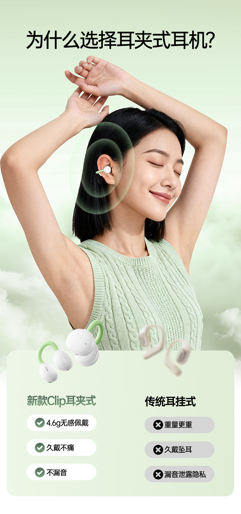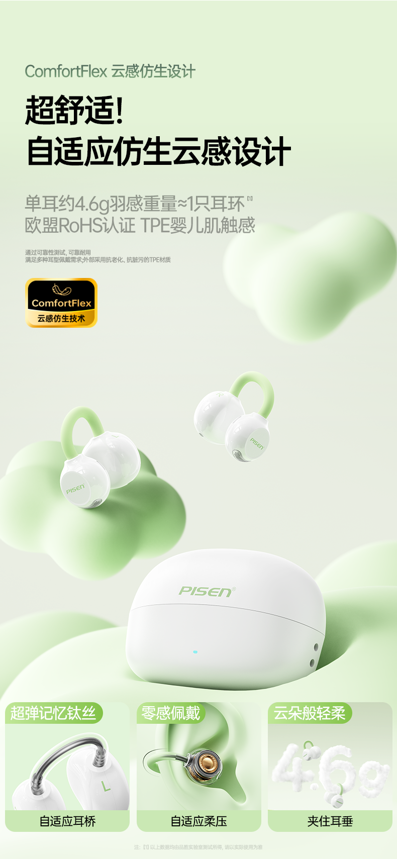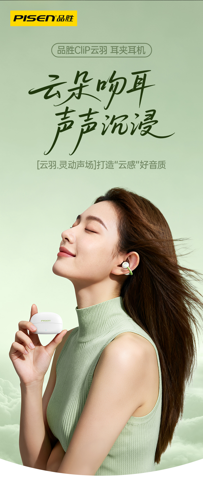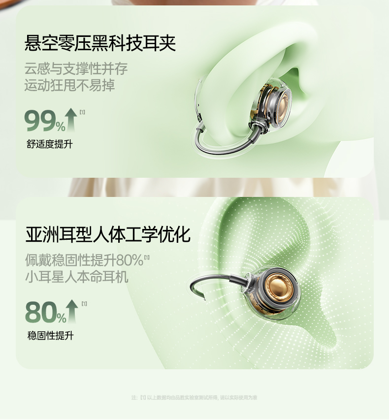 品胜 Clip Ⅰ「云羽·空气声场」开放式耳夹耳机 杜比音效大师音质 跑步运动无线耳机