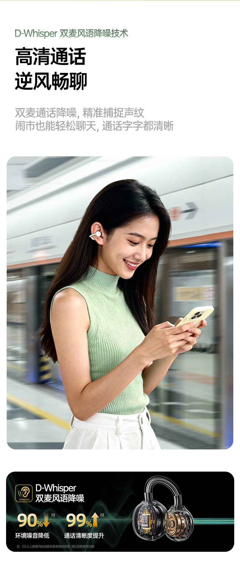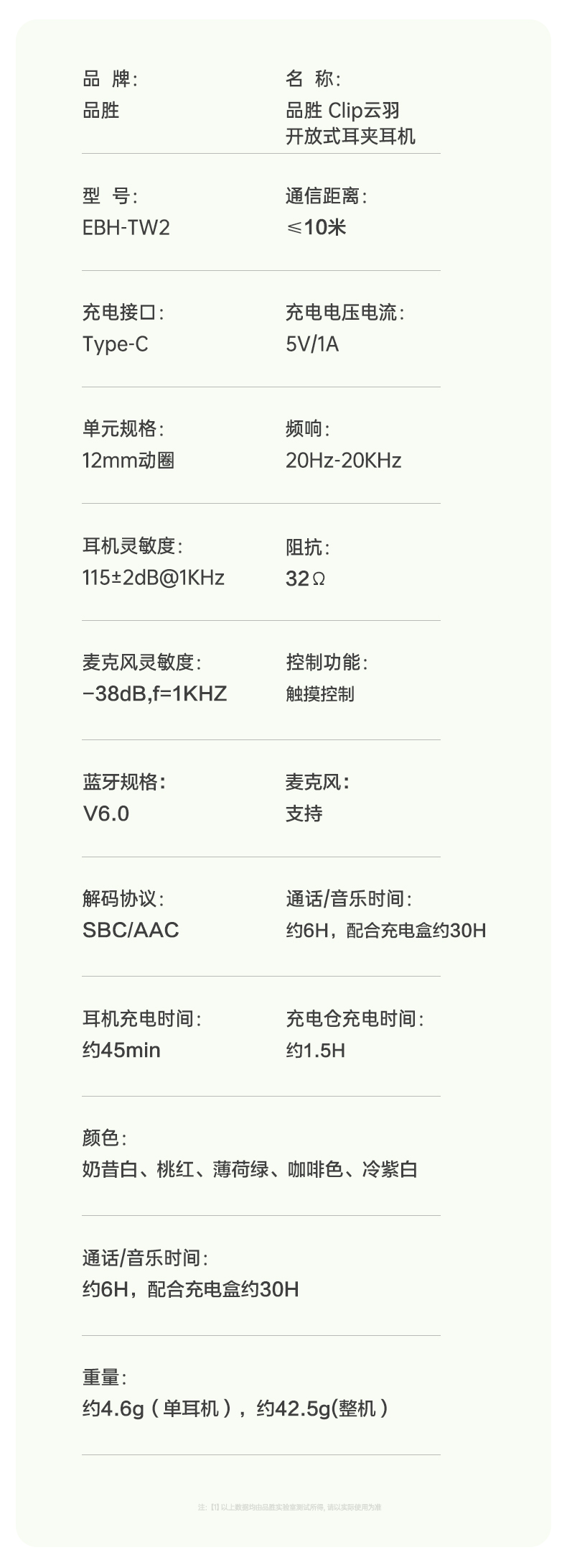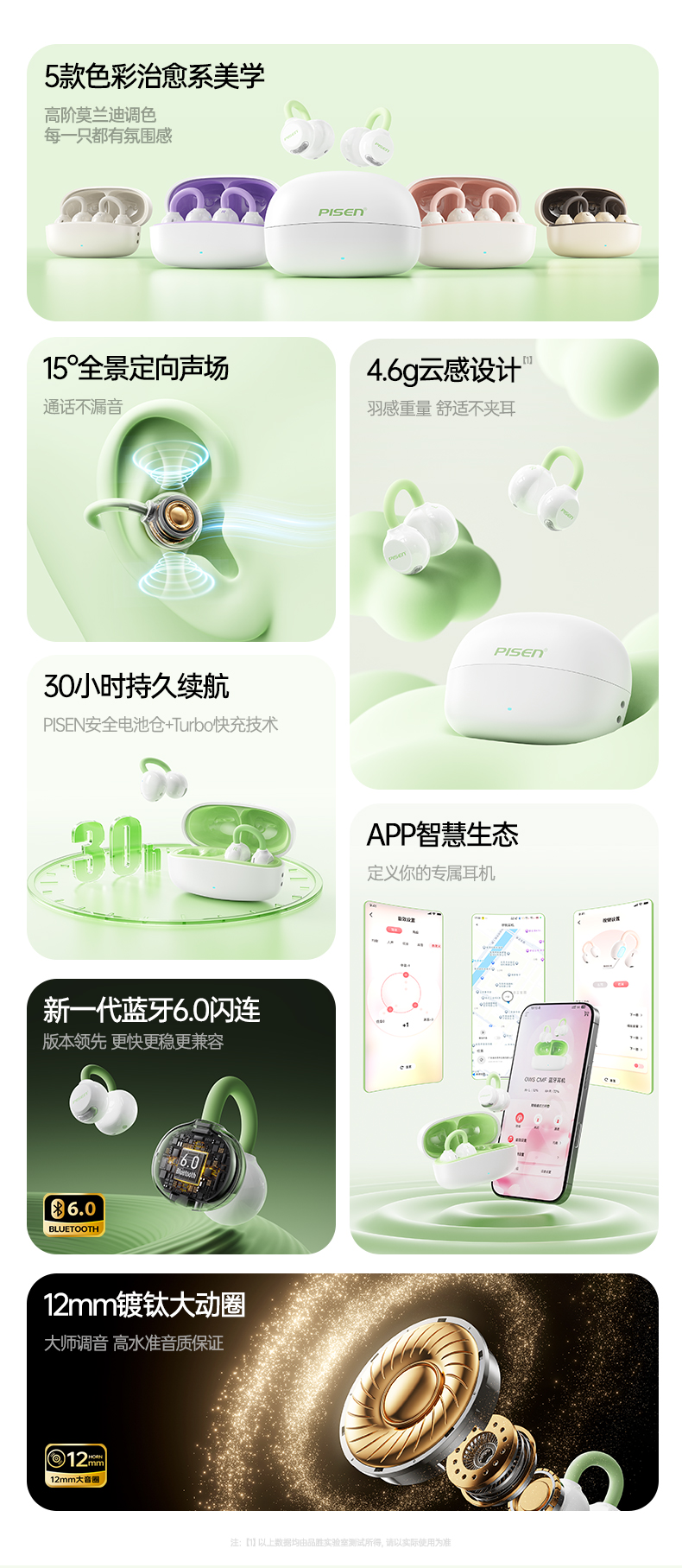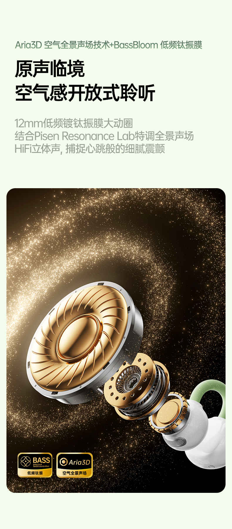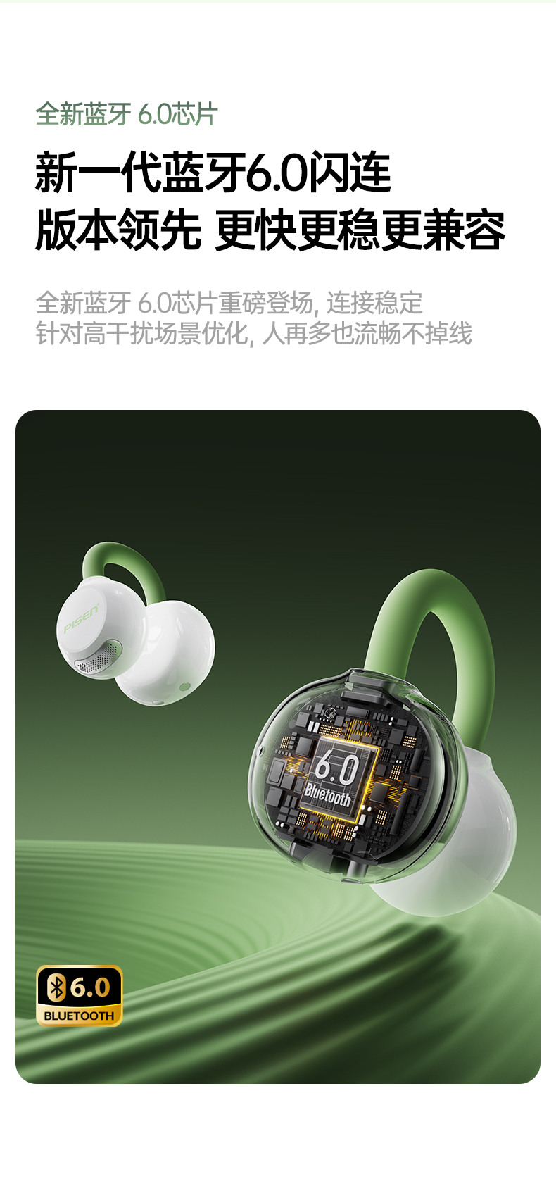 品胜 Clip Ⅰ「云羽·空气声场」开放式耳夹耳机 杜比音效大师音质 跑步运动无线耳机