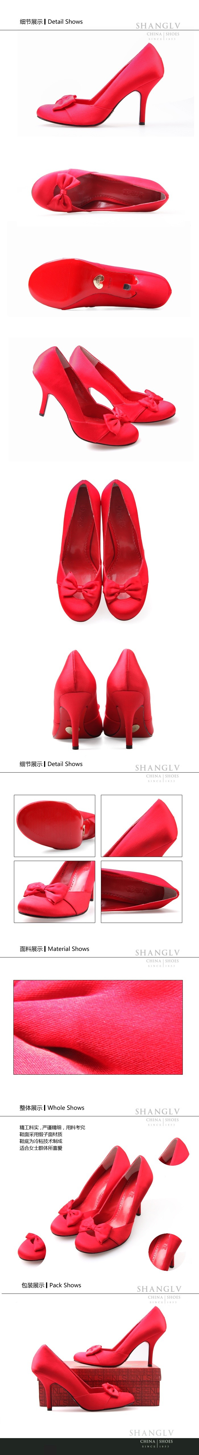 内联升女鞋单鞋春夏季女式真丝时尚芭比高跟婚鞋6861C