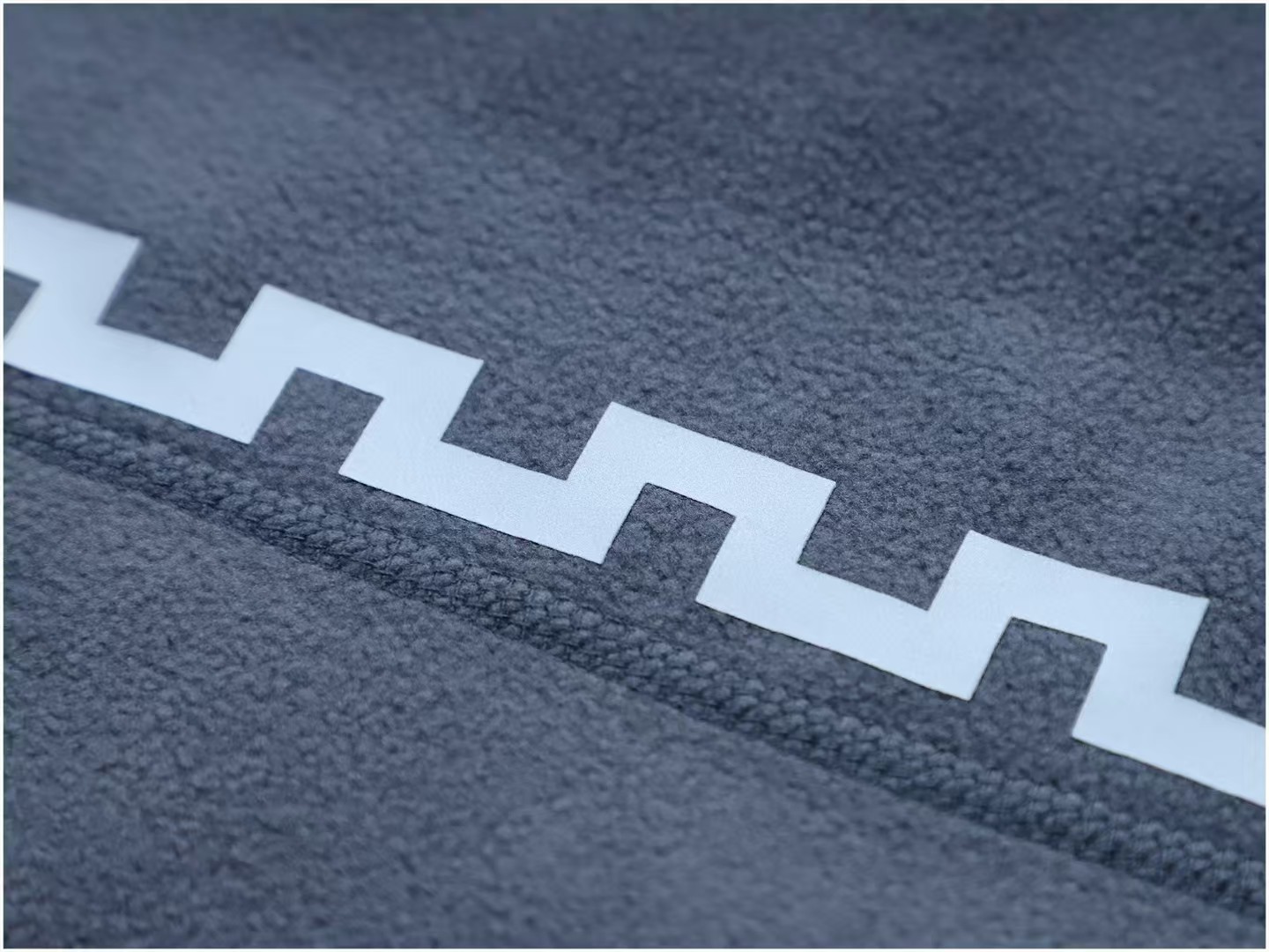 胸口硅胶反光标+后背硅胶长城图案。衣物外标为胶印烫,请不要高温清洗,也不可甩干熨烫烘干