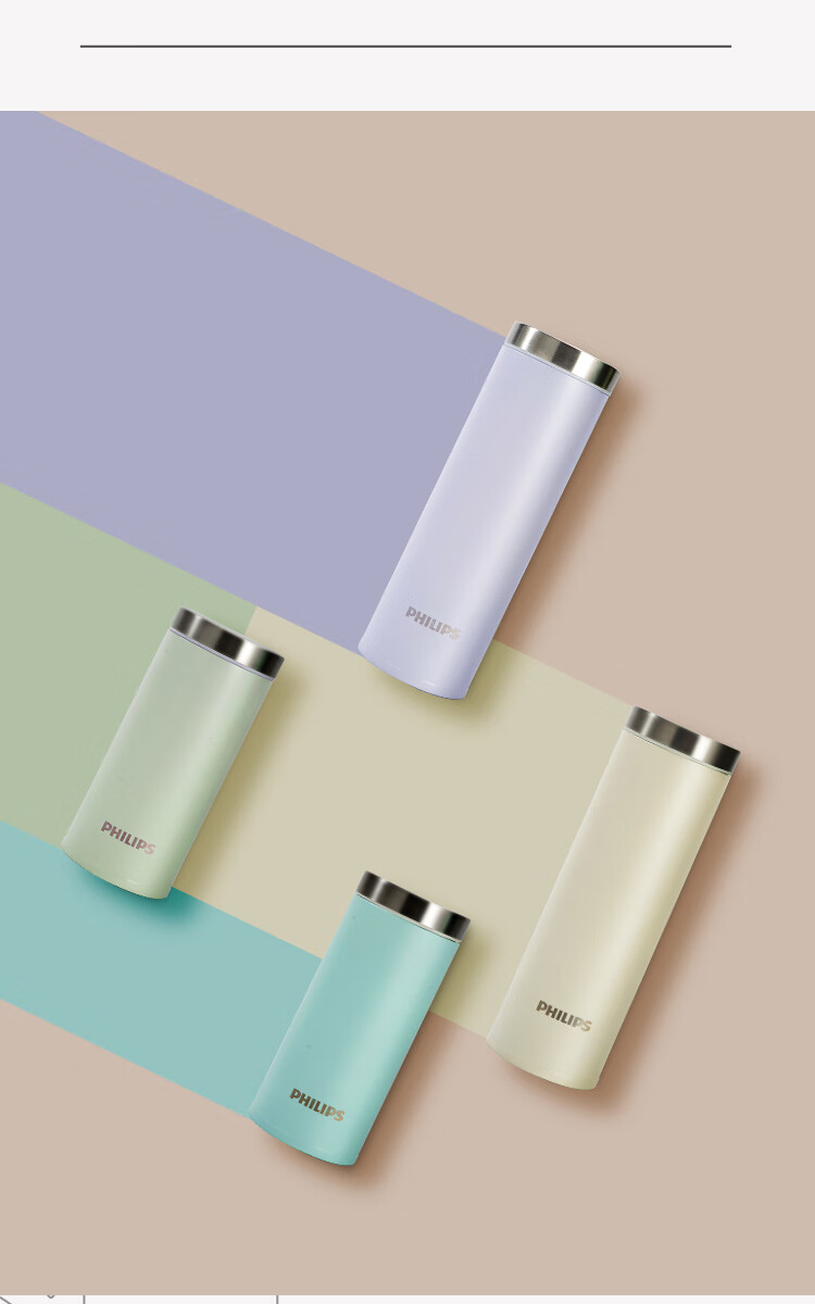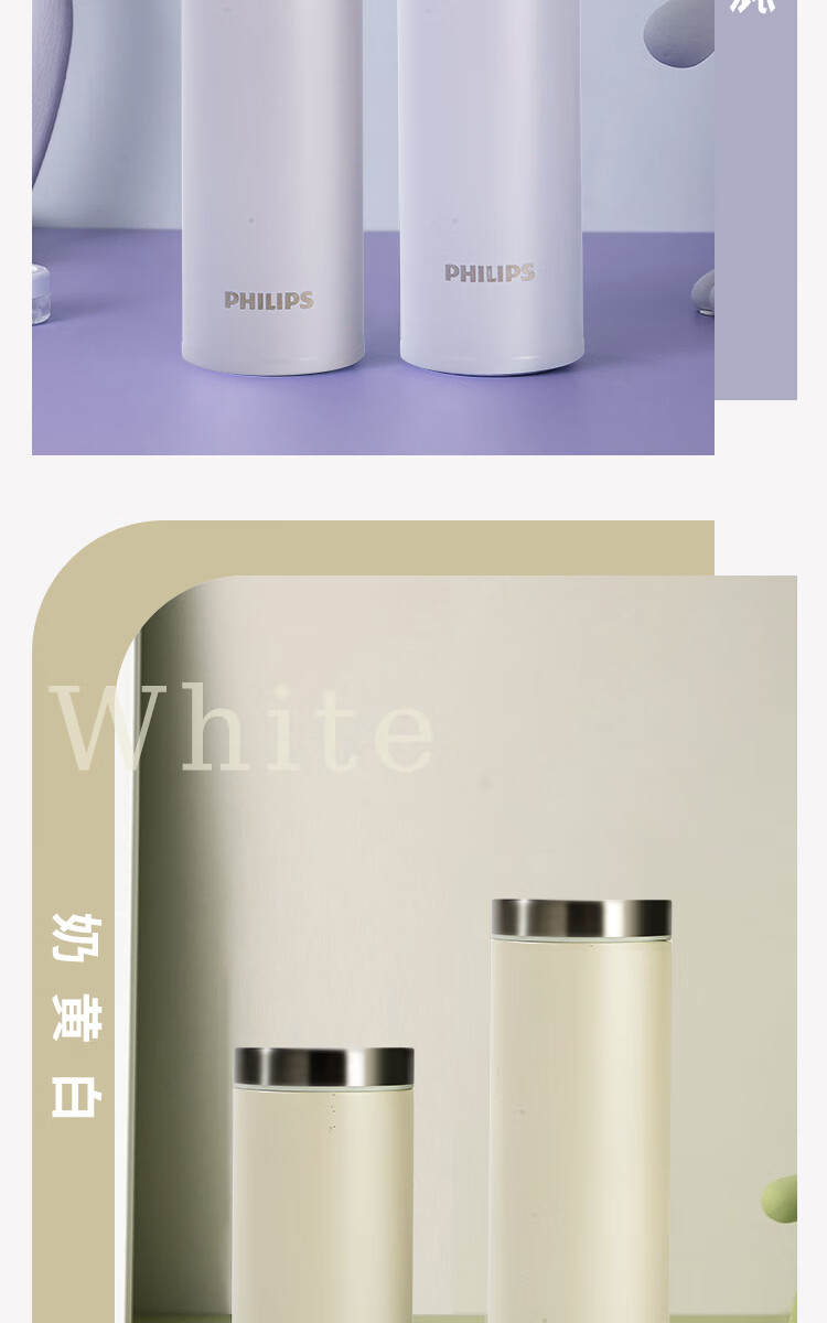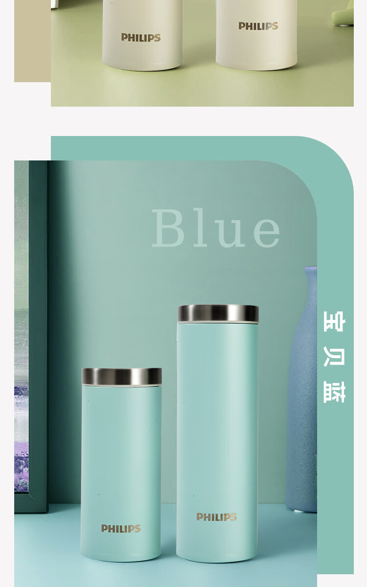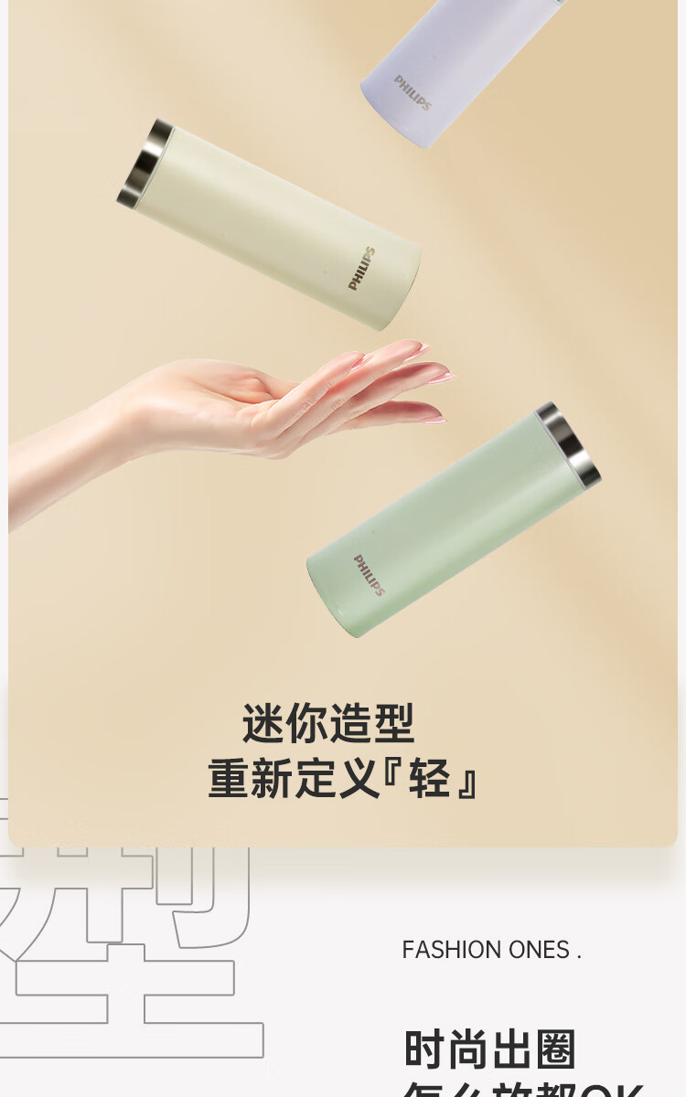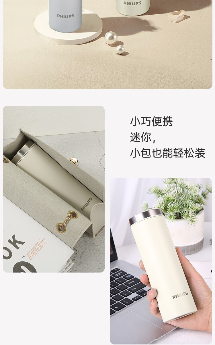 【6F】飞利浦保温杯口袋杯女士316不锈钢随身便携水杯子办公300ml茶漏AWP2565奶油白300ml