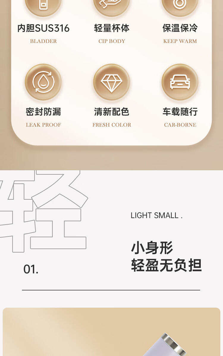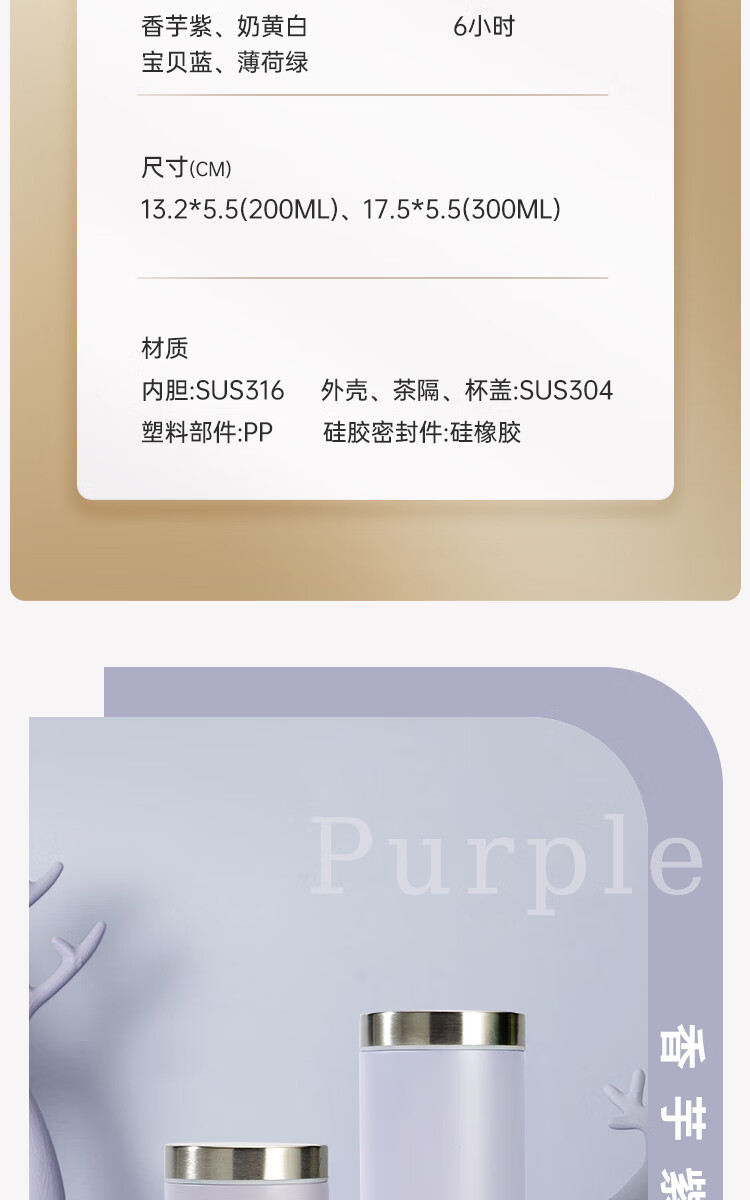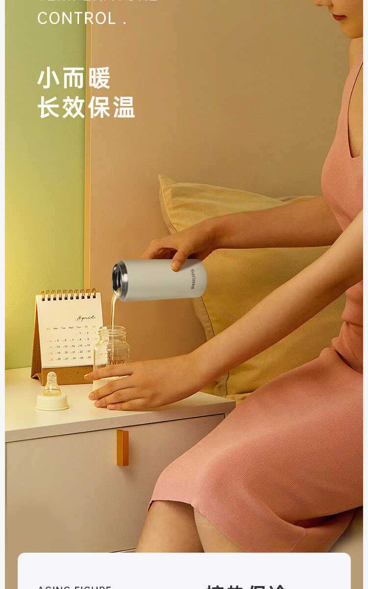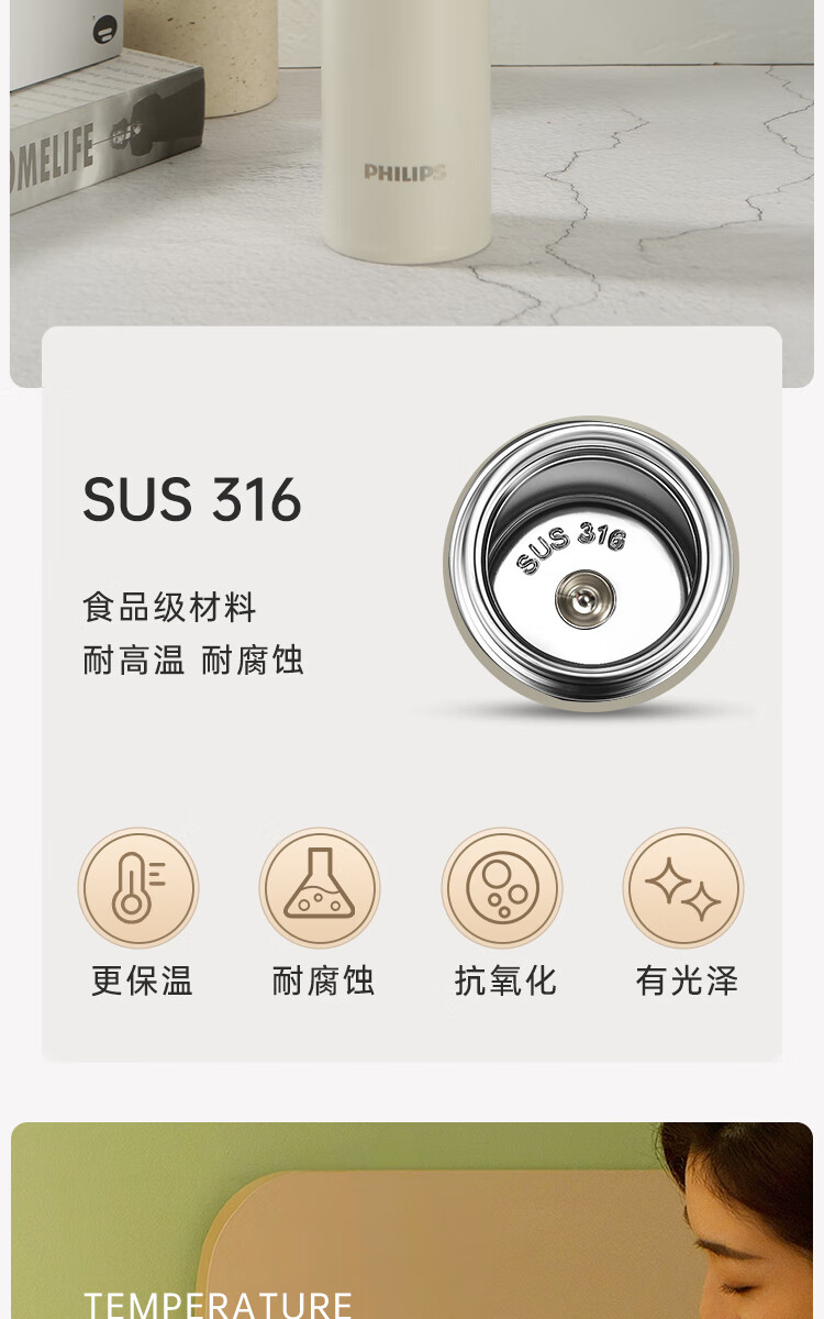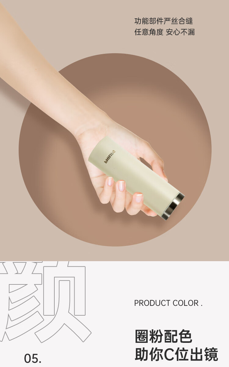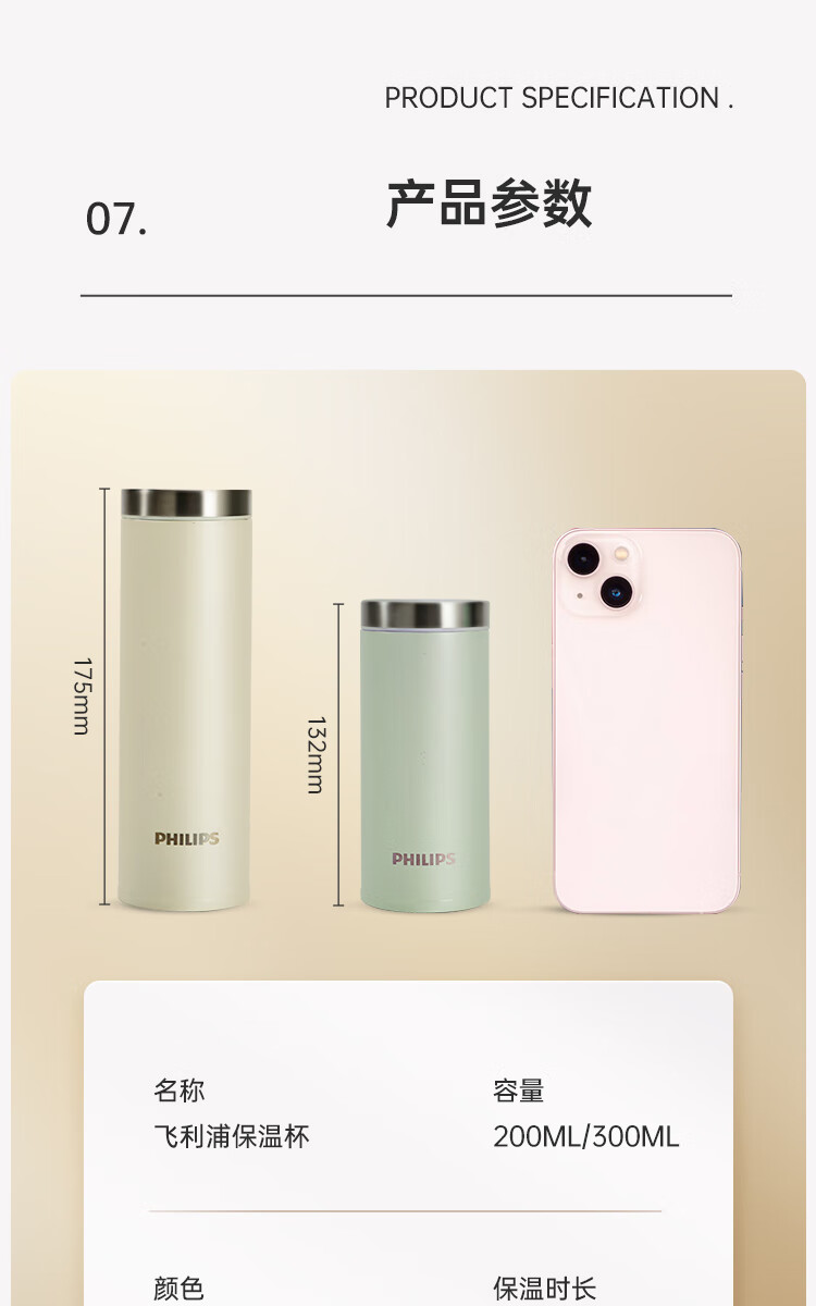 【6F】飞利浦保温杯口袋杯女士316不锈钢随身便携水杯子办公300ml茶漏AWP2565奶油白300ml