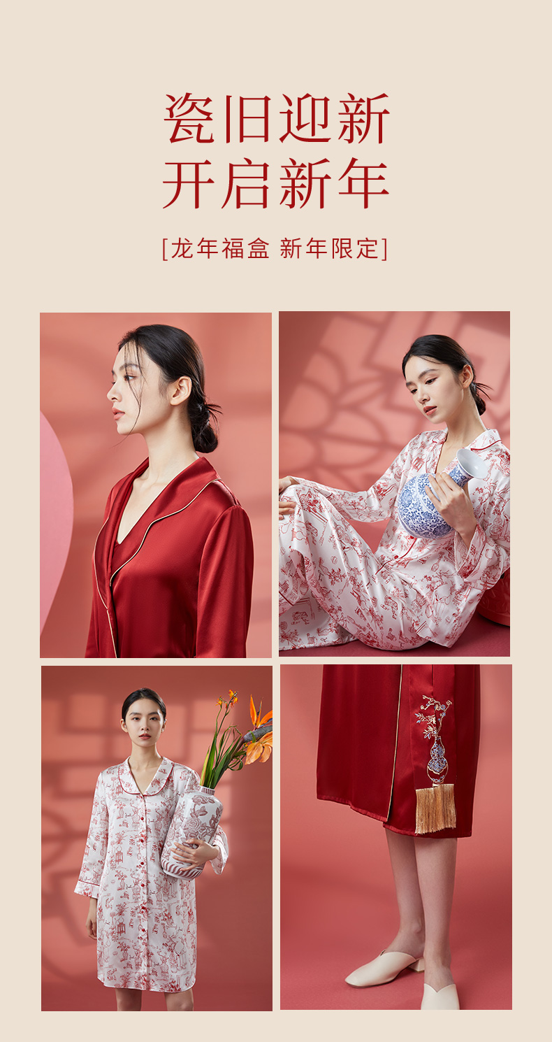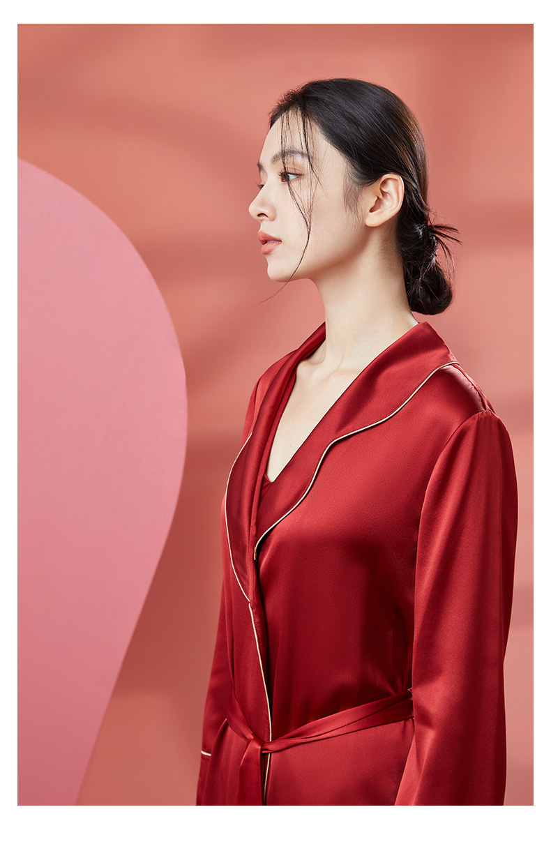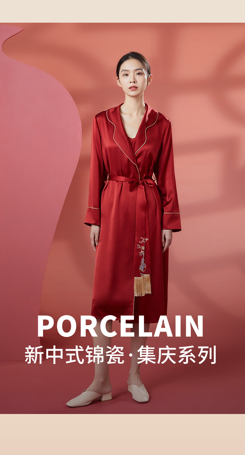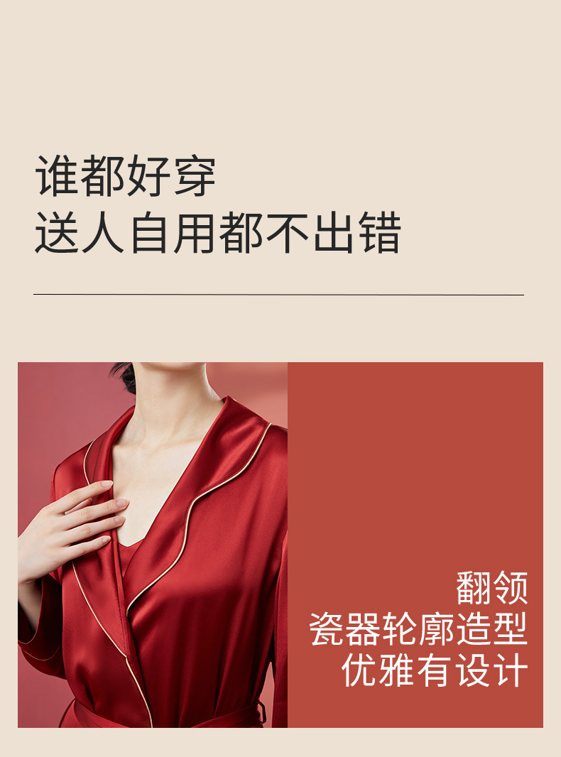 新年献礼】19姆米100%桑蚕丝红色真丝新中式刺绣睡袍女晨袍金三塔新品 YSFDD106