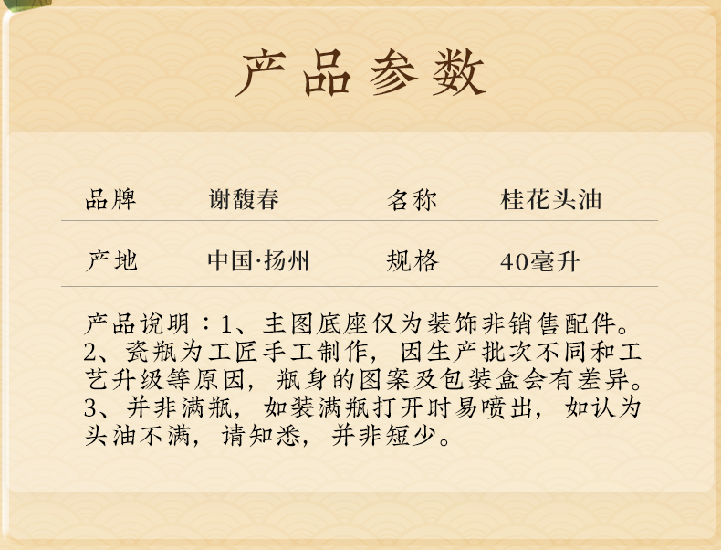 谢馥春 头油40毫升 桂花香型 护发 拍2瓶加赠定制木梳*1