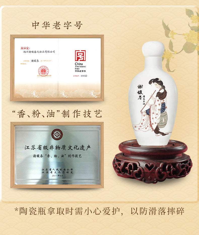 - 扬州谢馥春始源于清道光10年(1830年)。1915年与“茅台酒”同获美国巴拿马万国博览会大奖,现被商务部授予“中华老字号”称号
