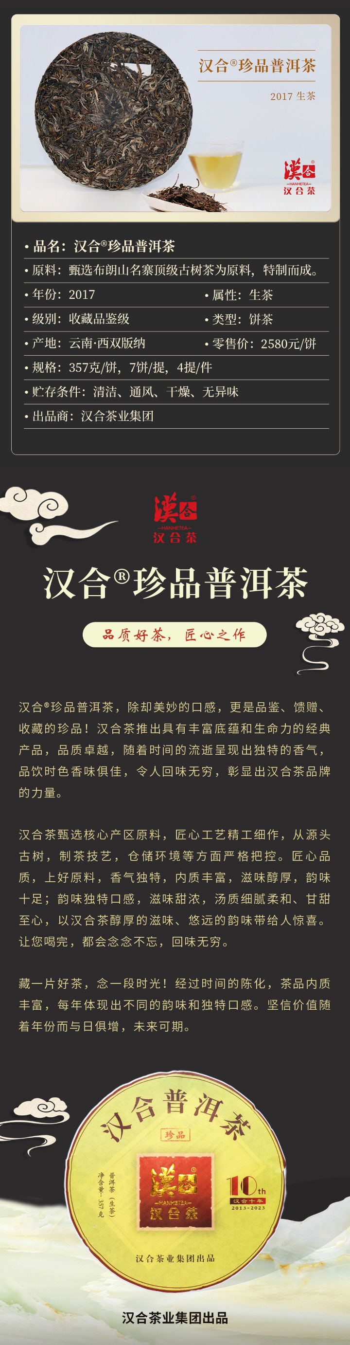 汉合珍品普洱茶 2017年古树 汉合十年珍藏
