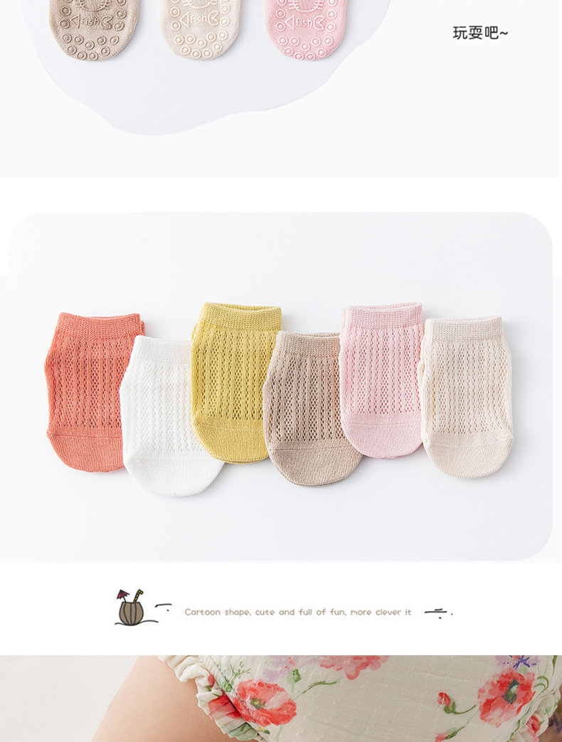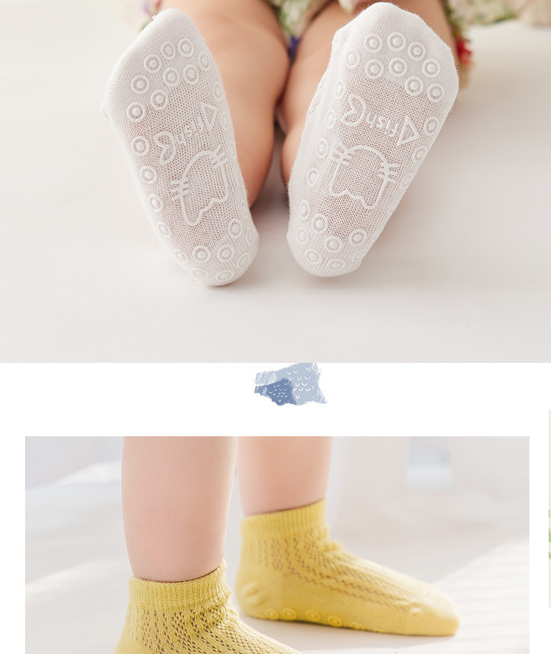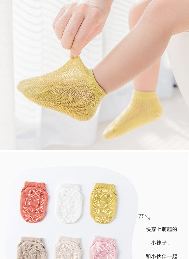 【3双装 防滑隔凉 柔软透气抗起球】宝宝地板袜春秋棉透气袜子婴儿学步室内夏季薄款隔凉儿童防滑袜