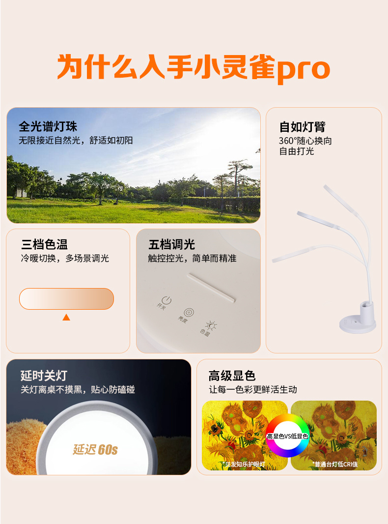 全光谱小灵雀PRO护眼台灯儿童阅读学习专用书房钢琴读写灯
