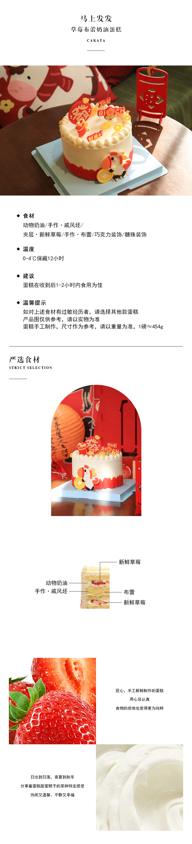 马上发发·草莓布蕾奶油蛋糕(可备注少糖)