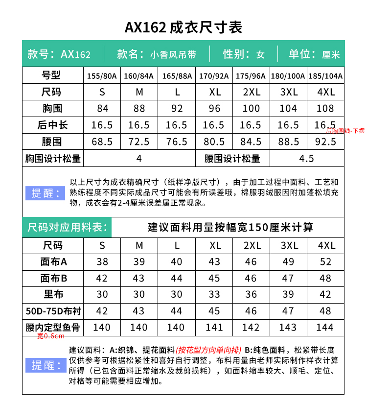 裁缝学苑AX162小香风吊带背心纸样内衣女装西装内搭打底宫廷鱼骨上衣样板