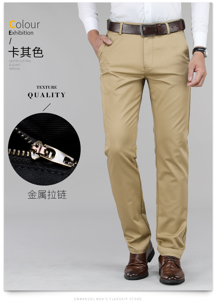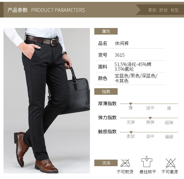 【服饰鞋包】。春夏薄款男式高腰商务休闲休闲长裤中年弹力大码百搭男裤