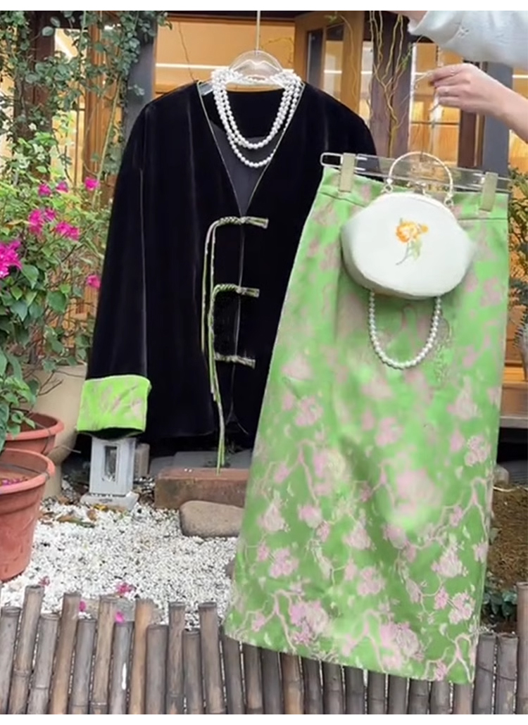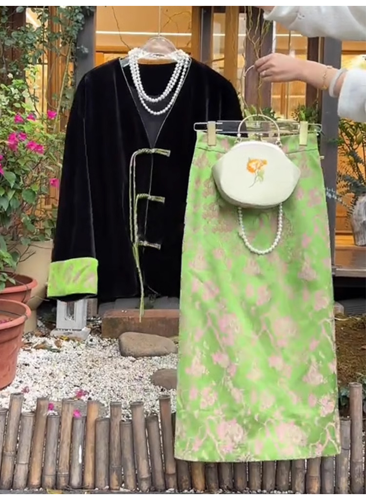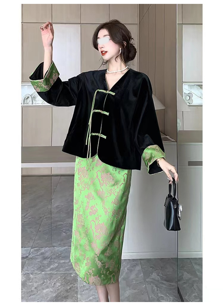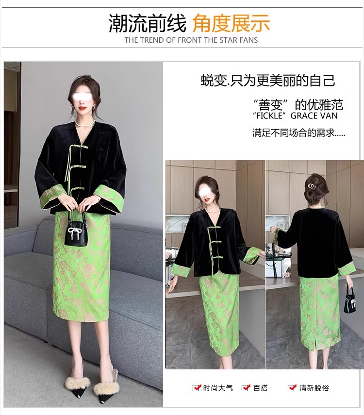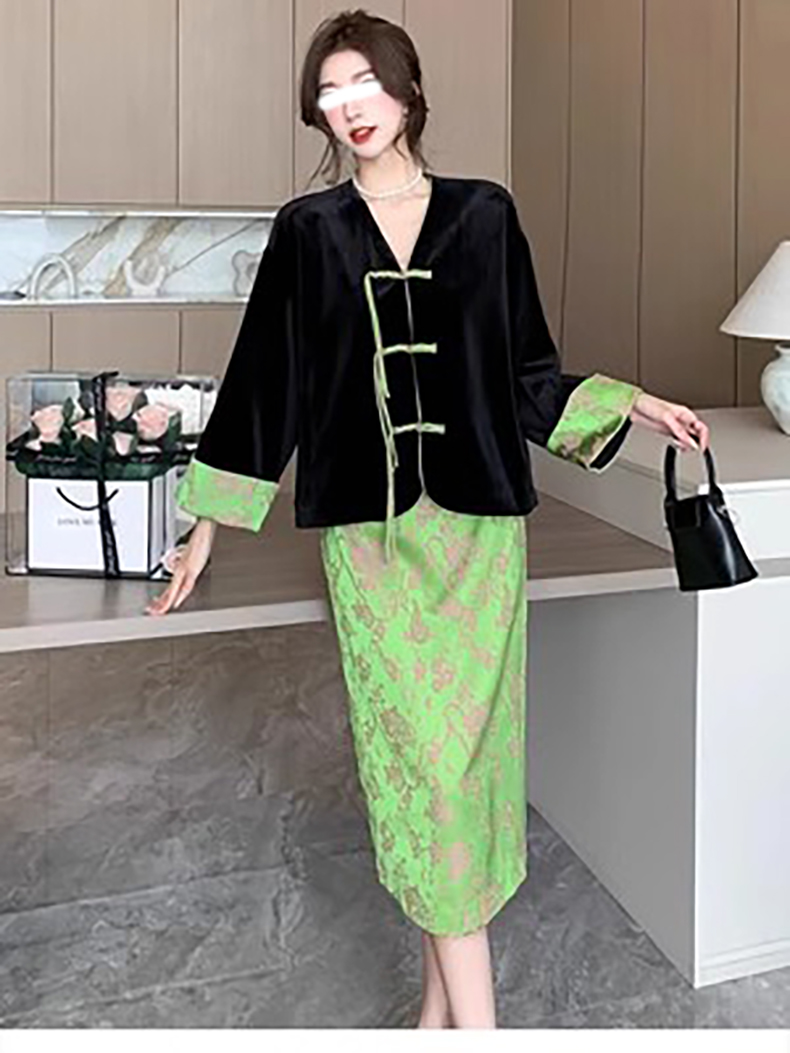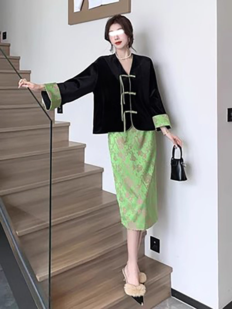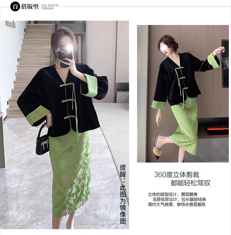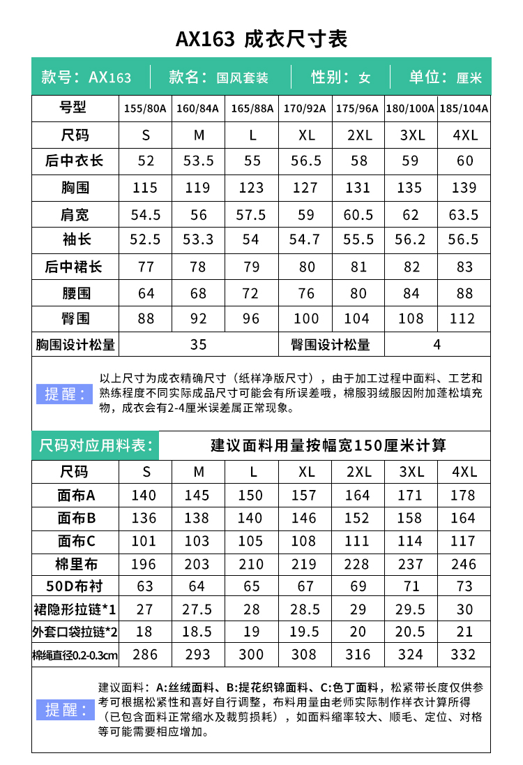 裁缝学苑AX163新中式国风盘扣上衣半裙两件套装纸样女装唐装裁剪图纸