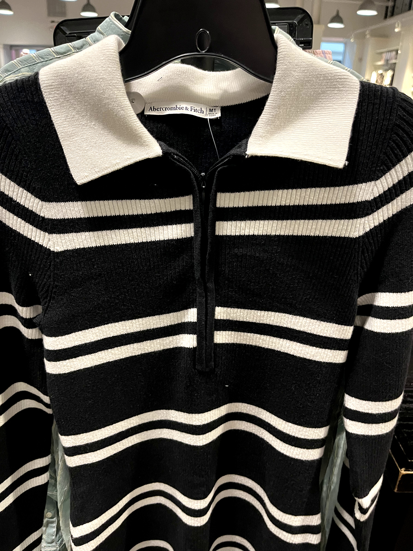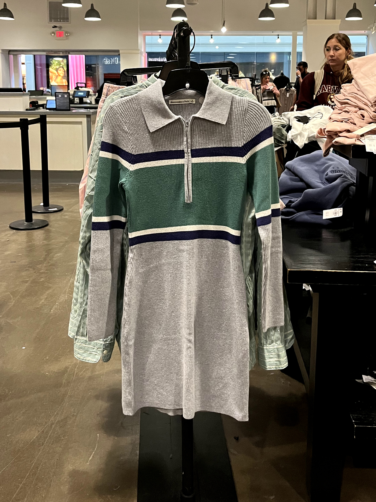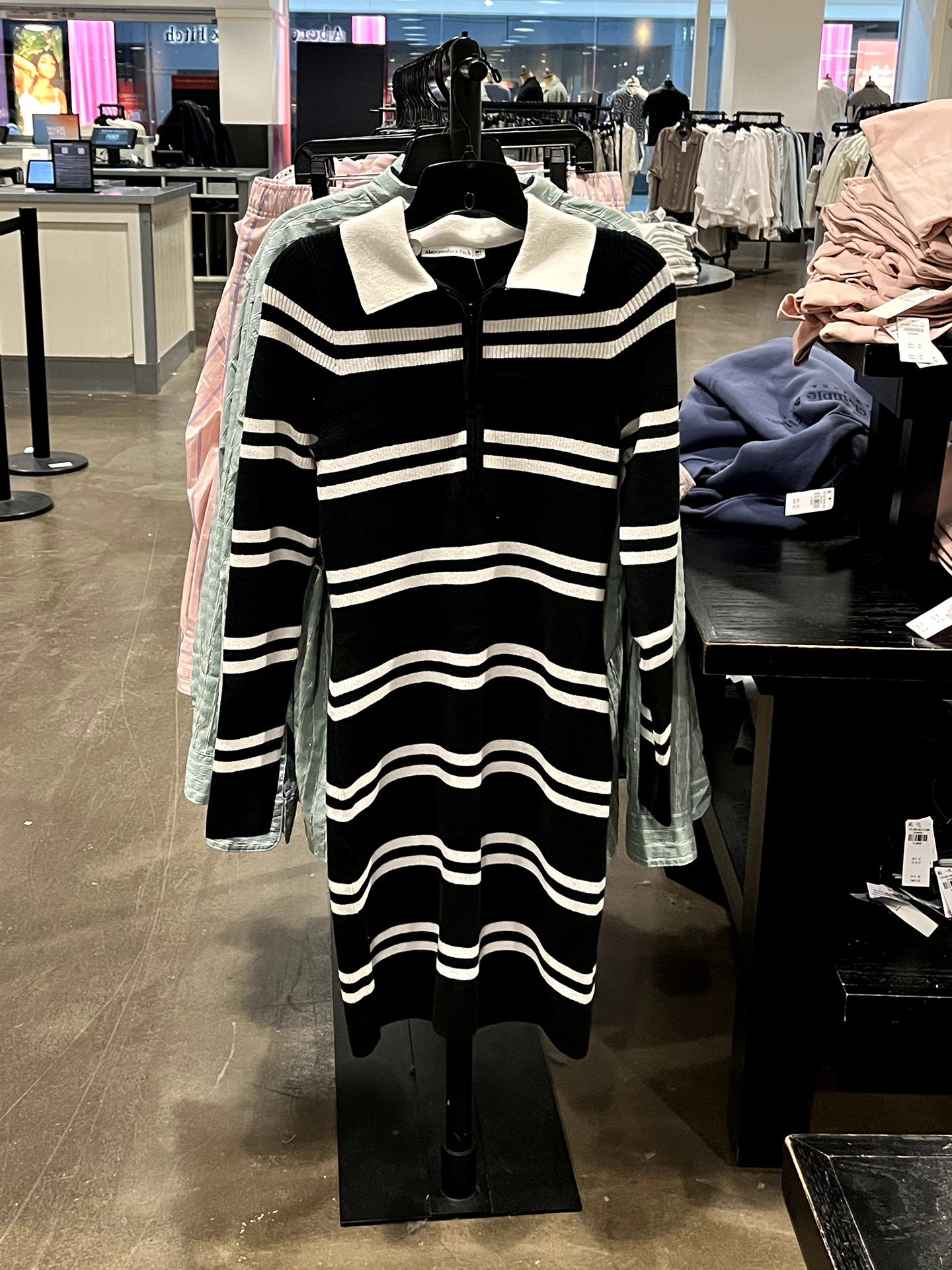 Abercrombie Fitch/AF 女春秋条纹半拉链翻领休闲长袖针织连衣裙