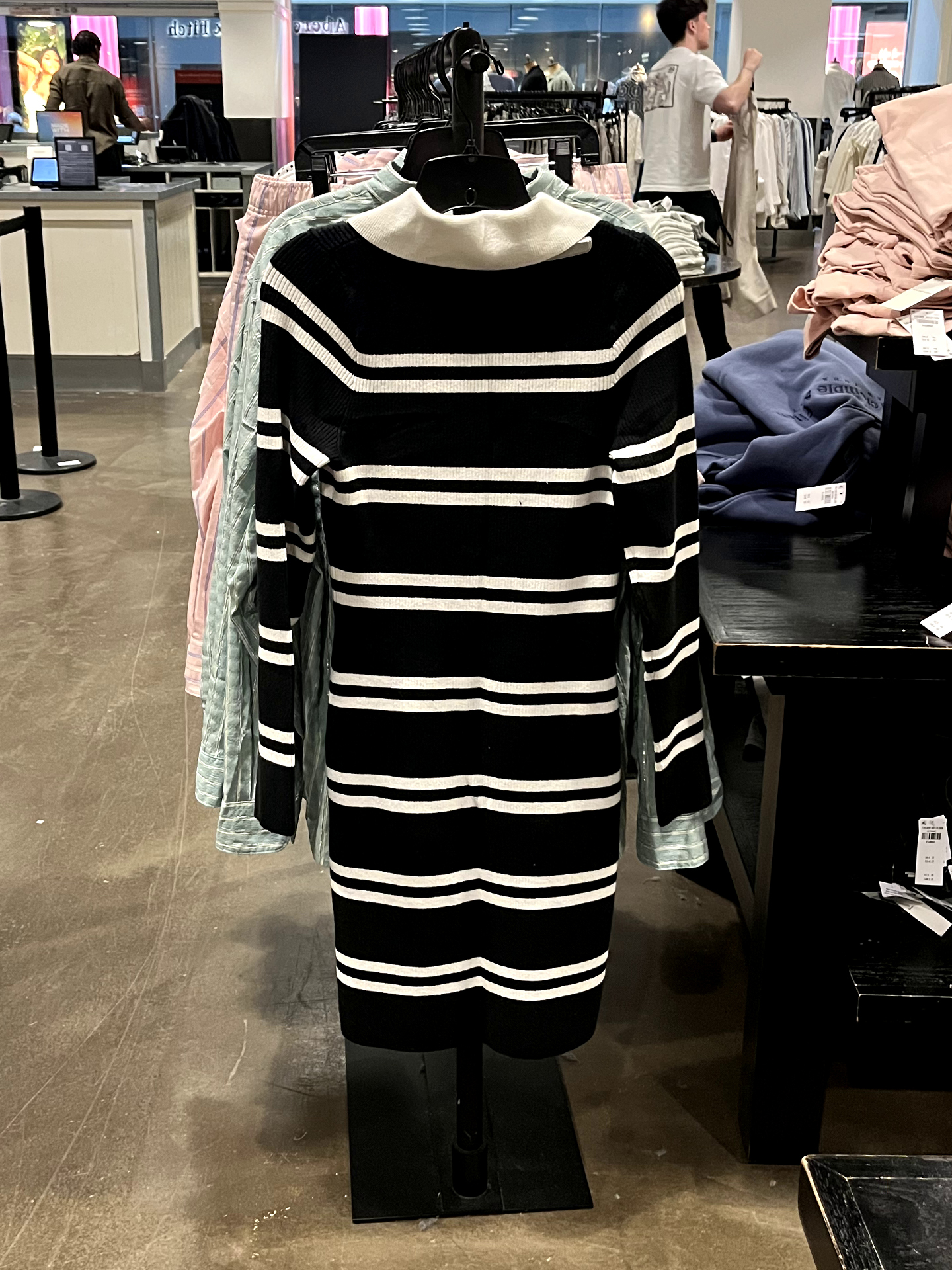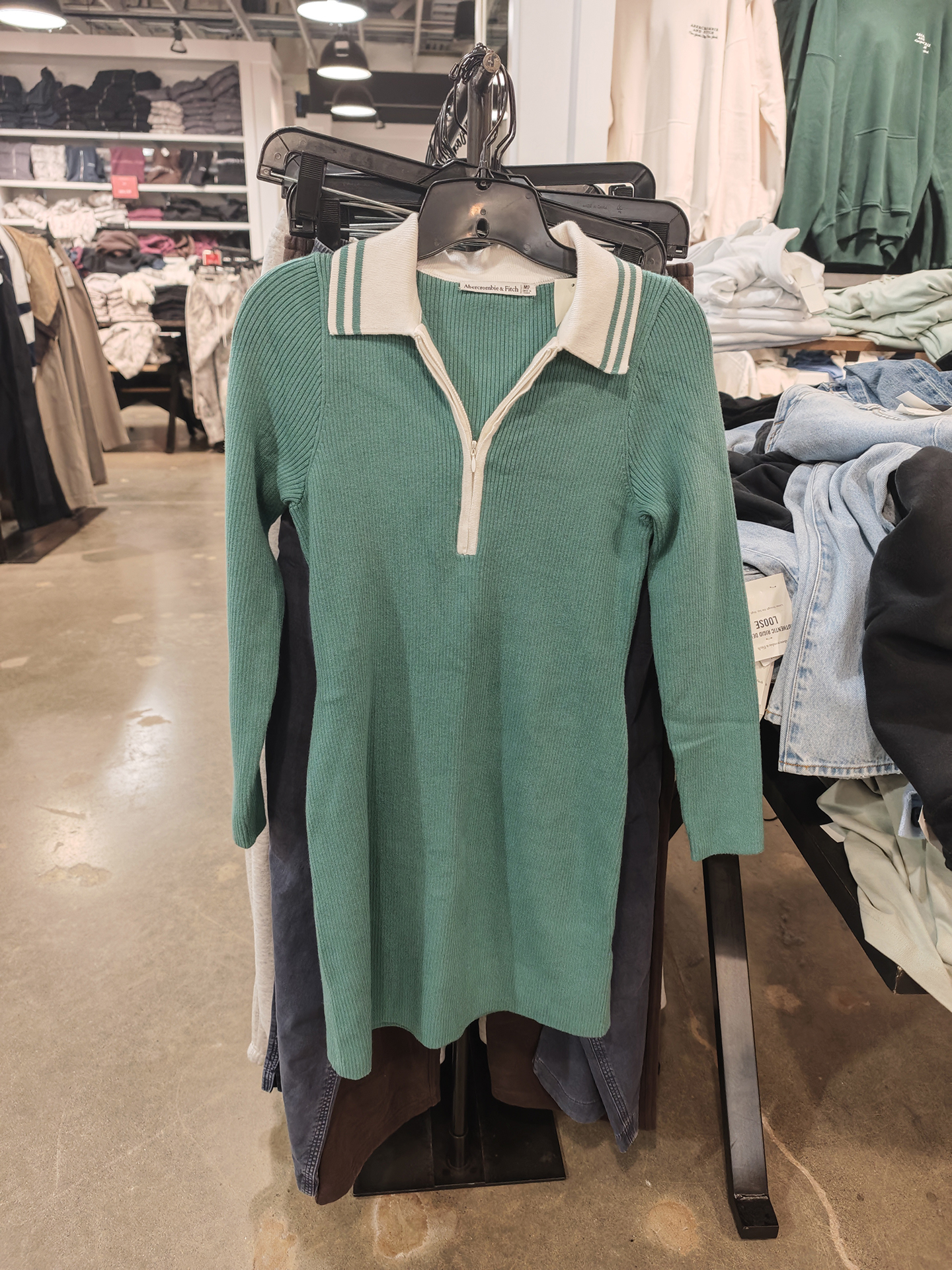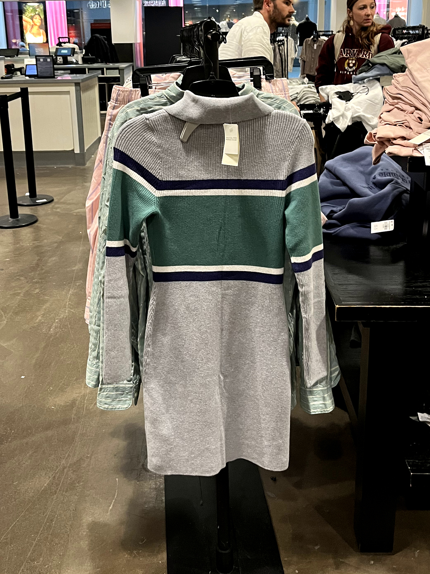 Abercrombie Fitch/AF 女春秋条纹半拉链翻领休闲长袖针织连衣裙