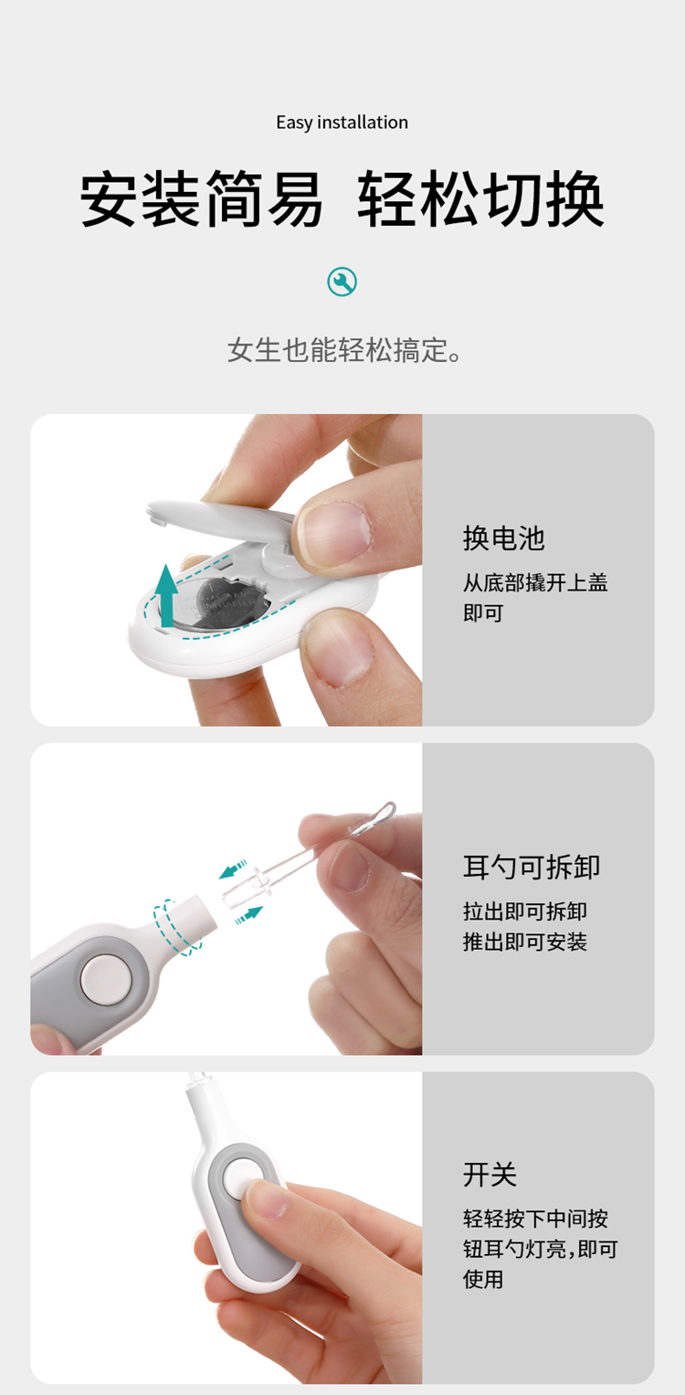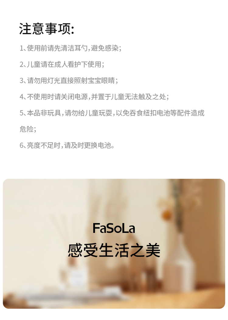 FaSoLa 发光挖耳勺 婴儿儿童软头掏耳朵神器硅胶带灯可视安全套装