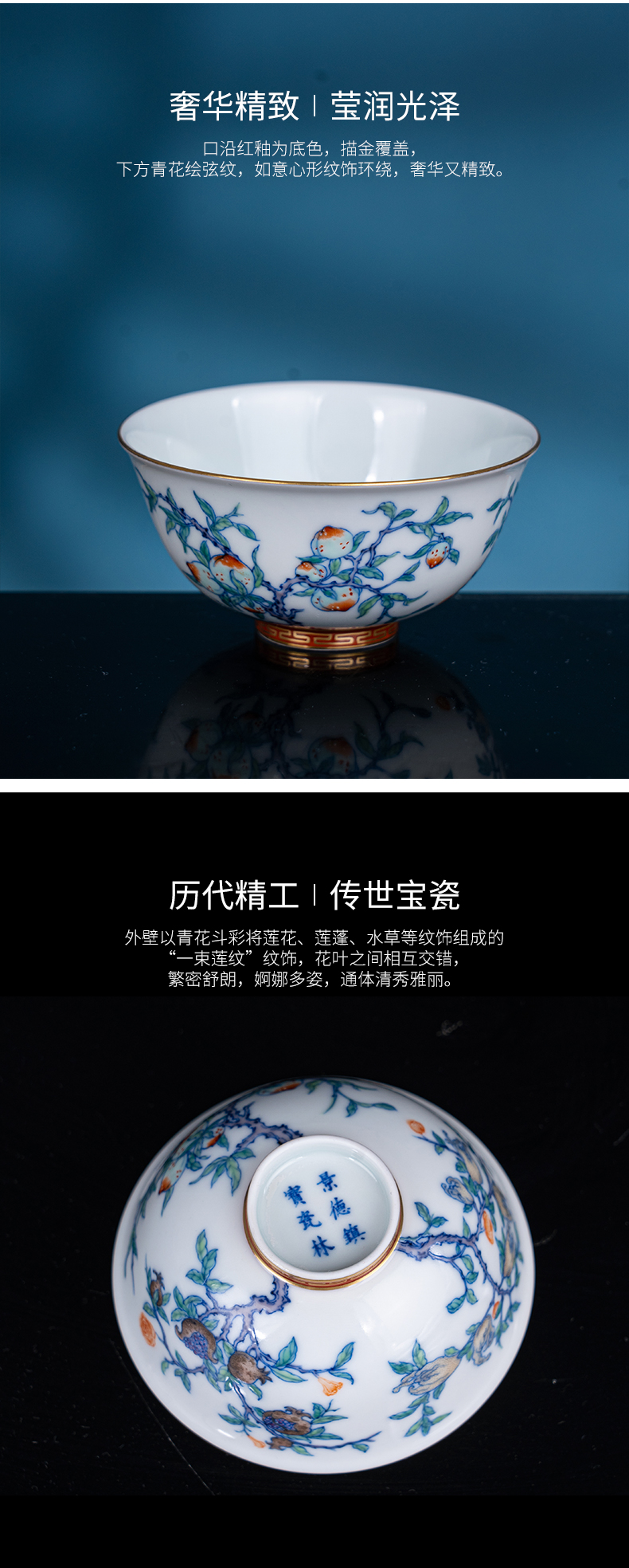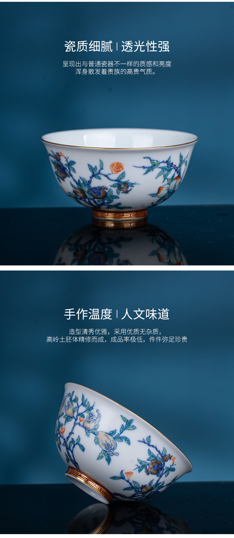 青花斗彩描金折枝瑞果杯 商品图4