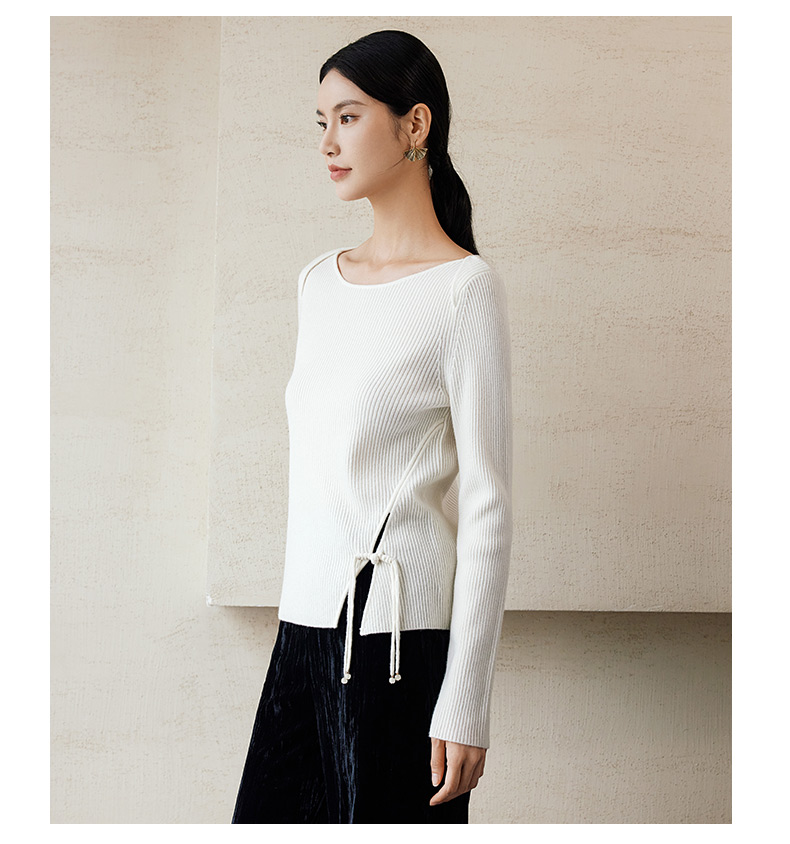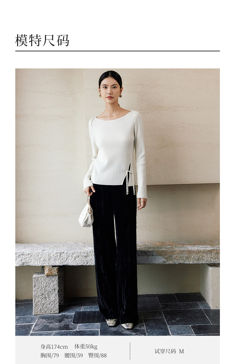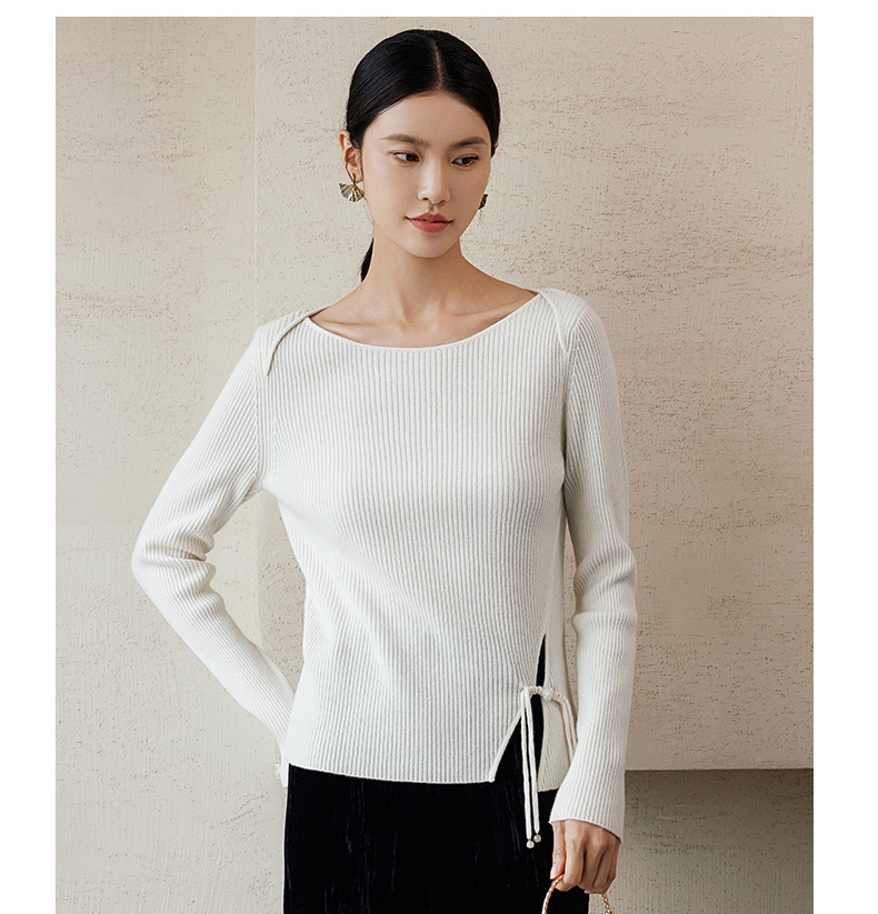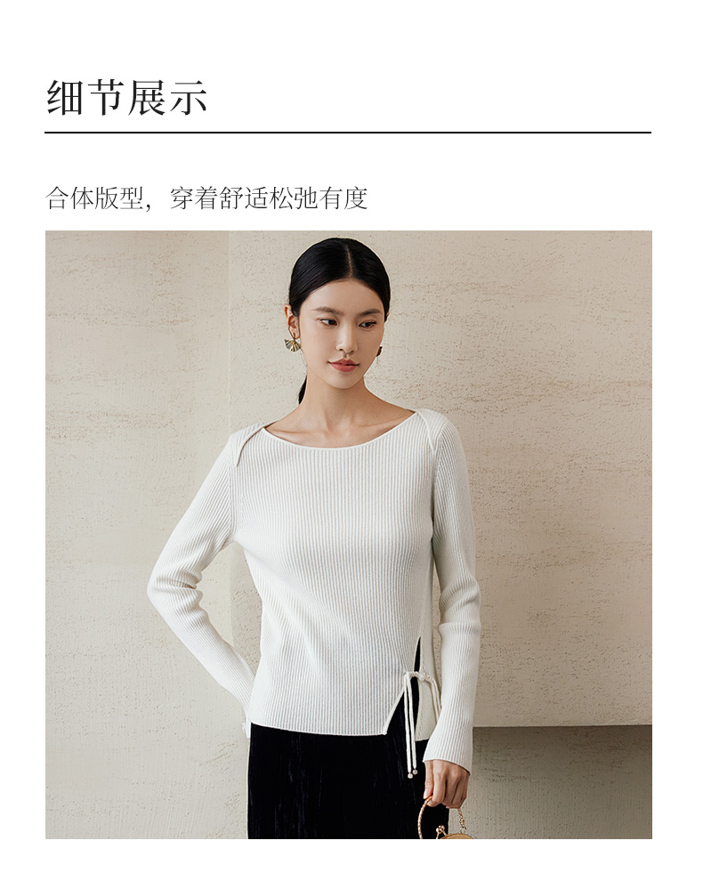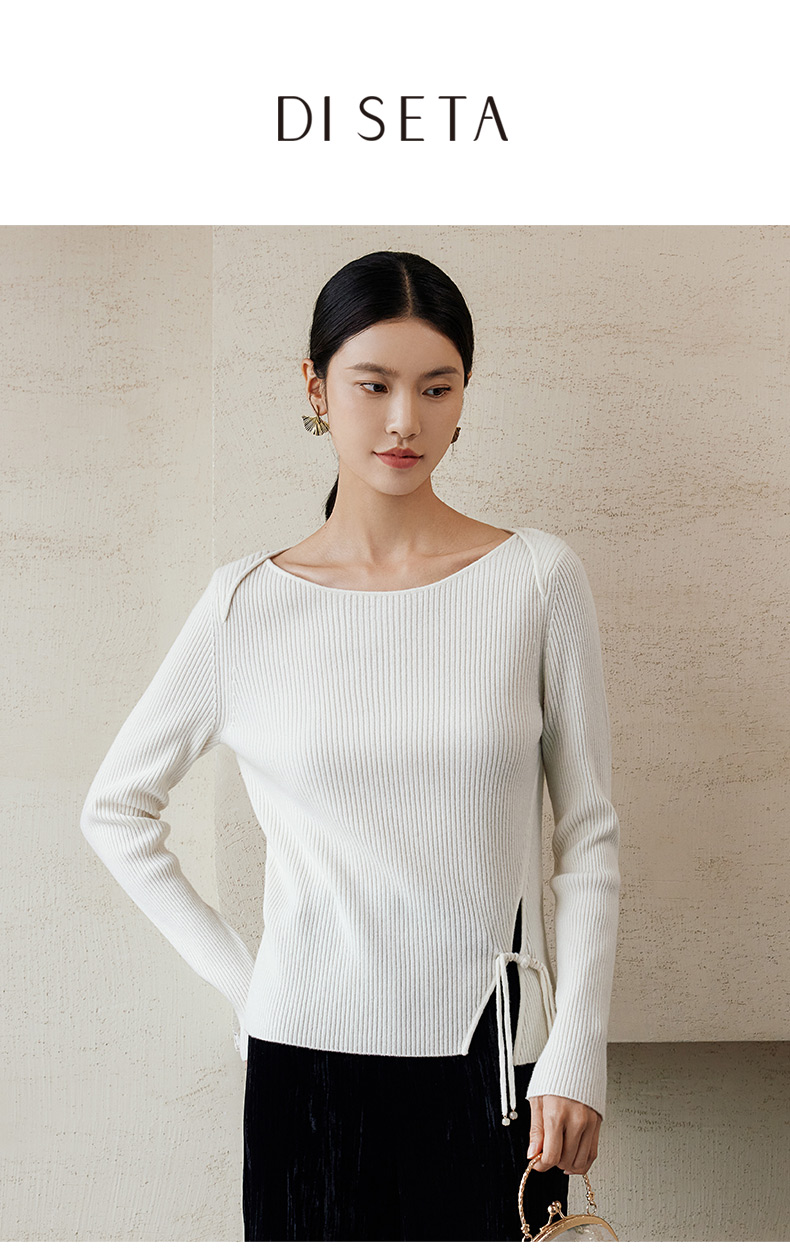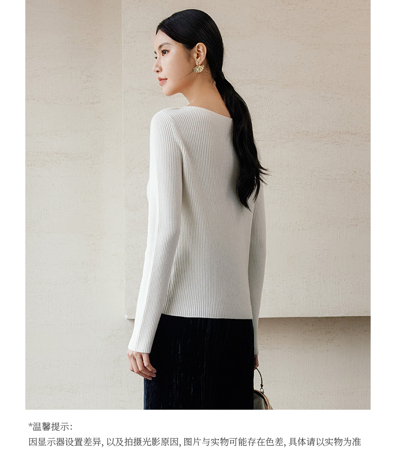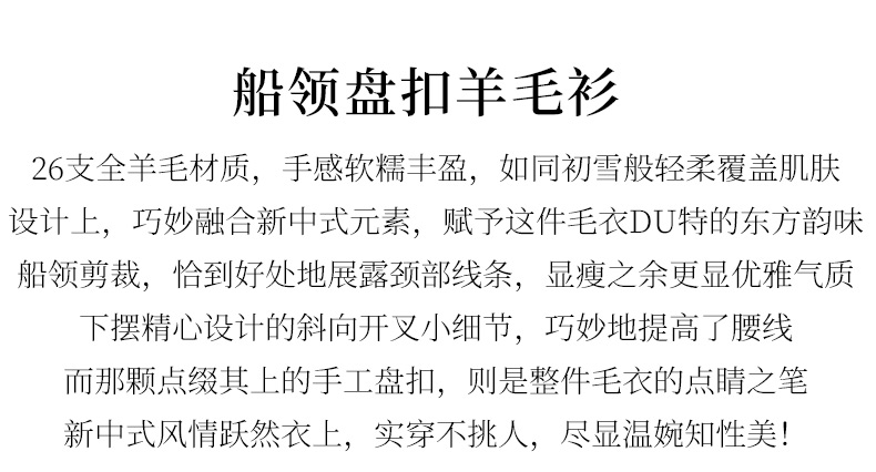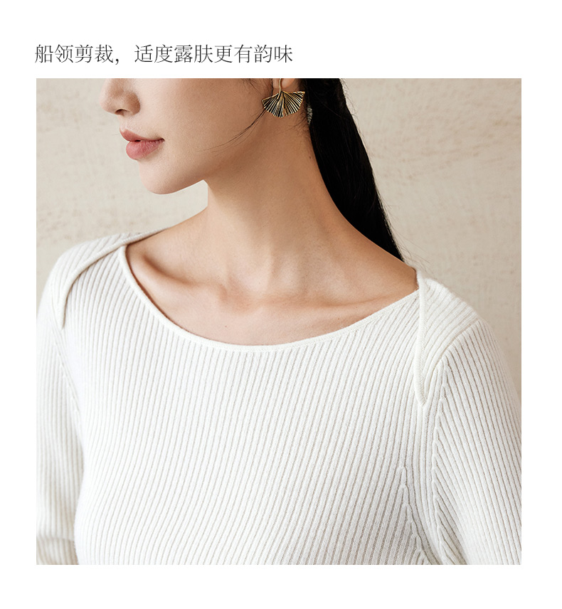 玳莎100羊毛套头针织衫女2024年秋冬款船领修身显瘦羊毛衫上衣 ED33303