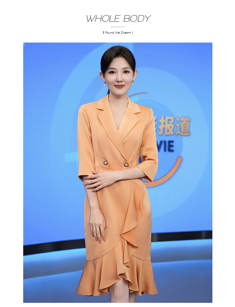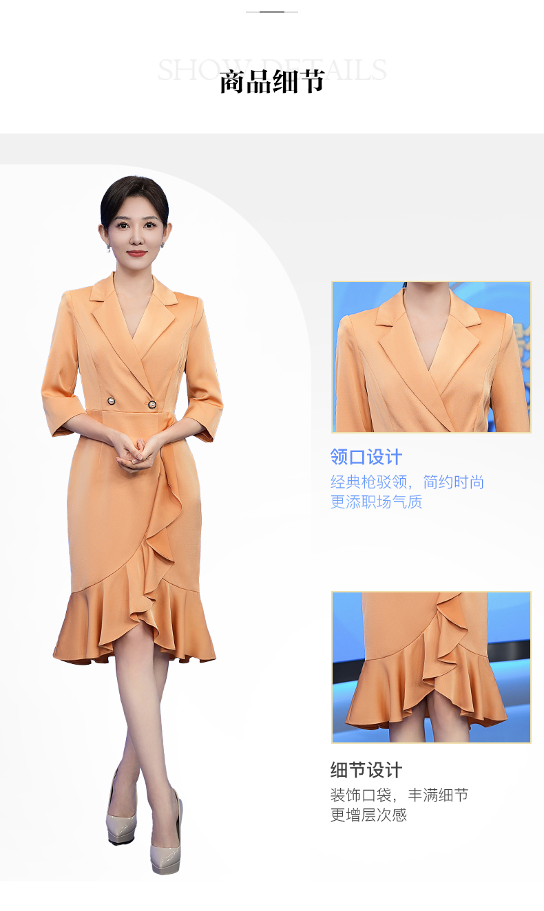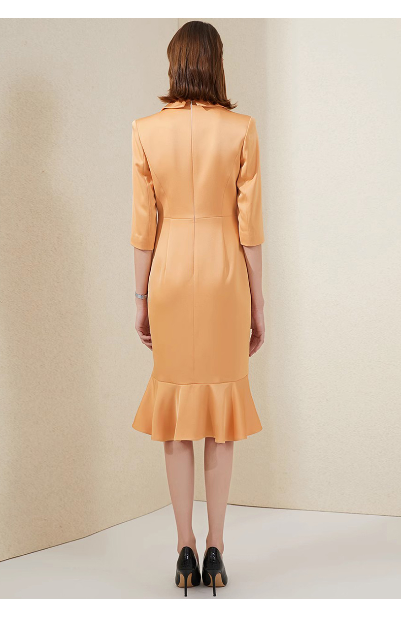夏季高端时尚修身橘色连衣裙女七分袖包臀裙气质鱼尾裙宴会礼服裙