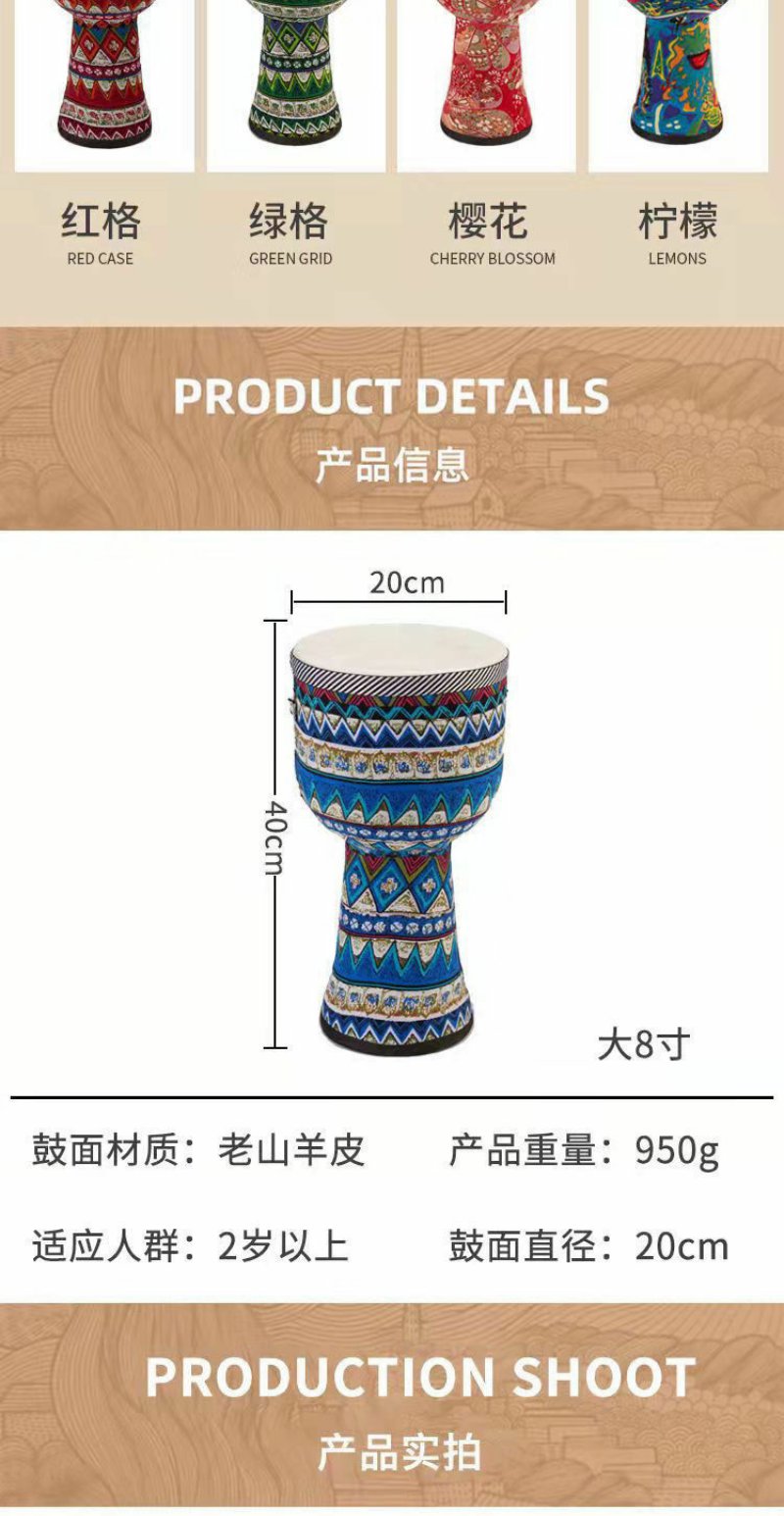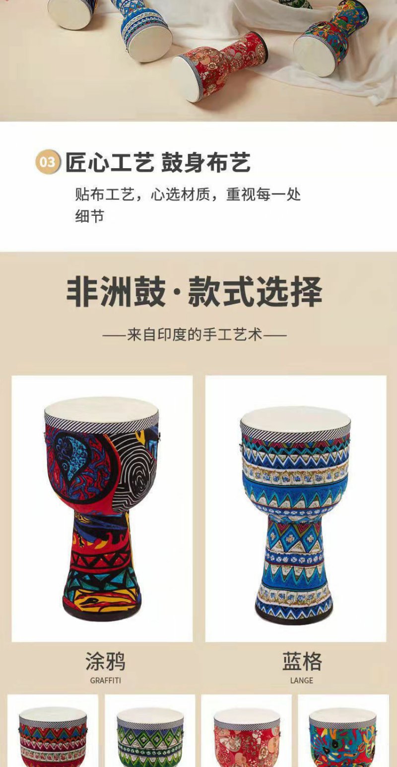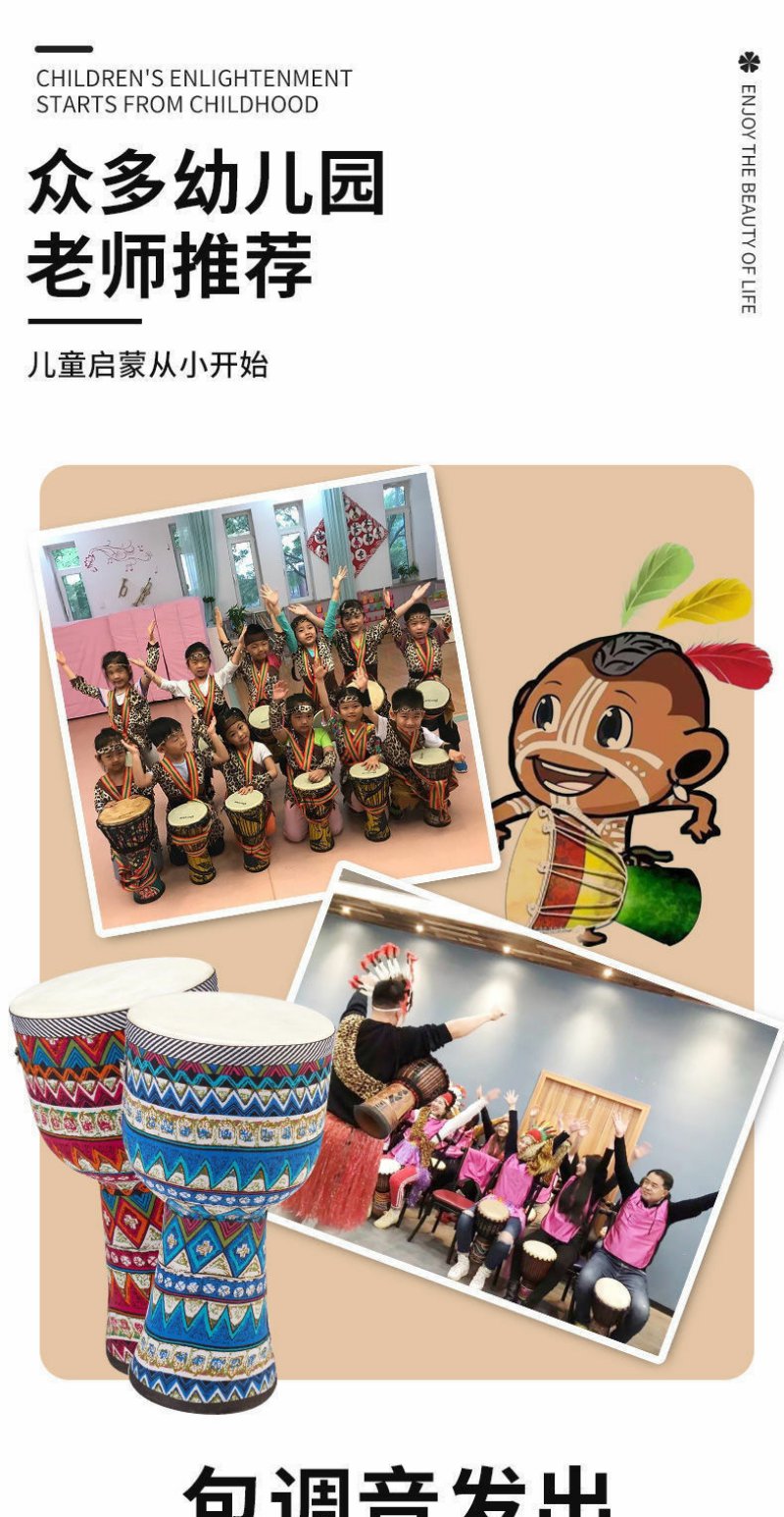 非洲鼓儿童标8寸手鼓便携幼儿园成人初学者入门