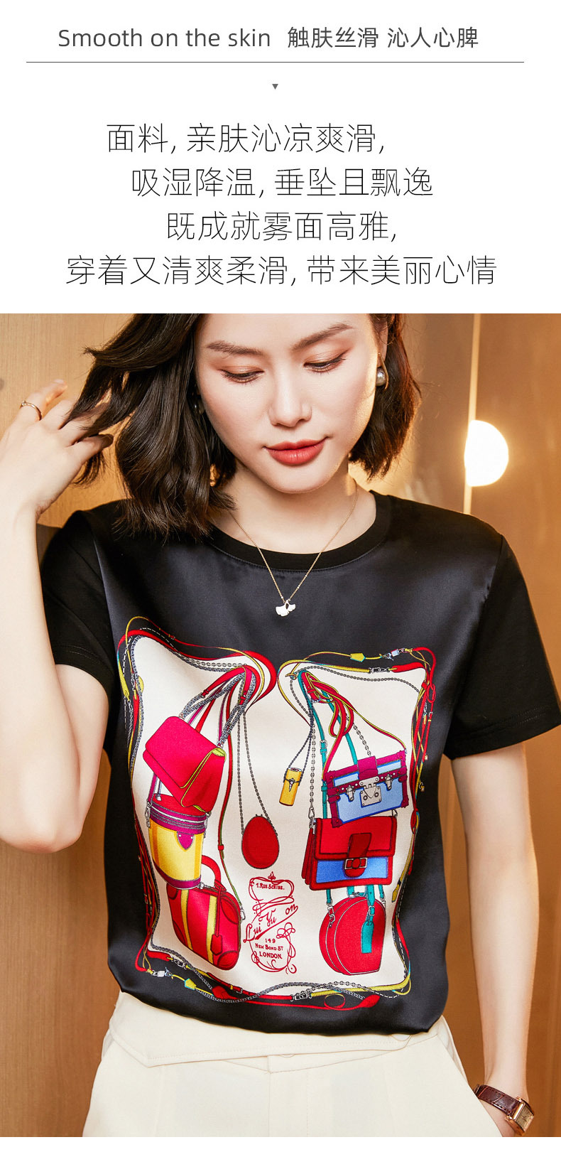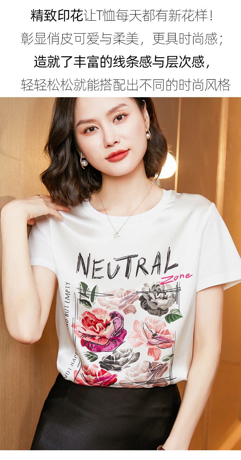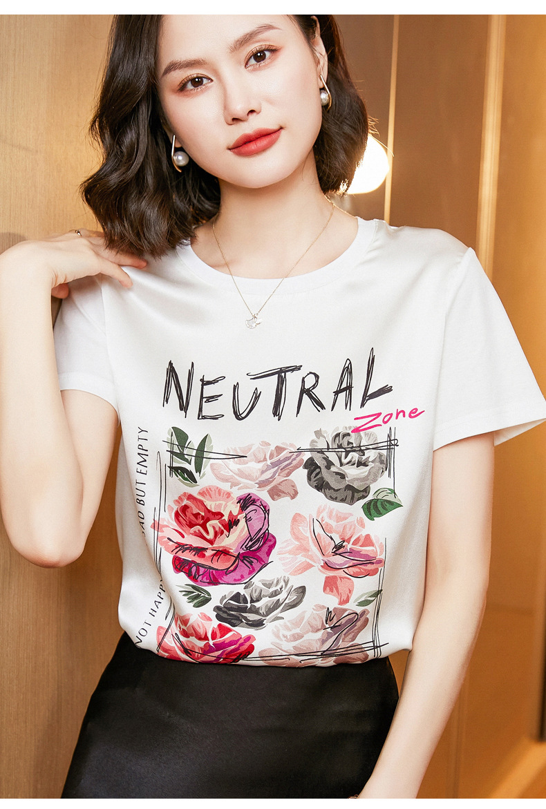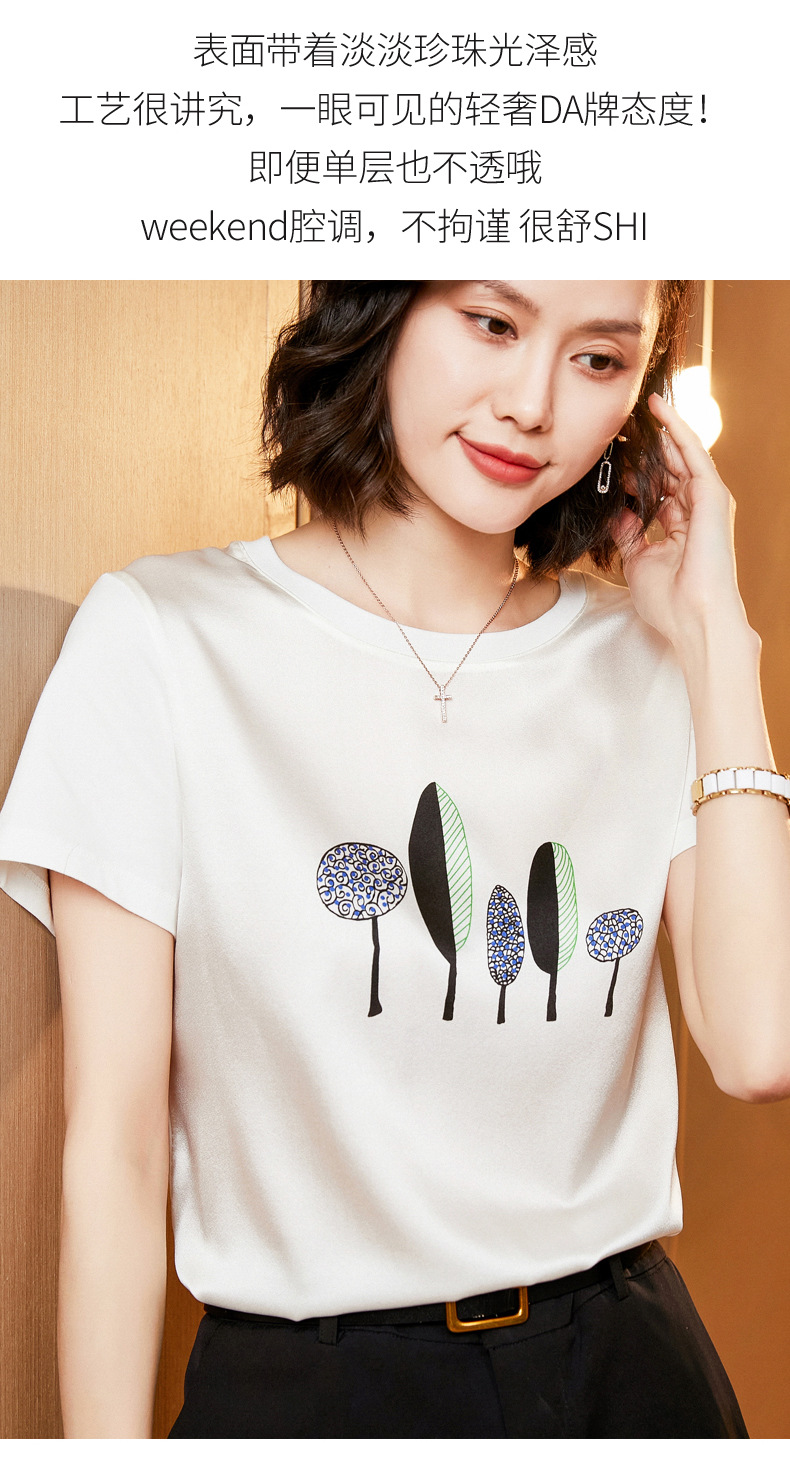 【缎面印花T恤】缎面+丝光棉拼接 柔软亲肤 透气清爽 时髦减龄 宽松不挑身材