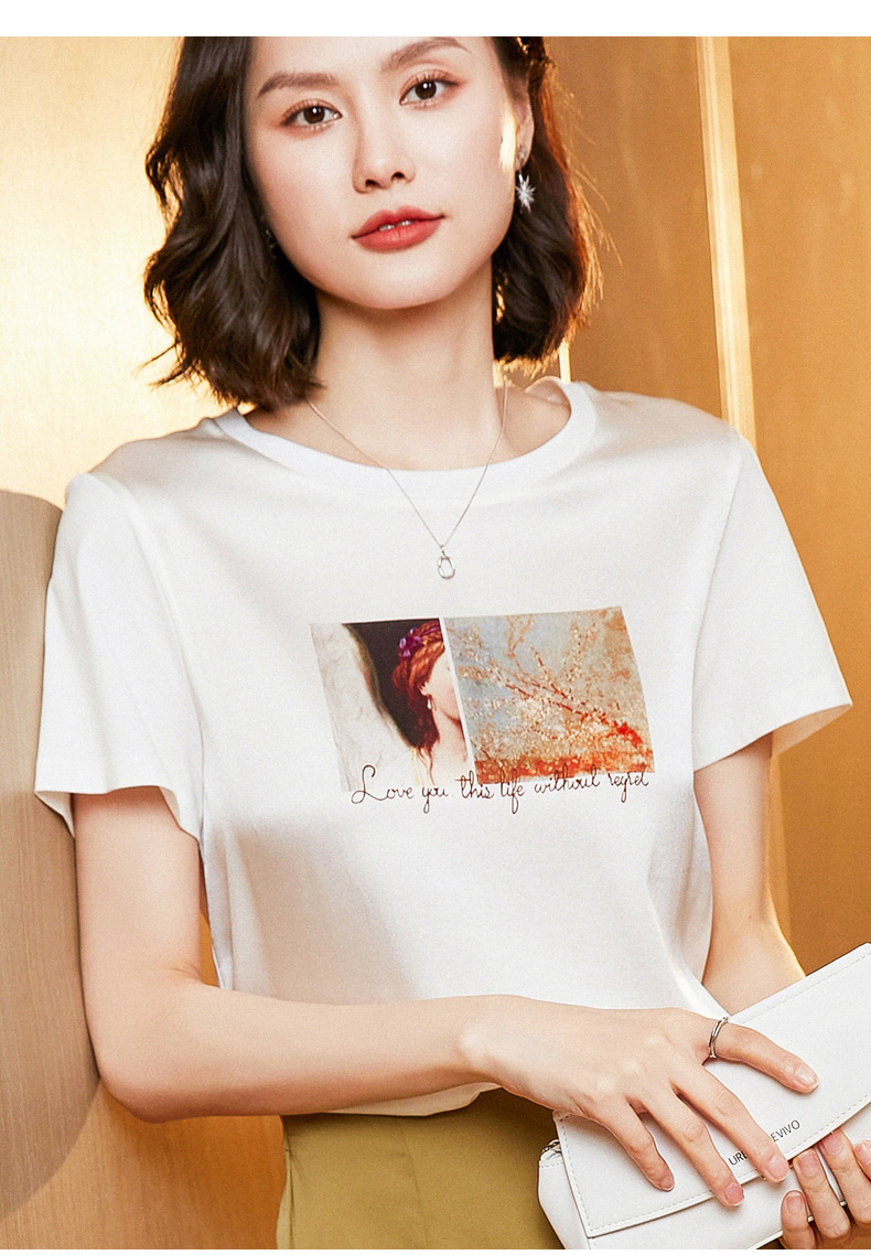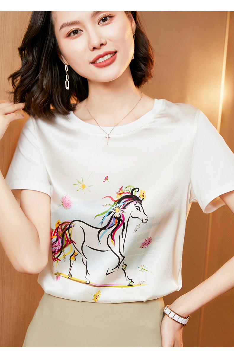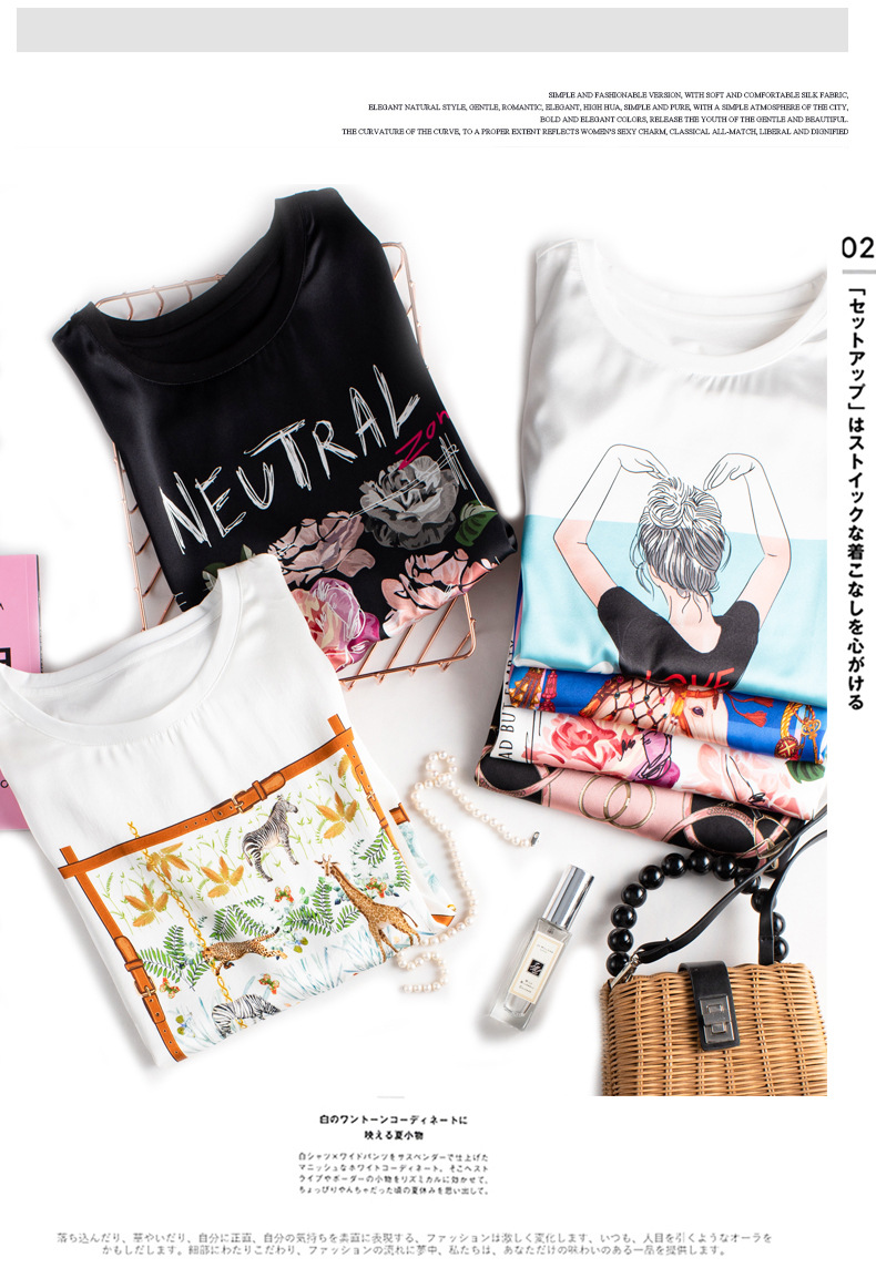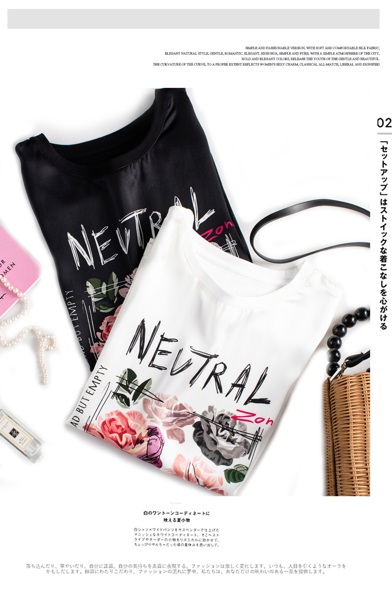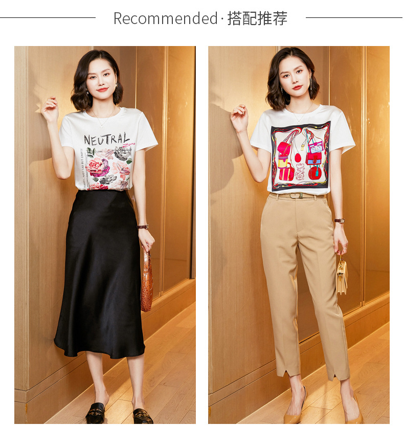 【缎面印花T恤】缎面+丝光棉拼接 柔软亲肤 透气清爽 时髦减龄 宽松不挑身材
