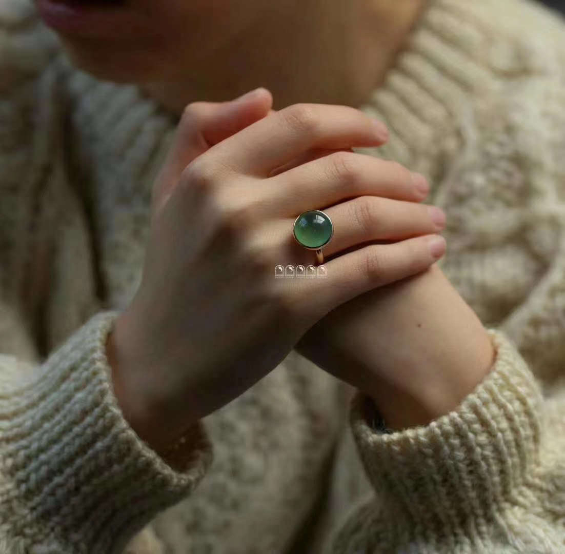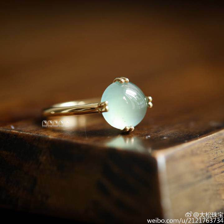冰种翡翠路路通转运珠戒指18k白金镶嵌