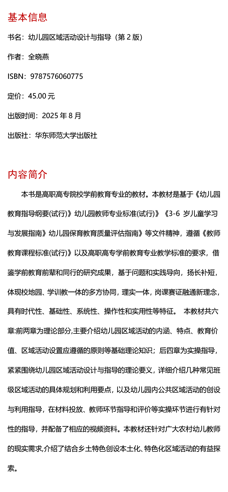 幼儿园区域活动设计与指导 第二版 微课版 学前教育专业系列教材 全晓燕
