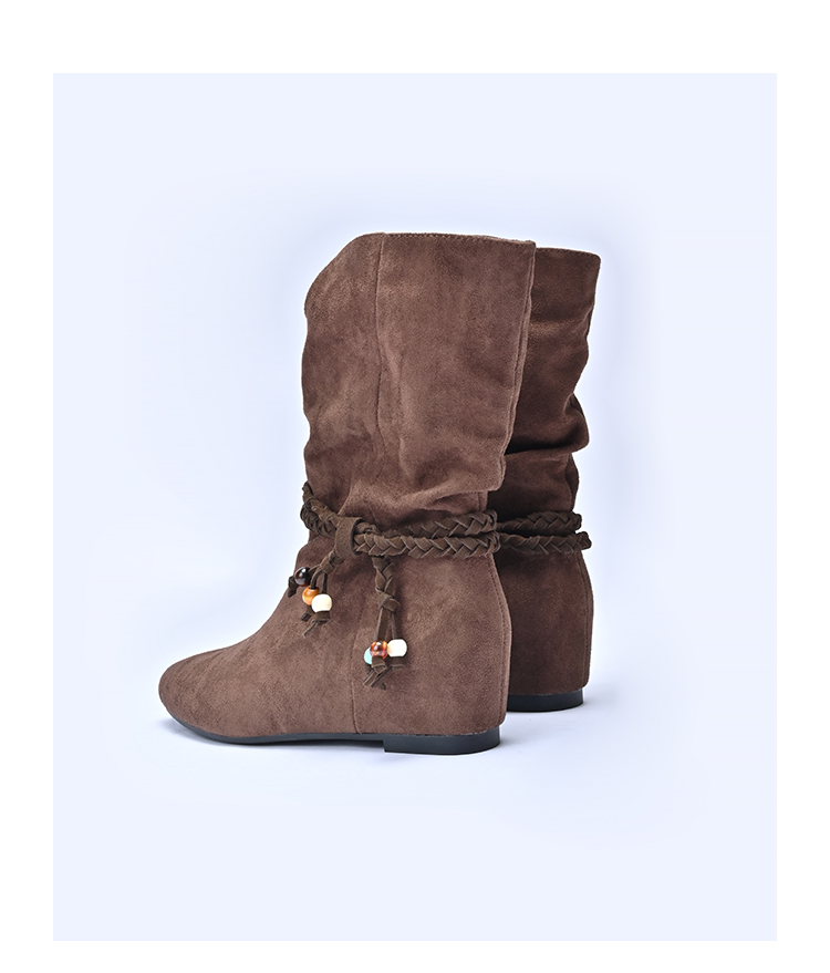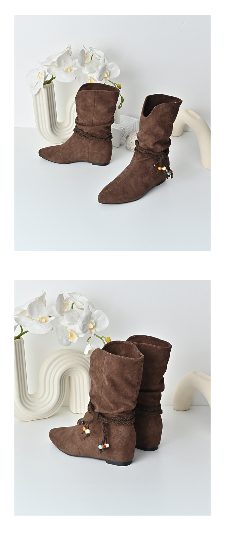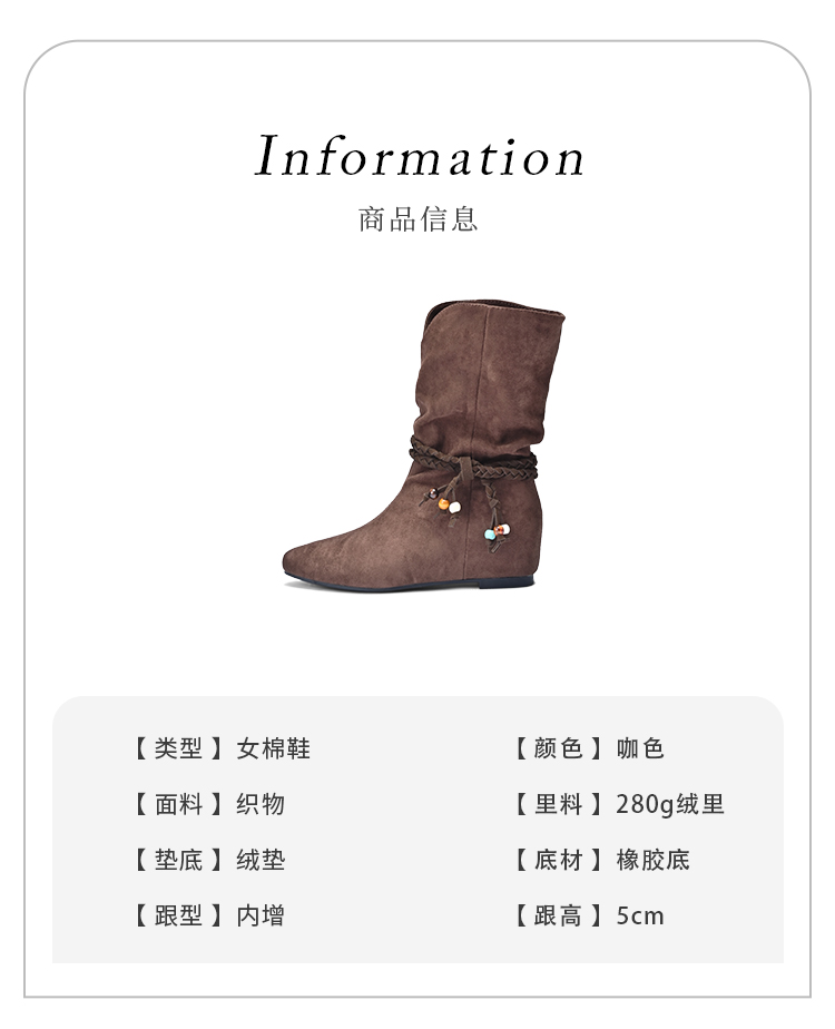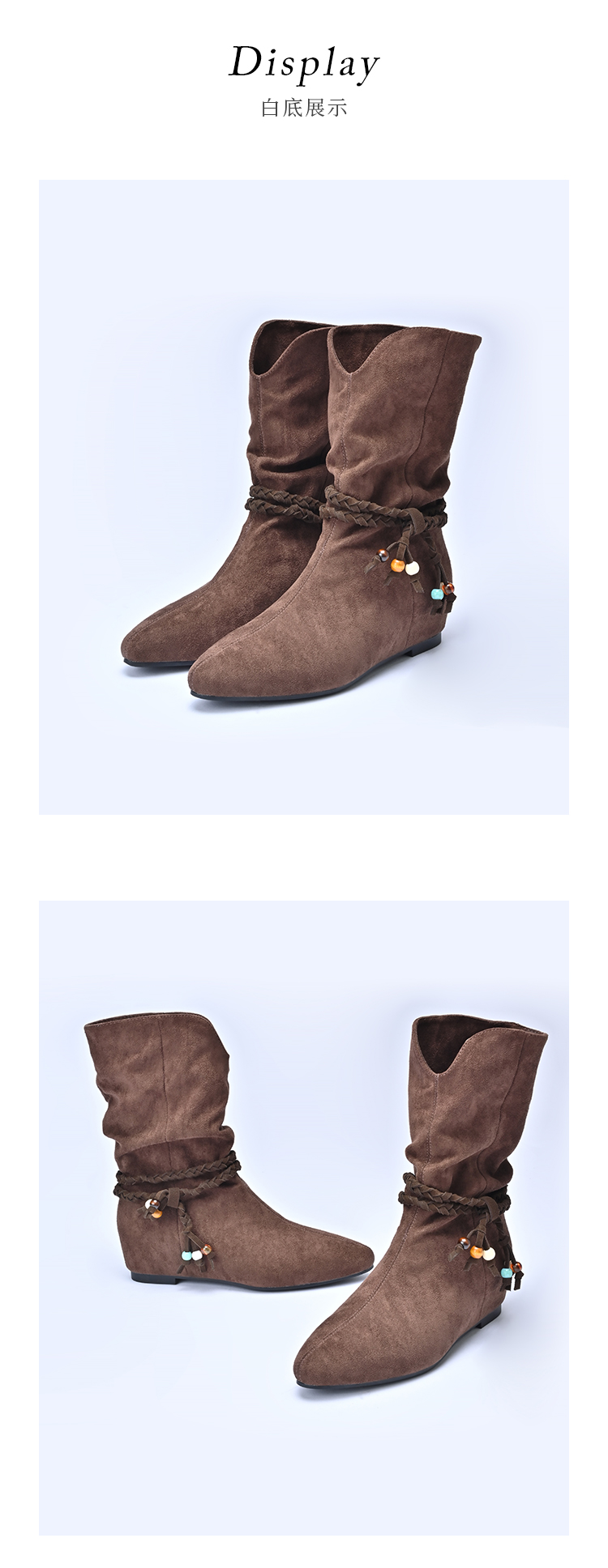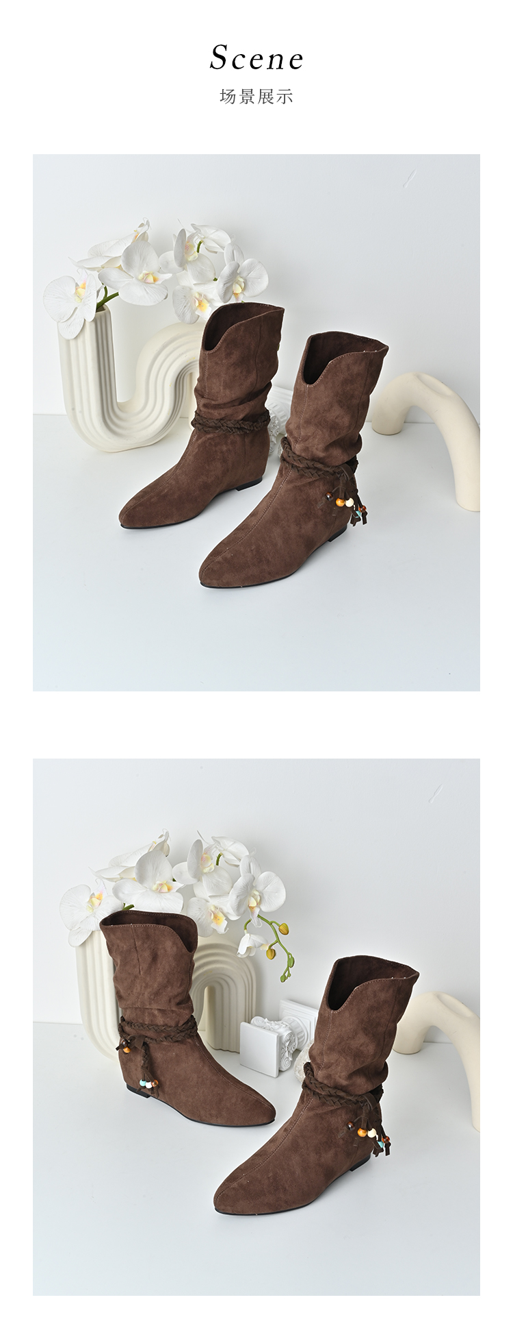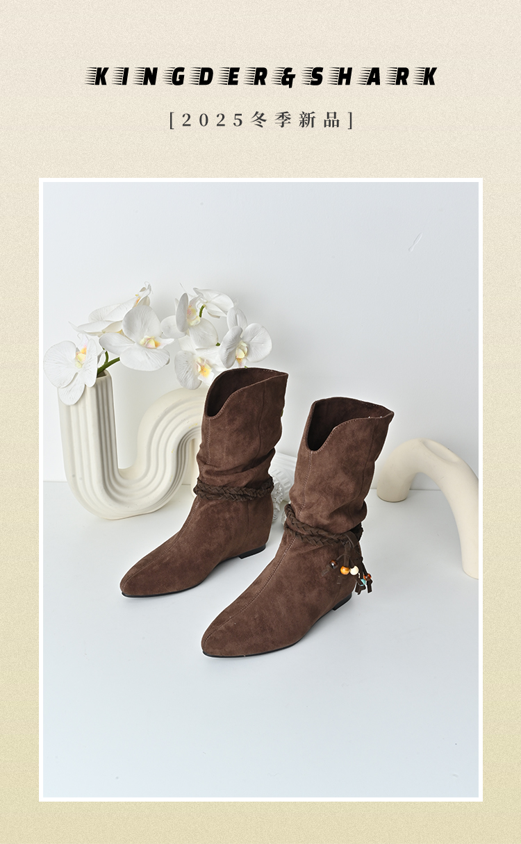 经典鲨2025冬专柜新品气质尖头内增高加绒复古气质中筒靴女KW119-558181