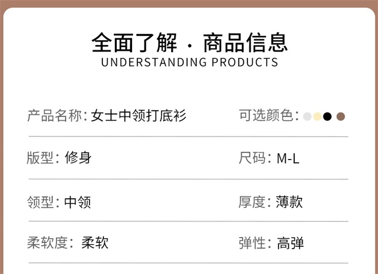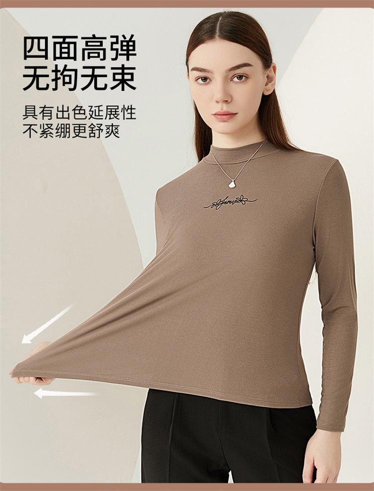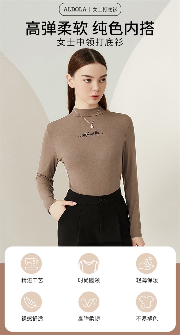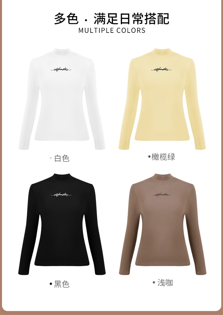 雅黛丽打底衫女内搭中领春秋薄款可外穿上衣修身显瘦高弹柔软长袖