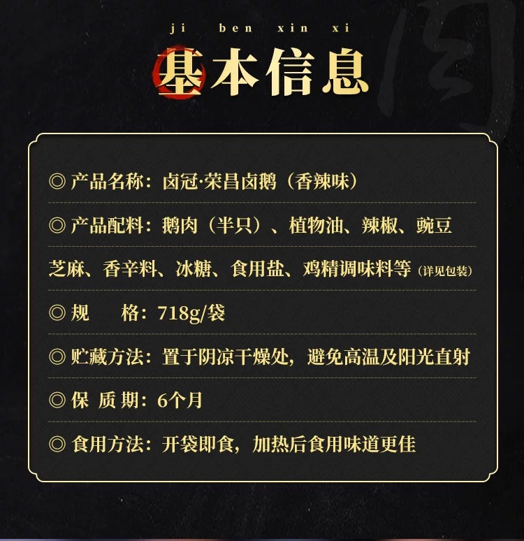 重庆特产荣昌卤鹅718g熟食肉类卤鹅肉非遗美食卤味即食送礼下酒菜