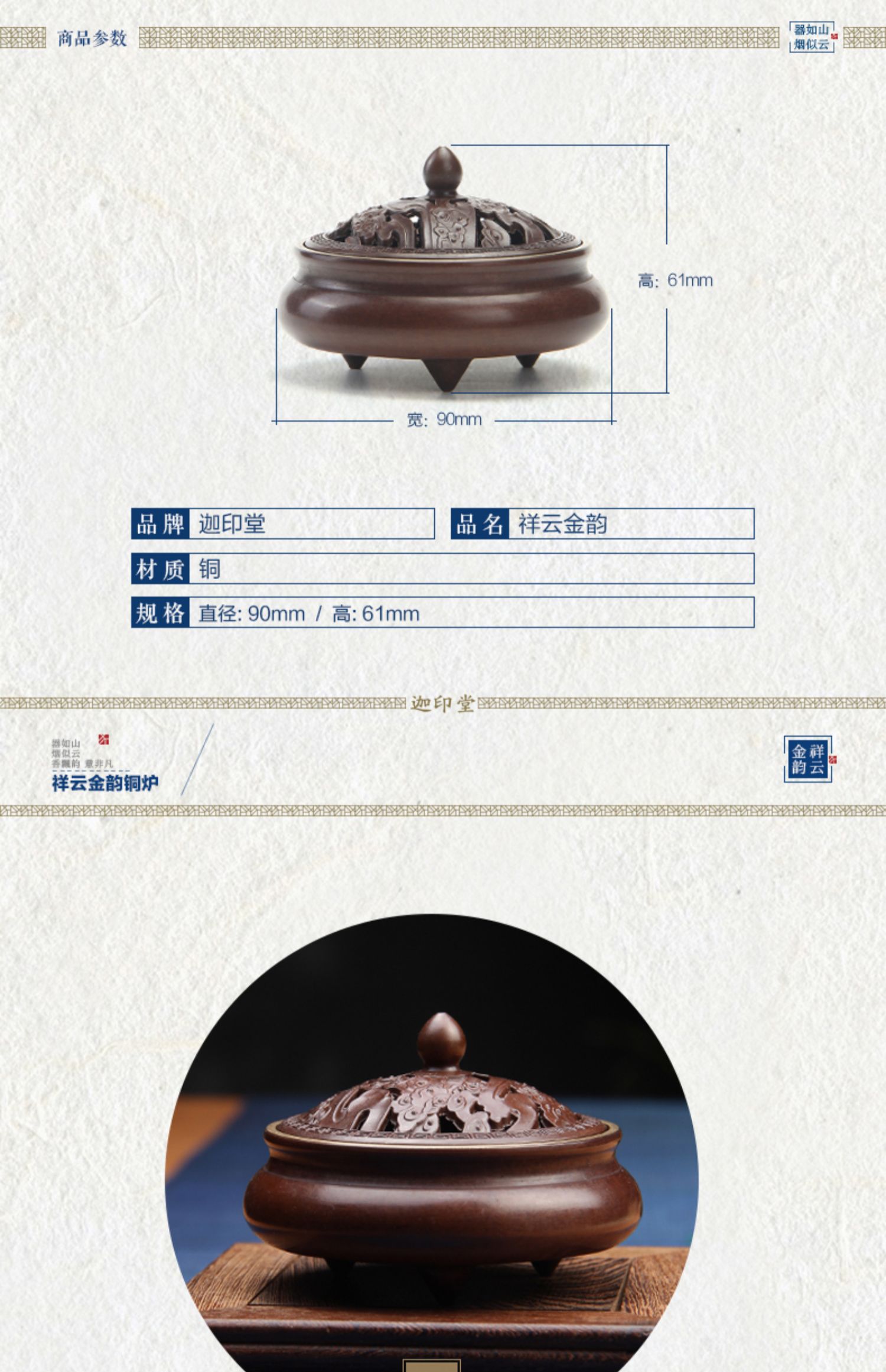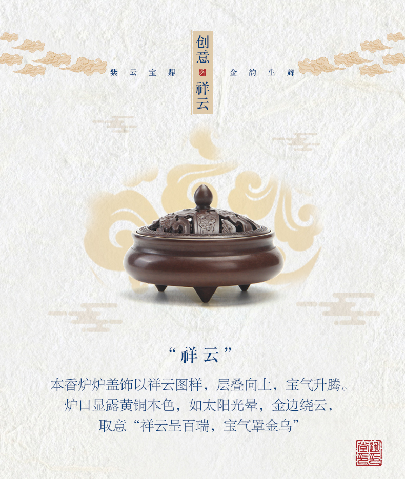 迦印堂丨祥云金韵香炉 精制铜器